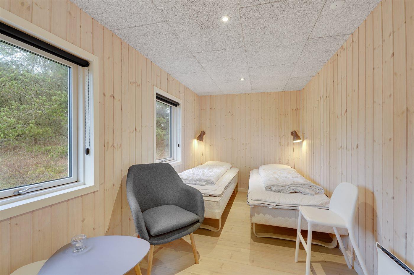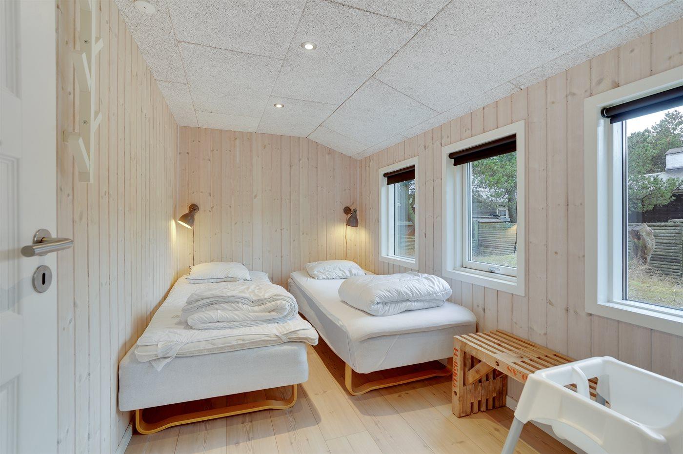 Der er i alt 4 soveværelser. Sovepladserne fordeler sig på: 4 sovepladser i dobbeltsenge. 4 sovepladser i enkeltsenge. 2 af disse sovepladser befinder sig i et anneks. Derudover er der 1 stk. barneseng.