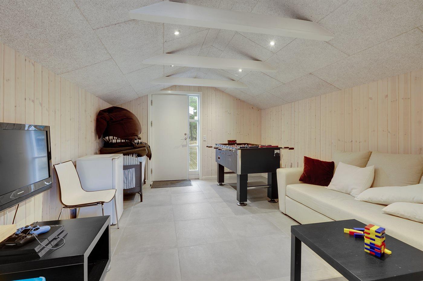 Dette dejlige og nyrenoverede sommerhus ligger på en stor grund i det dejlige ferieområde Blåvand. Til huset hører et 30 m2 stort anneks, som er indrettet med et dejligt opholdsrum med fjernsyn og bordfodbold samt et soveværelse med dobbeltseng.