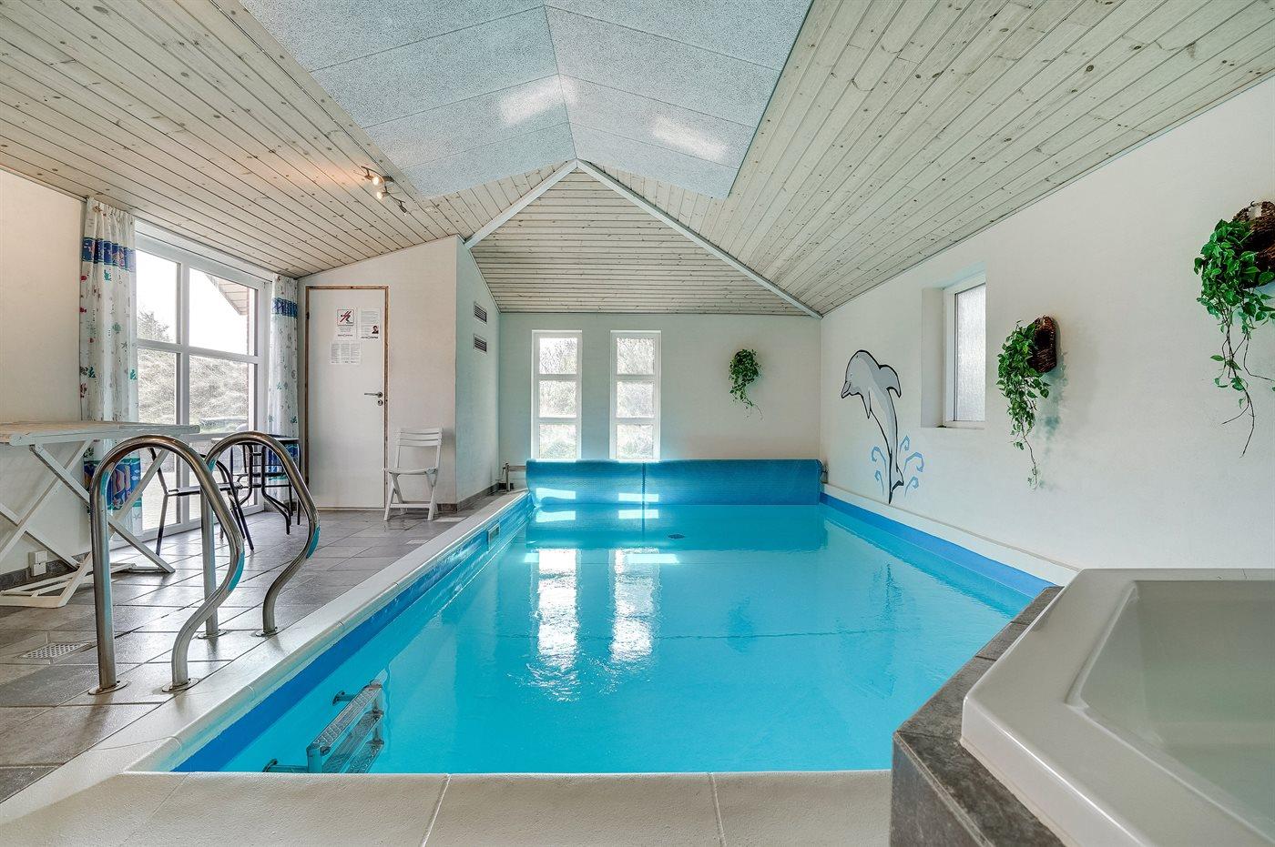 I den indendørs swimmingpool er der mulighed for leg og hyggeligt samvær. Swimmingpoolen måler op til 3 m i bredden, 6 m i længden og den er op til 1,2 m dyb. Vandet er mellem 24 og 28° C varmt. Swimmingpoolen har modstrømsanlæg. Der er gulvvarme i swimmingpoolområdet.