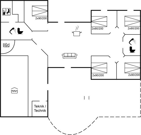 Der er i alt 5 soveværelser. Sovepladserne fordeler sig på: 10 sovepladser i dobbeltsenge. Derudover er der 1 stk. barneseng.