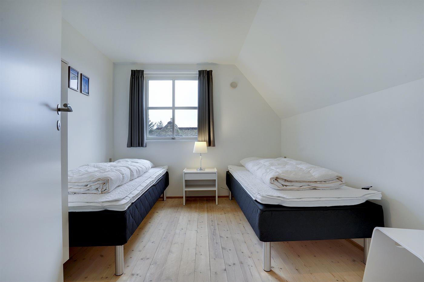 Der er i alt 4 soveværelser. Sovepladserne fordeler sig på: 4 sovepladser i dobbeltsenge. 4 sovepladser i enkeltsenge. 2 sovemuligheder (madrasser) på hems. Der findes 2 skønne badeværelser, begge med gulvvarme, bruseniche og toilet. Fra det ene er der adgang til saunaen, hvor der er mulighed for afslapning. Husets aktivitetsrum, der indeholder pool bord og bordfodbold, har udsigt til Blåvand Fyr. Bryggers med indgang, vaskemaskine og tørretumbler. I et nærliggende rum er der fryser med en kapacitet på 80 liter.