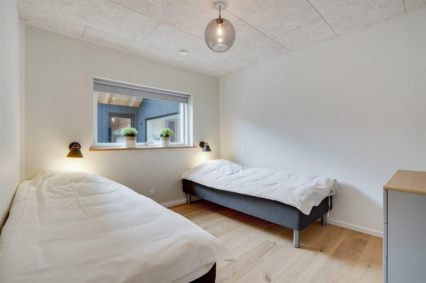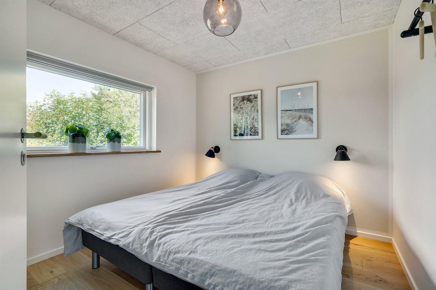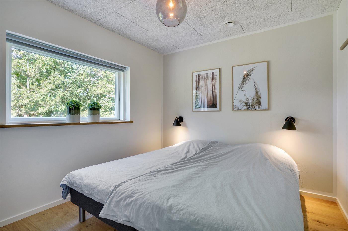 Der er i alt 6 soveværelser. Sovepladserne fordeler sig på: 10 sovepladser i dobbeltsenge. 2 sovepladser i enkeltsenge. 2 sovepladser på madrasser. 2 af disse sovepladser befinder sig på husets hems. Derudover er der 1 stk. barneseng.