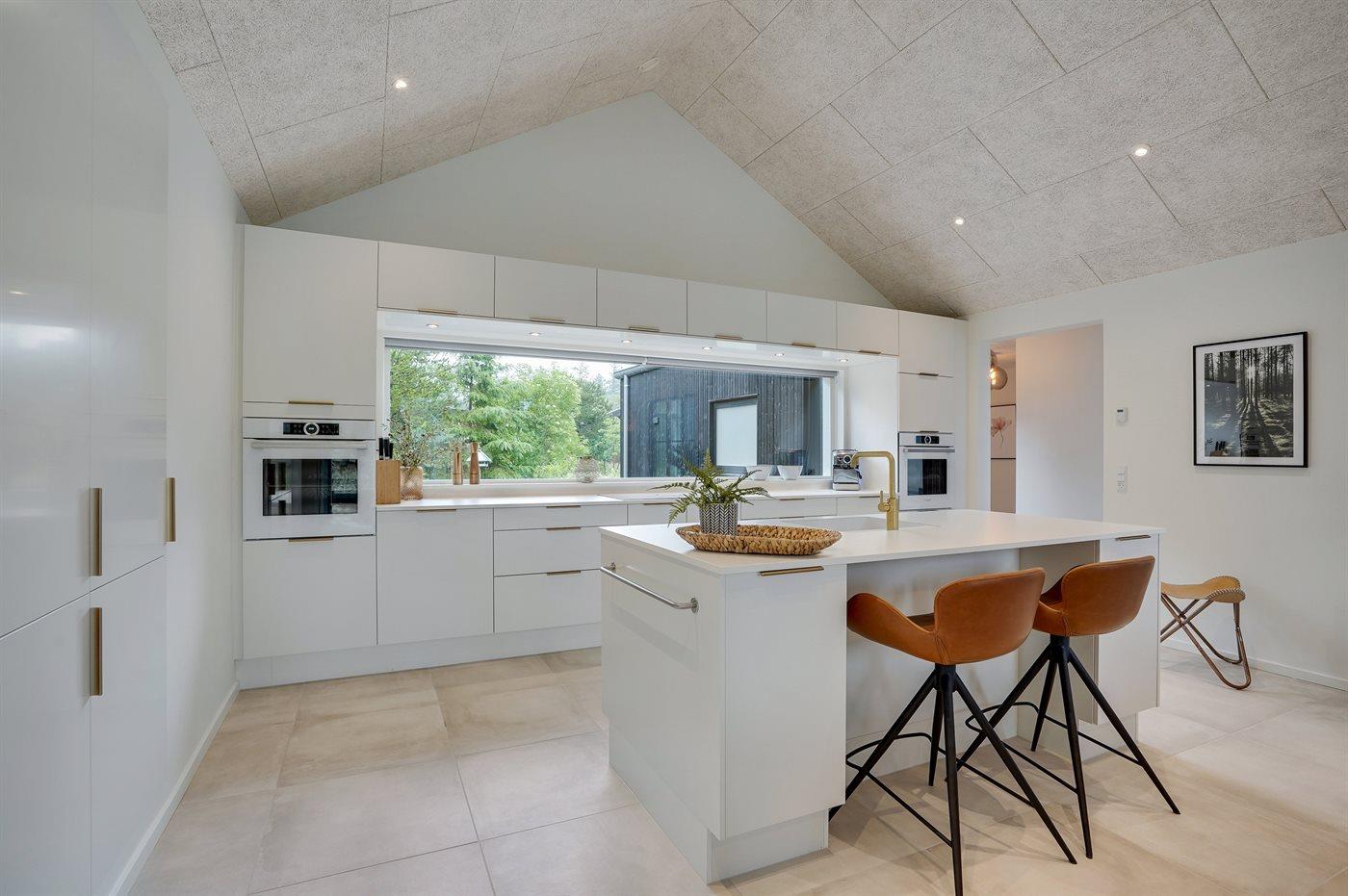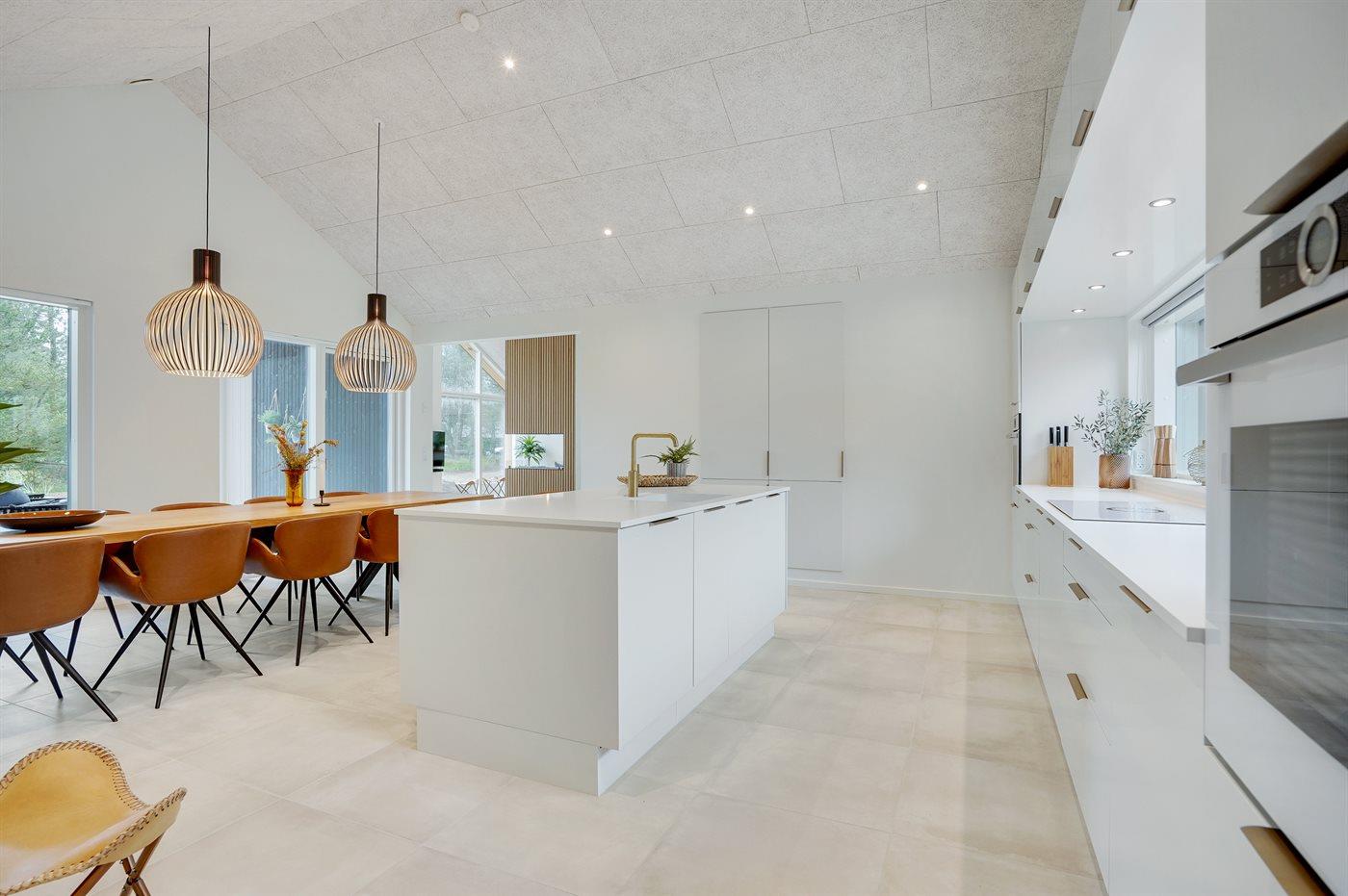 Køkkenet er udstyret med 2 køleskabe. Der er 4 induktionskogeplader, 2 varmluftovne, mikrobølgeovn samt 2 opvaskemaskiner.