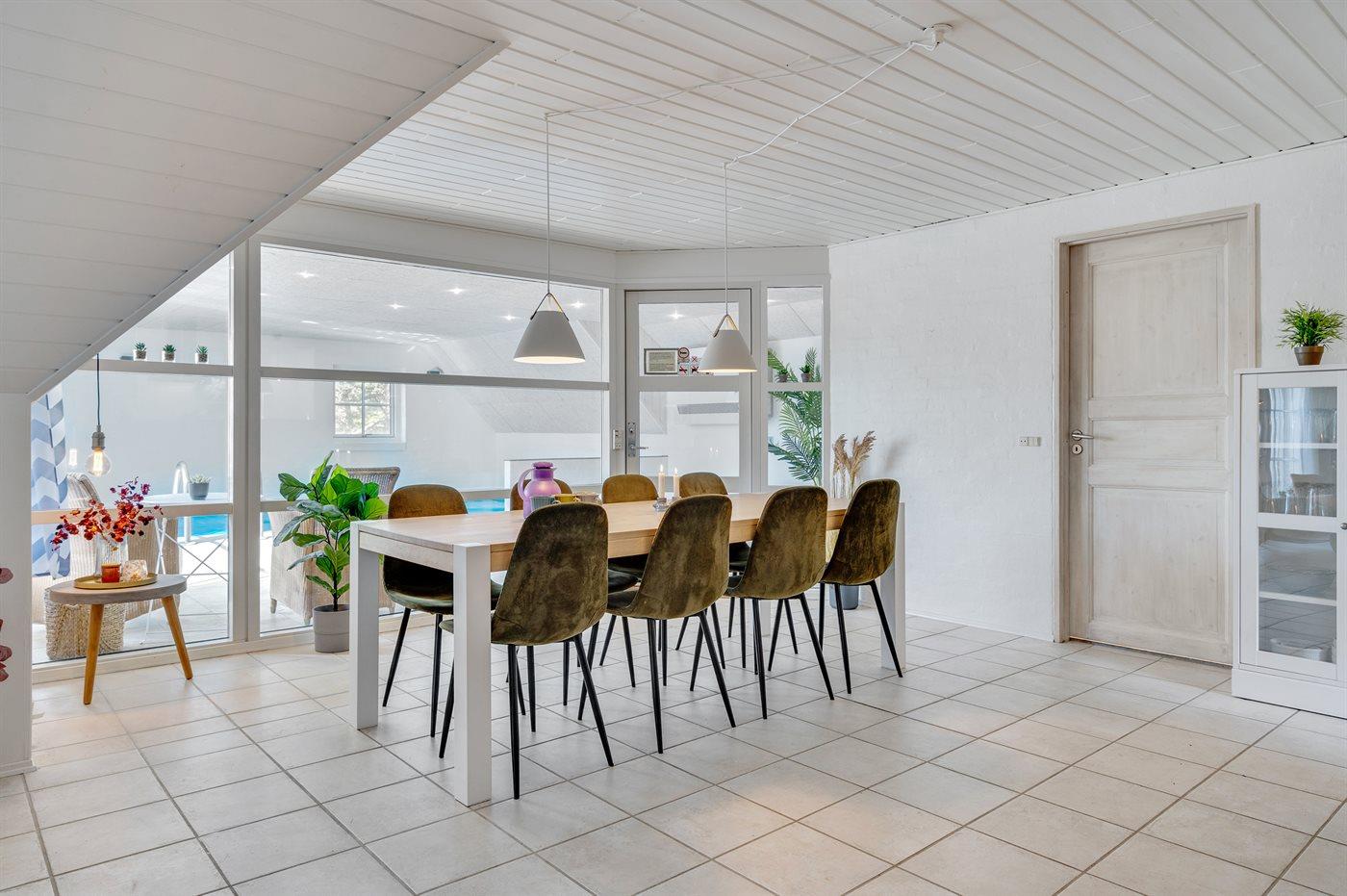 Et skønt og velholdt sommerhus med swimmingpool og spa. Sommerhuset er beliggende i et roligt område på en stor naturgrund. Bemærk: Udover de 4 soveværelser findes der 2 sovepladser på madrasser på husets hems.