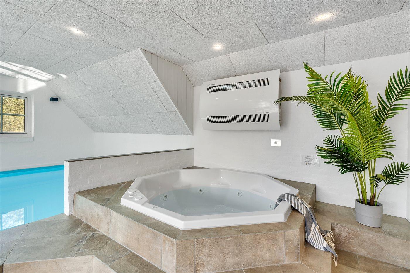 I den indendørs standvandsspa er der plads til 6 personer.