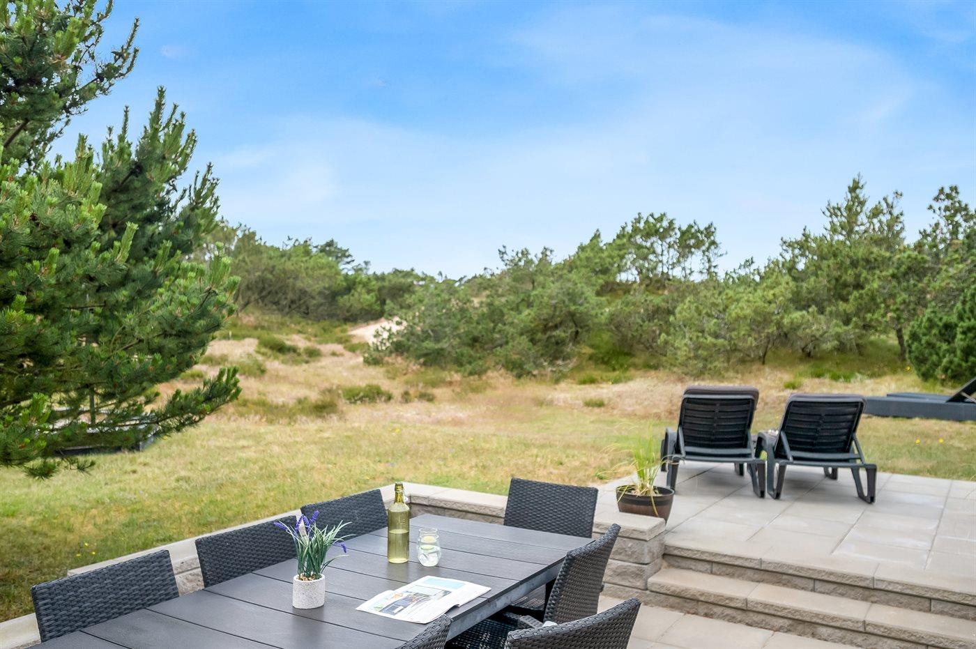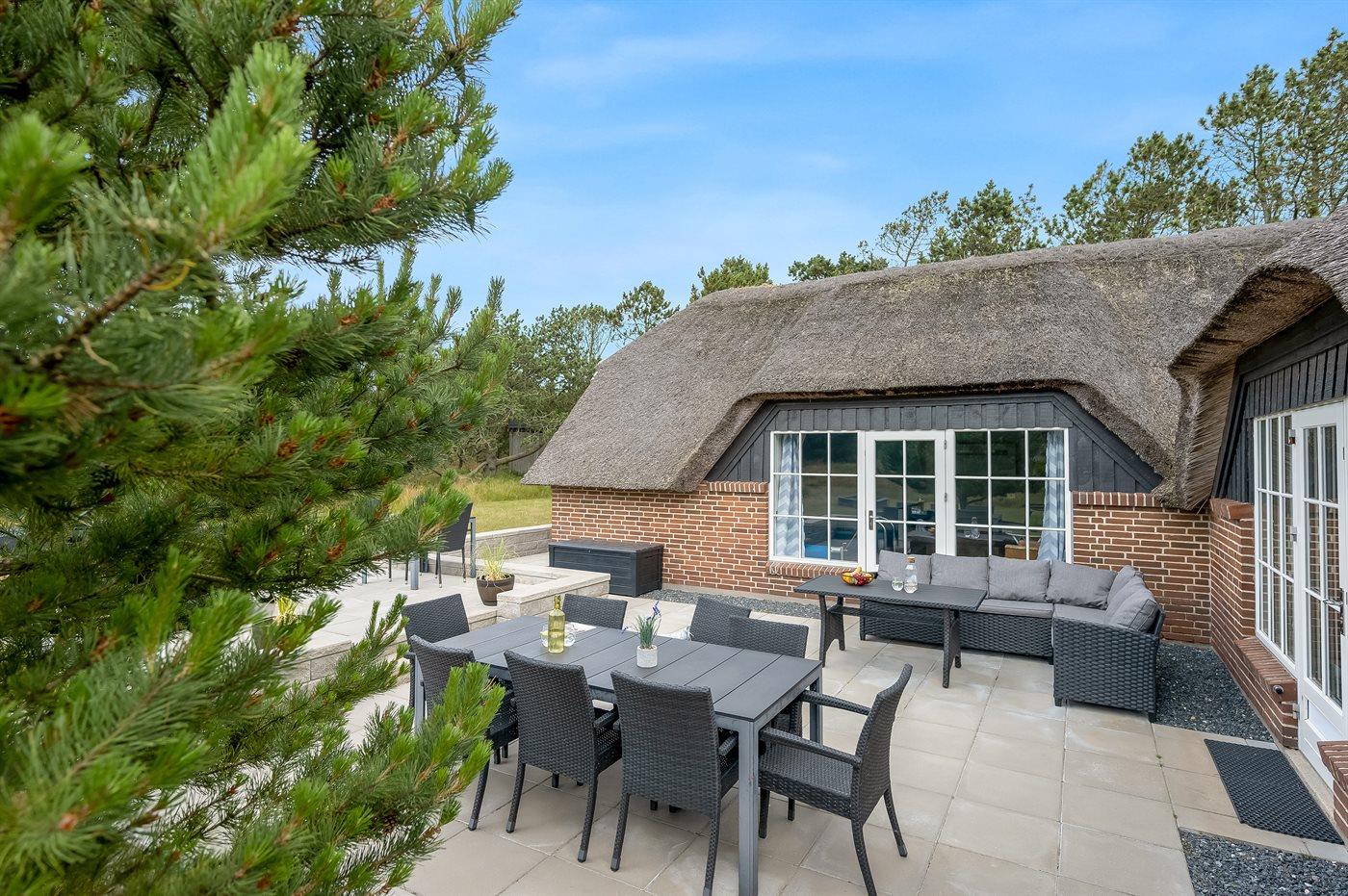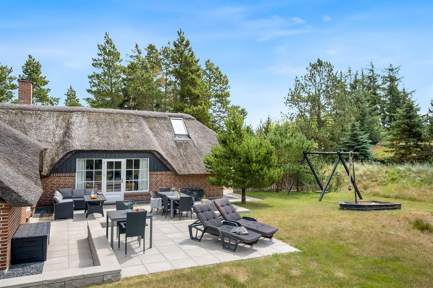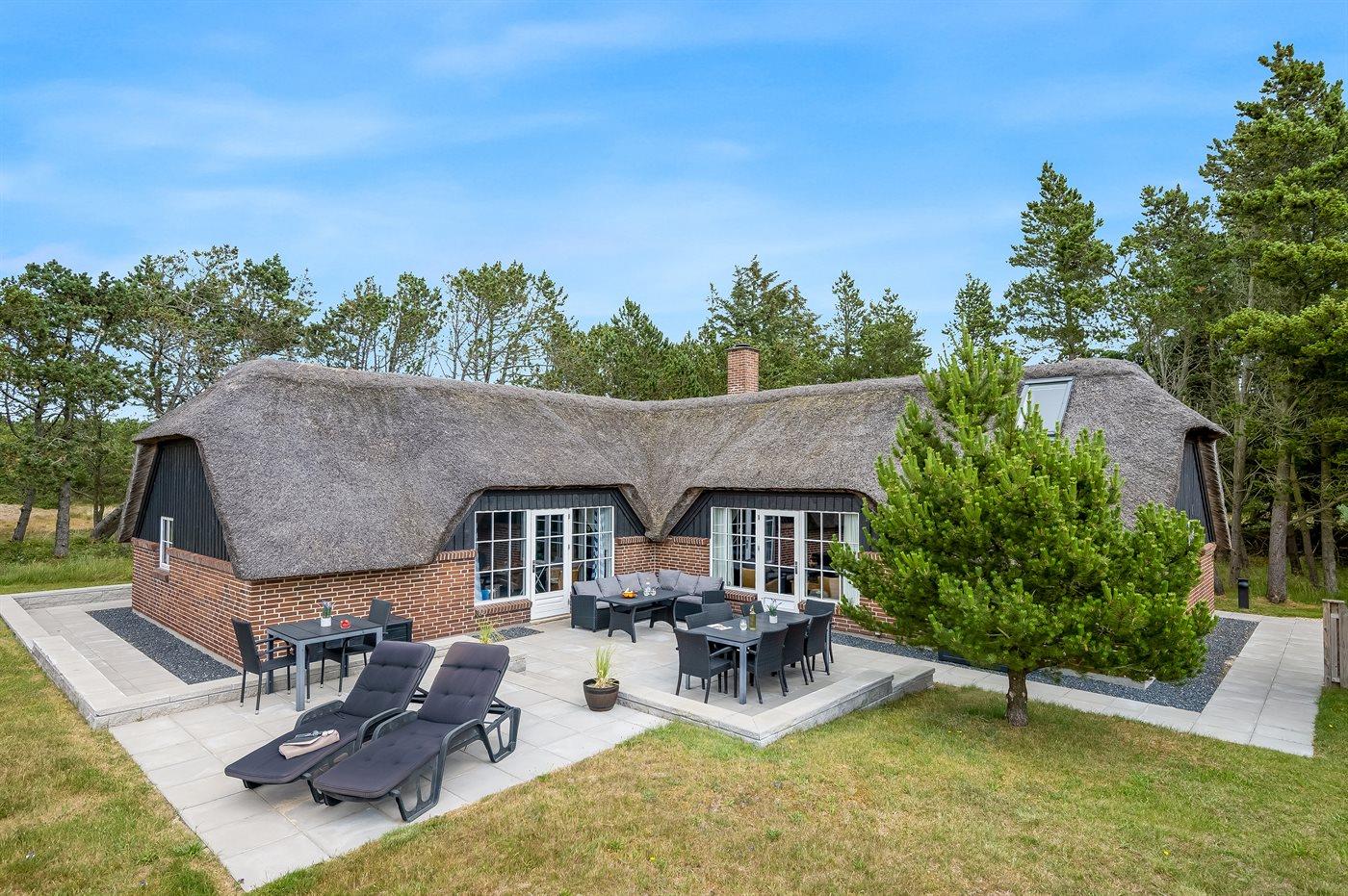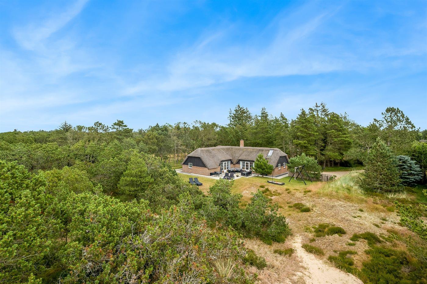 Skønt sommerhus i Blåvand med pool, spa, sauna og stor naturgrund, perfekt til familieferie.