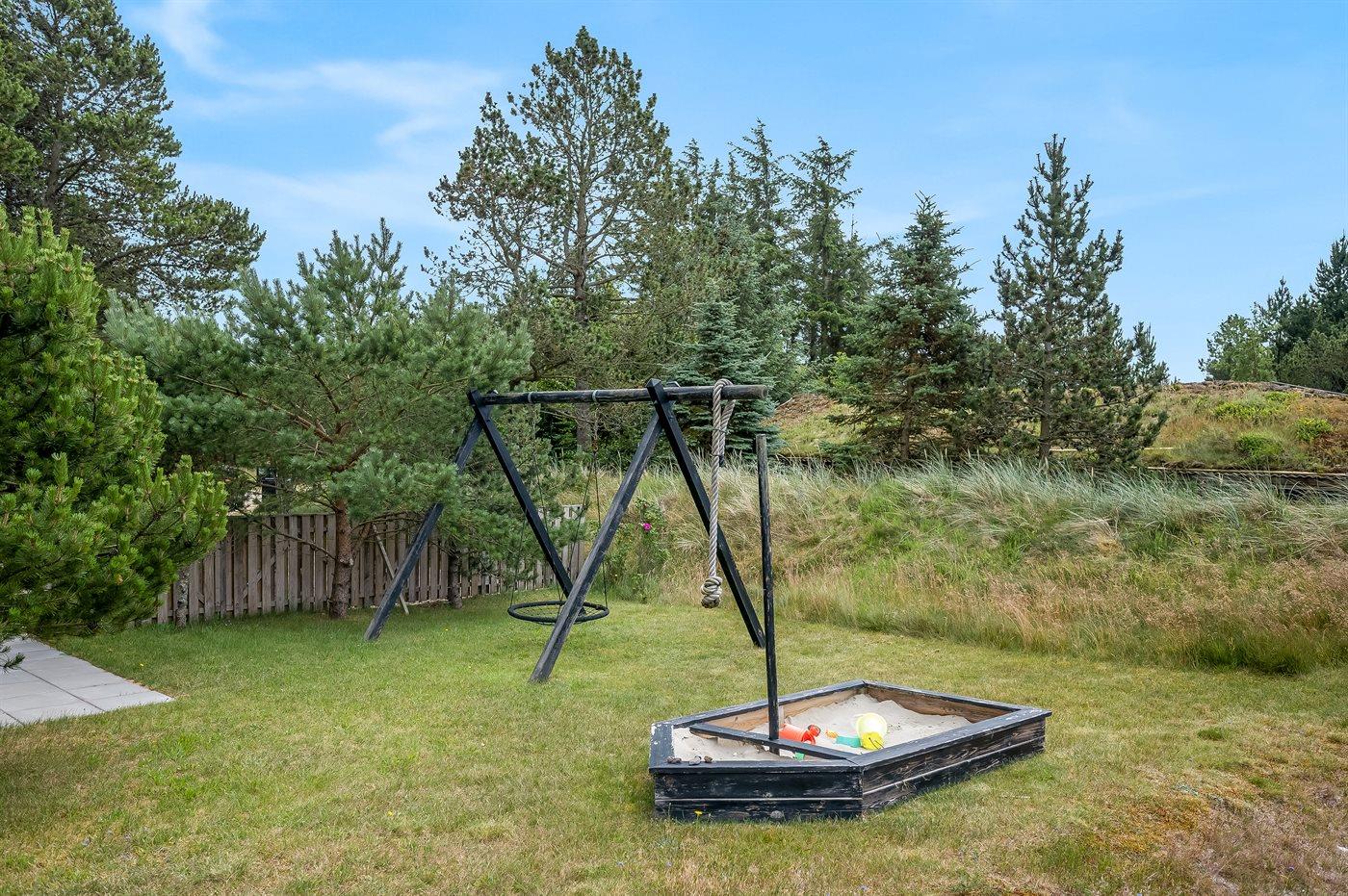 Ferieboligen er beliggende på en 2700 m² stor naturgrund. Der er 2500 m til havet. Nærmeste forretning er beliggende i en afstand af 1600 m. Til ferieboligen hører 65 m² terrasseareal. Desuden er der 15 m² overdækket terrasse. Der er redskabsrum. Gynge. Sandkasse. Grill til rådighed. Parkering ved ferieboligen.