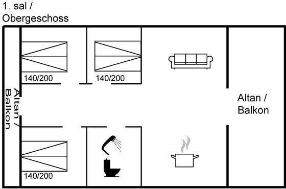 Der er i alt 3 soveværelser. Sovepladserne fordeler sig på: 6 sovepladser i 3/4-senge. Derudover er der 1 stk. barneseng.