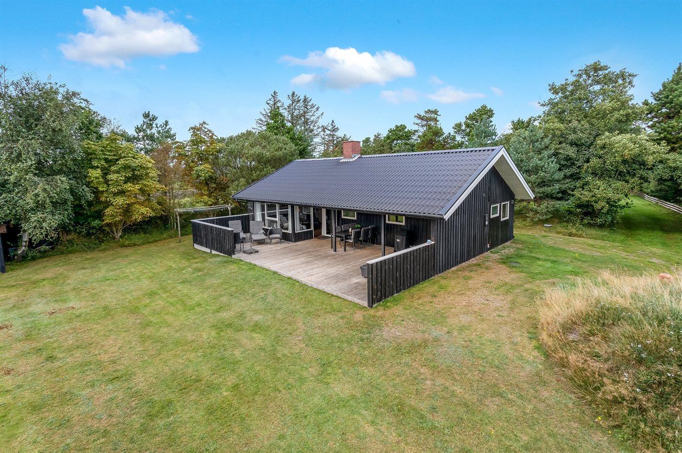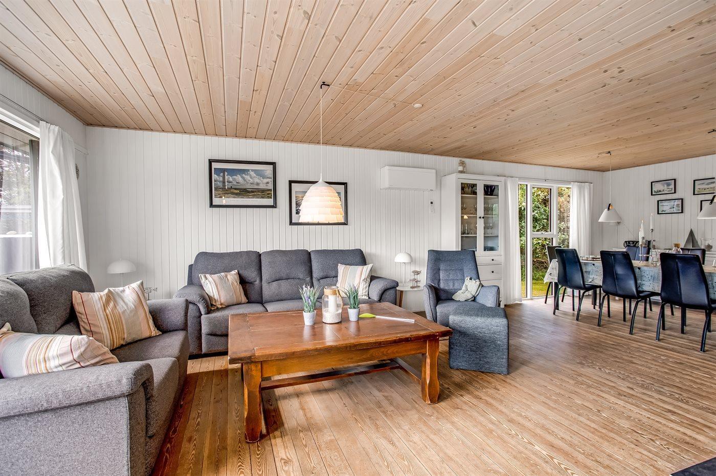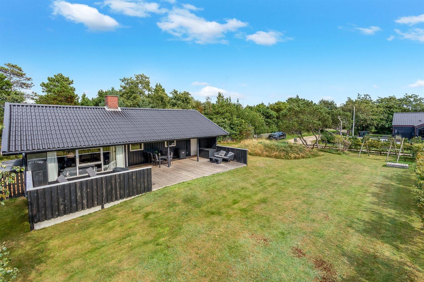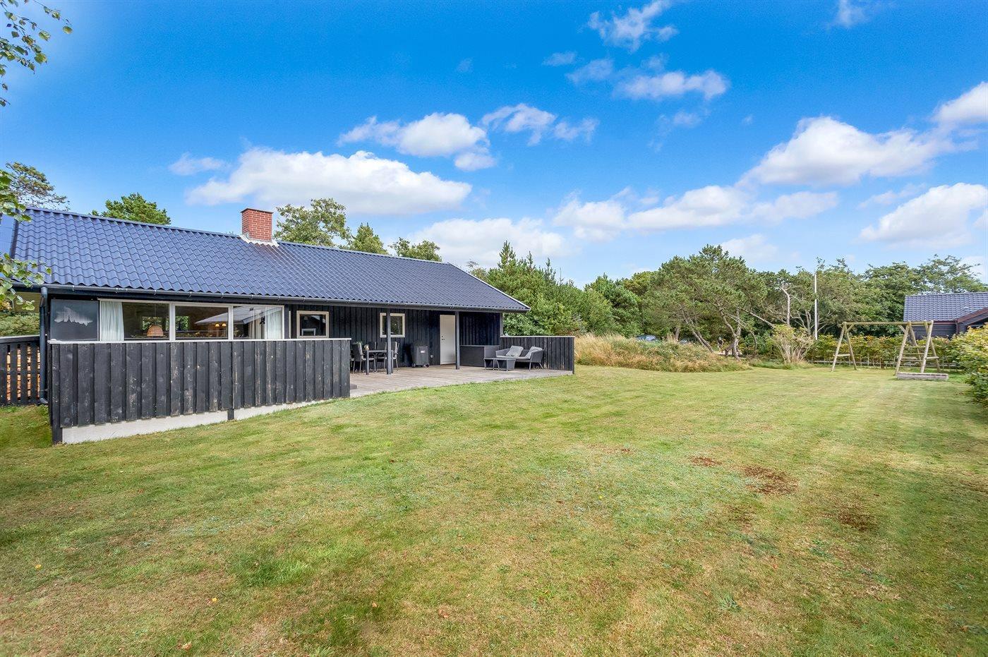 Dette sommerhus er perfekt placeret lige midt i Blåvand by og kort afstand til Vesterhavet. Med den korte afstand giver det mulighed for små som store at gå ud og nyde byen, naturen og havet. Huset ligger for enden af en lukket vej og man kan trygt lade børnene lege. Til huset er der bygget en smuk stor træterrasse, hvor I kan nyde sommeren. Samlingspunktet i huset er den skønne spisestue, der opfordrer til lange samtaler, hygge og brætspil, som ligger klar til jer i sommerhuset. Husets har et skønt køkkenalrum, og et dejligt moderne køkken. I stuen kan hele familien nyde brændeovne eller et godt familieprogram i TV. I huset finder i dejlig, lyse og imødekommende værelser, hvor der er indtænkt opbevaring i hvert rum.