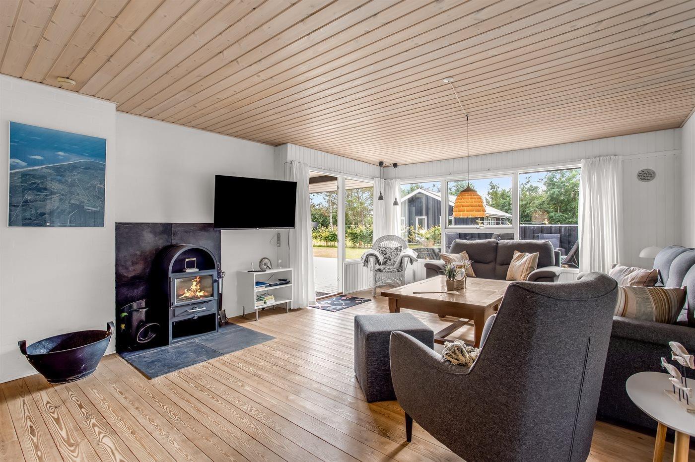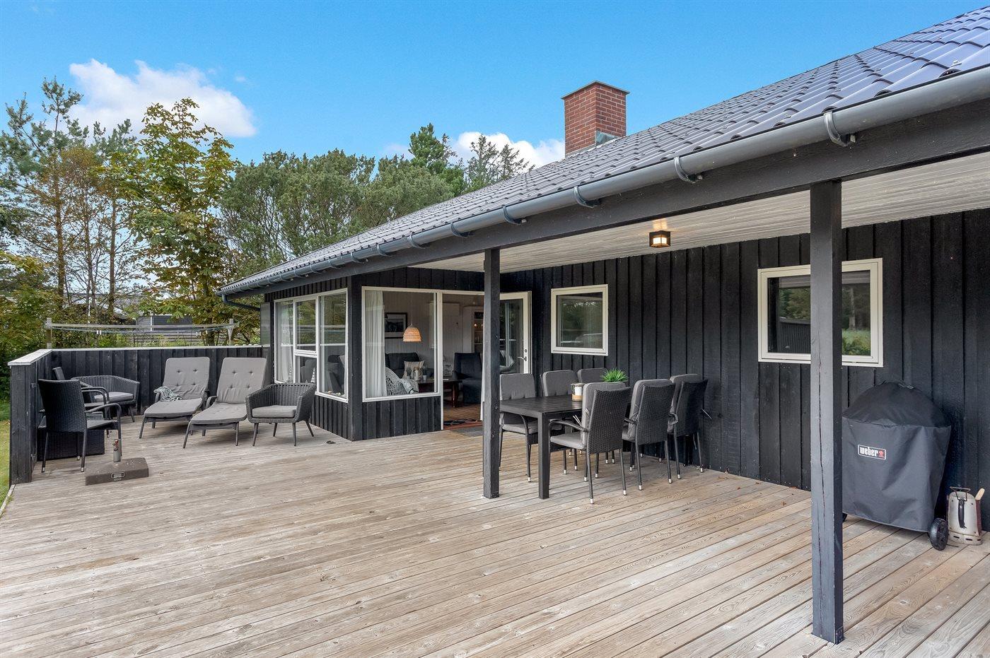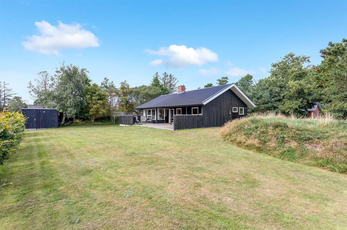 Dette sommerhus er perfekt placeret lige midt i Blåvand by og kort afstand til Vesterhavet. Med den korte afstand giver det mulighed for små som store at gå ud og nyde byen, naturen og havet. Huset ligger for enden af en lukket vej og man kan trygt lade børnene lege. Til huset er der bygget en smuk stor træterrasse, hvor I kan nyde sommeren. Samlingspunktet i huset er den skønne spisestue, der opfordrer til lange samtaler, hygge og brætspil, som ligger klar til jer i sommerhuset. Husets har et skønt køkkenalrum, og et dejligt moderne køkken. I stuen kan hele familien nyde brændeovne eller et godt familieprogram i TV. I huset finder i dejlig, lyse og imødekommende værelser, hvor der er indtænkt opbevaring i hvert rum.