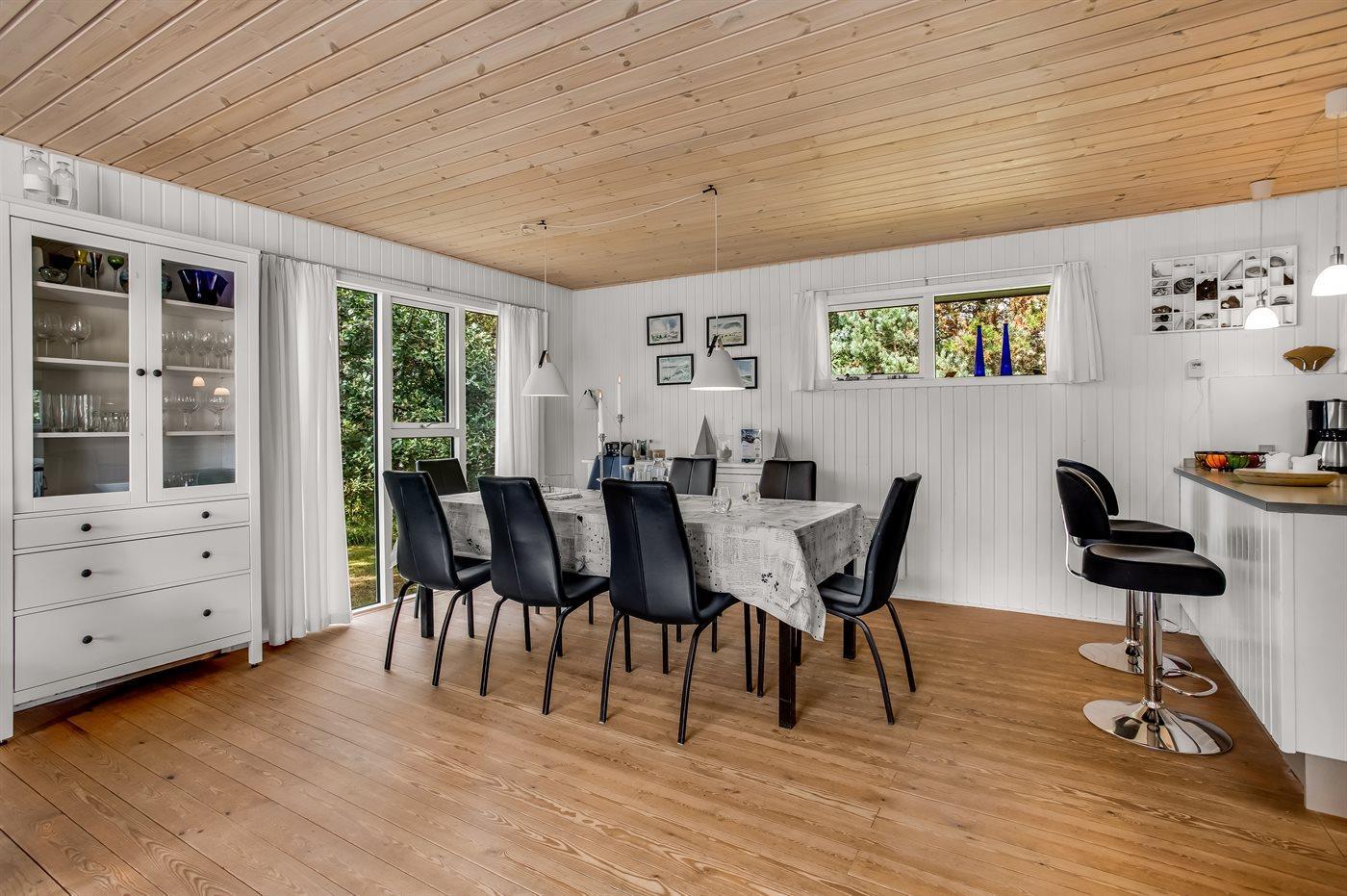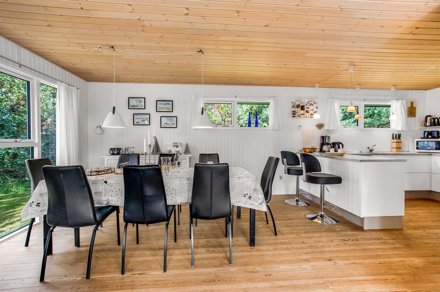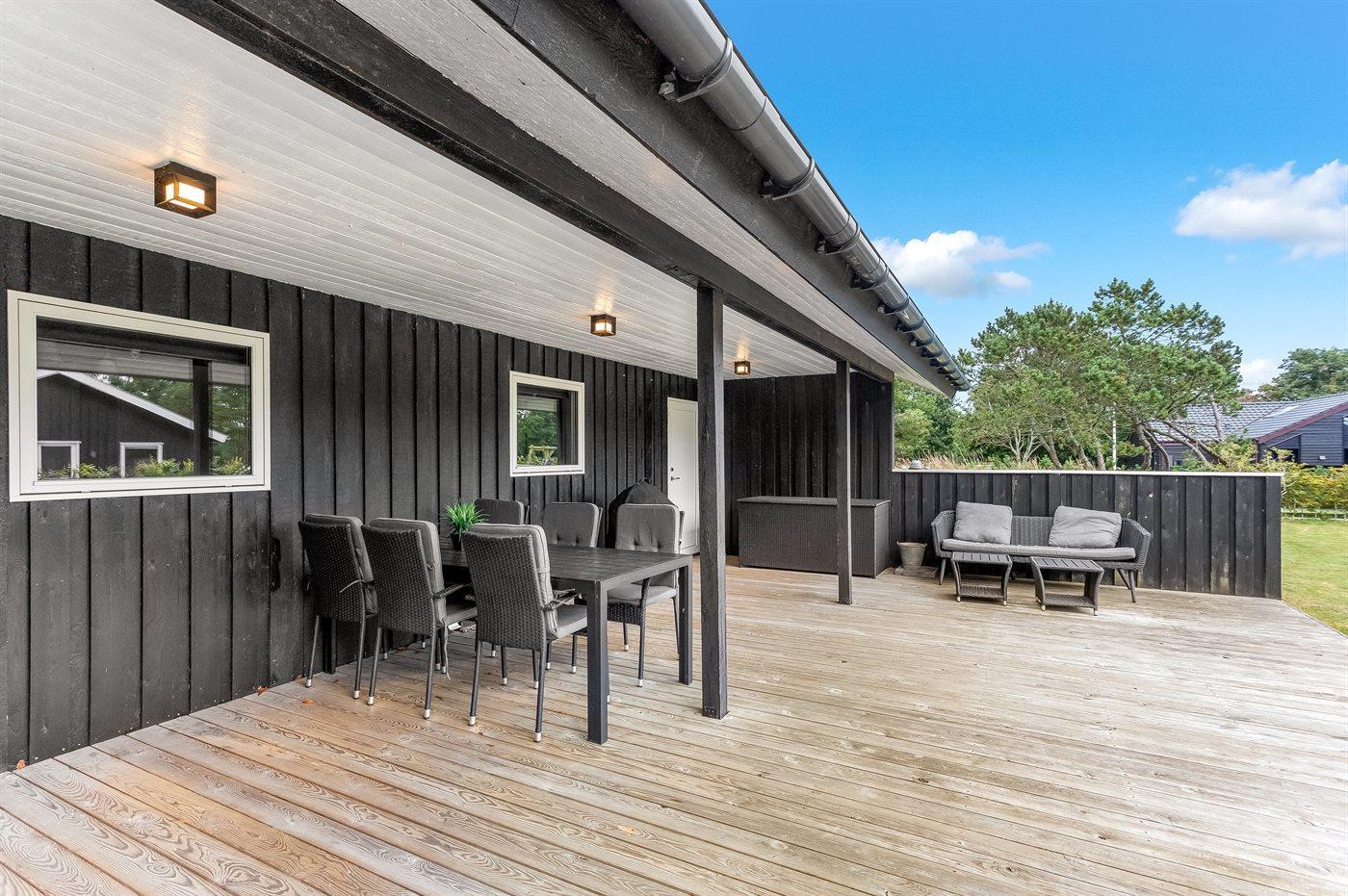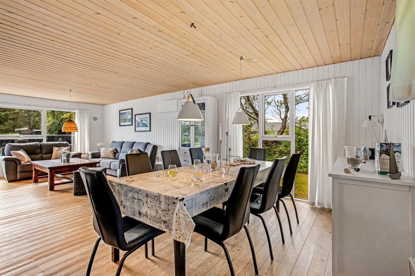 Dette sommerhus er perfekt placeret lige midt i Blåvand by og kort afstand til Vesterhavet. Med den korte afstand giver det mulighed for små som store at gå ud og nyde byen, naturen og havet. Huset ligger for enden af en lukket vej og man kan trygt lade børnene lege. Til huset er der bygget en smuk stor træterrasse, hvor I kan nyde sommeren. Samlingspunktet i huset er den skønne spisestue, der opfordrer til lange samtaler, hygge og brætspil, som ligger klar til jer i sommerhuset. Husets har et skønt køkkenalrum, og et dejligt moderne køkken. I stuen kan hele familien nyde brændeovne eller et godt familieprogram i TV. I huset finder i dejlig, lyse og imødekommende værelser, hvor der er indtænkt opbevaring i hvert rum.