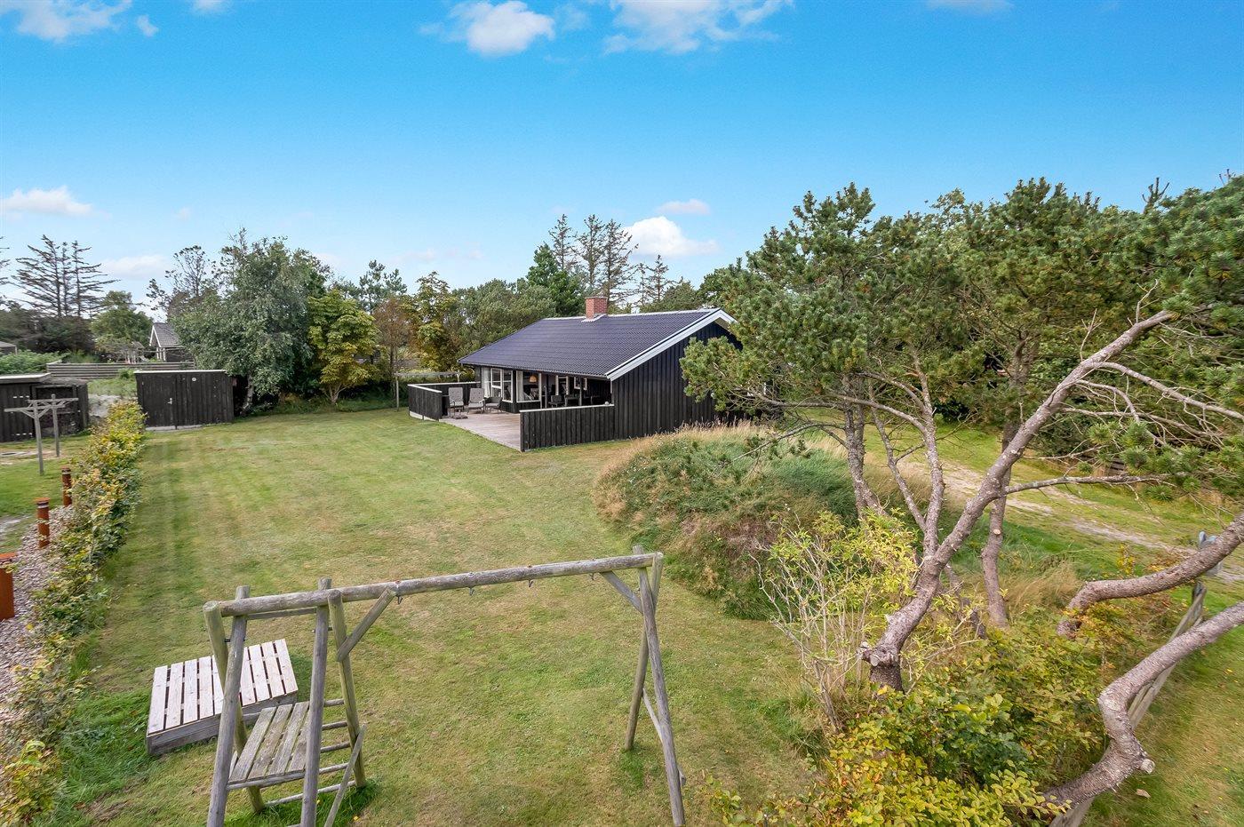 Ferieboligen er beliggende på en 1244 m² stor naturgrund. Der er 750 m til havet. Nærmeste forretning er beliggende i en afstand af 175 m. Til ferieboligen hører åbent terrasseareal. Desuden er der overdækket terrasse. Gynge. Sandkasse. Parkering ved ferieboligen.