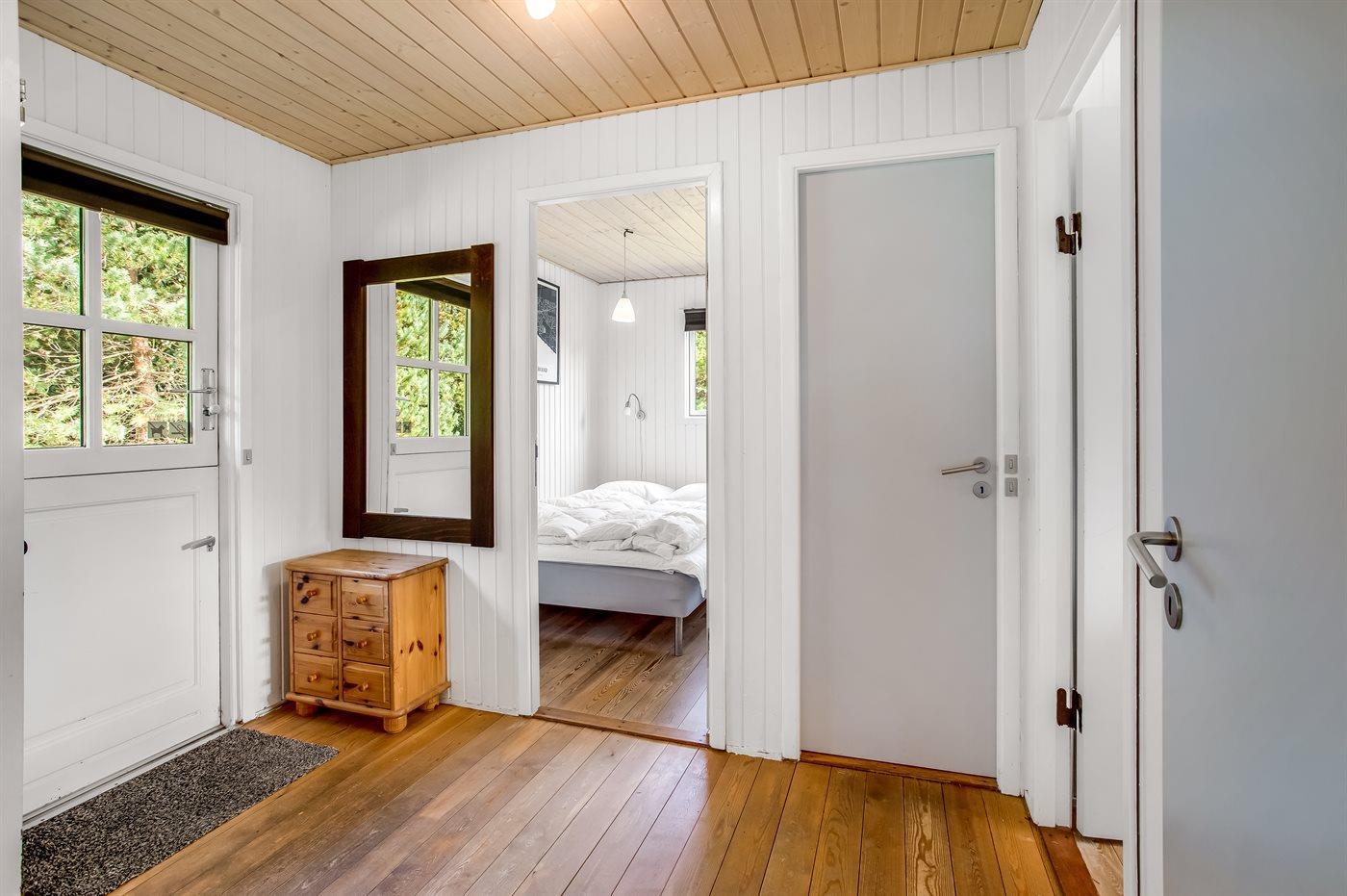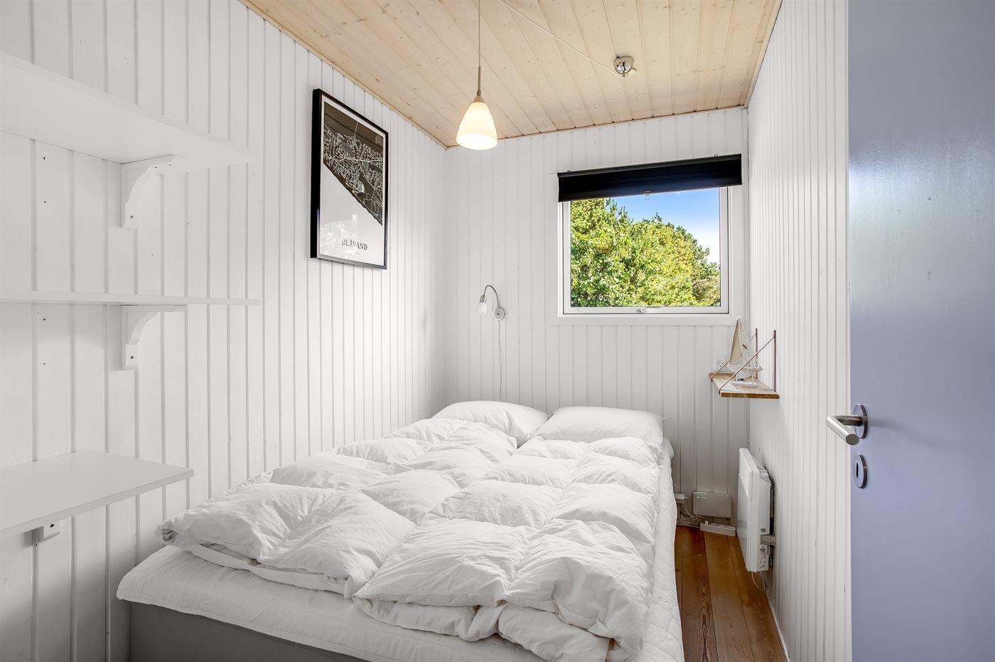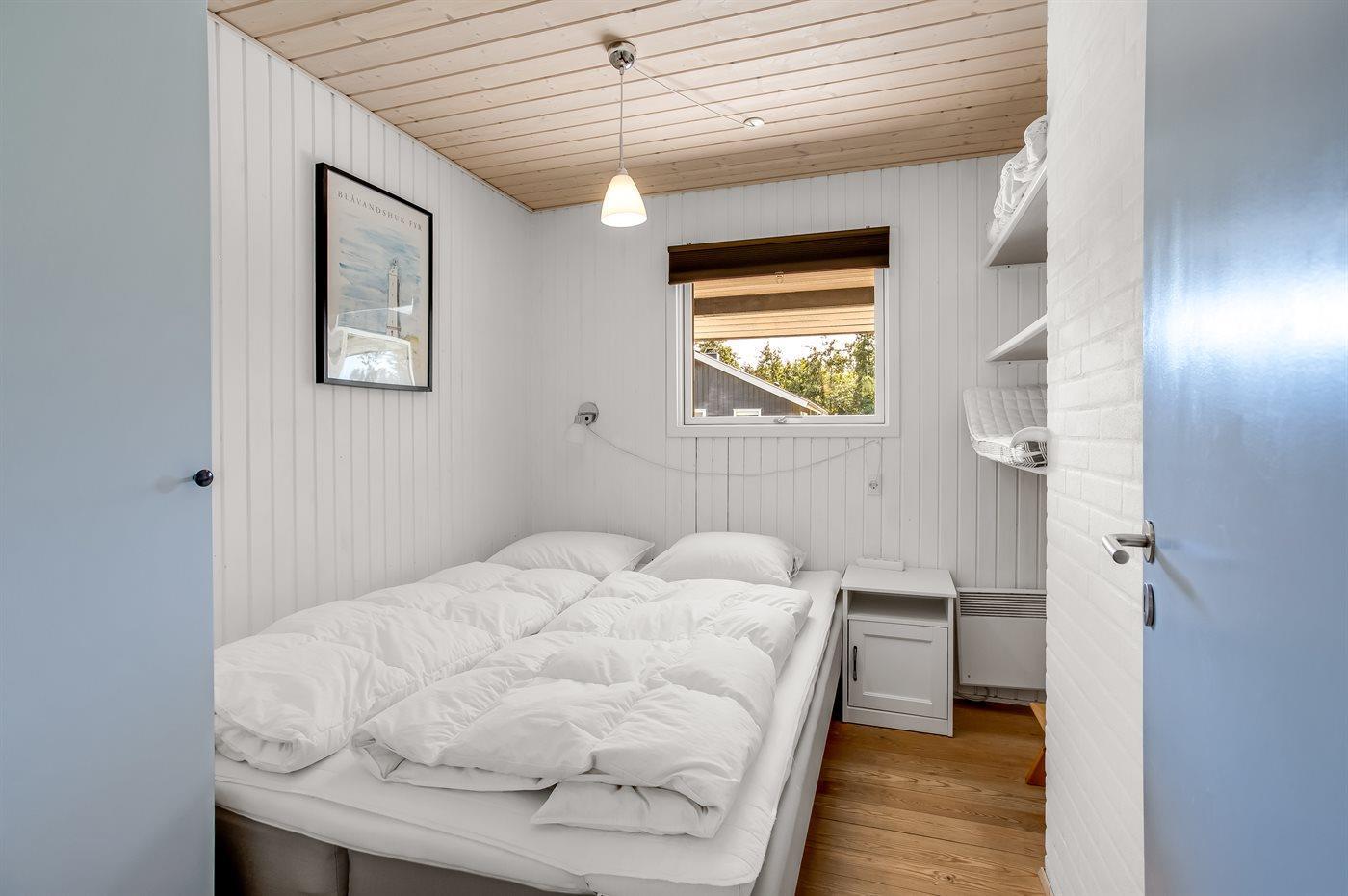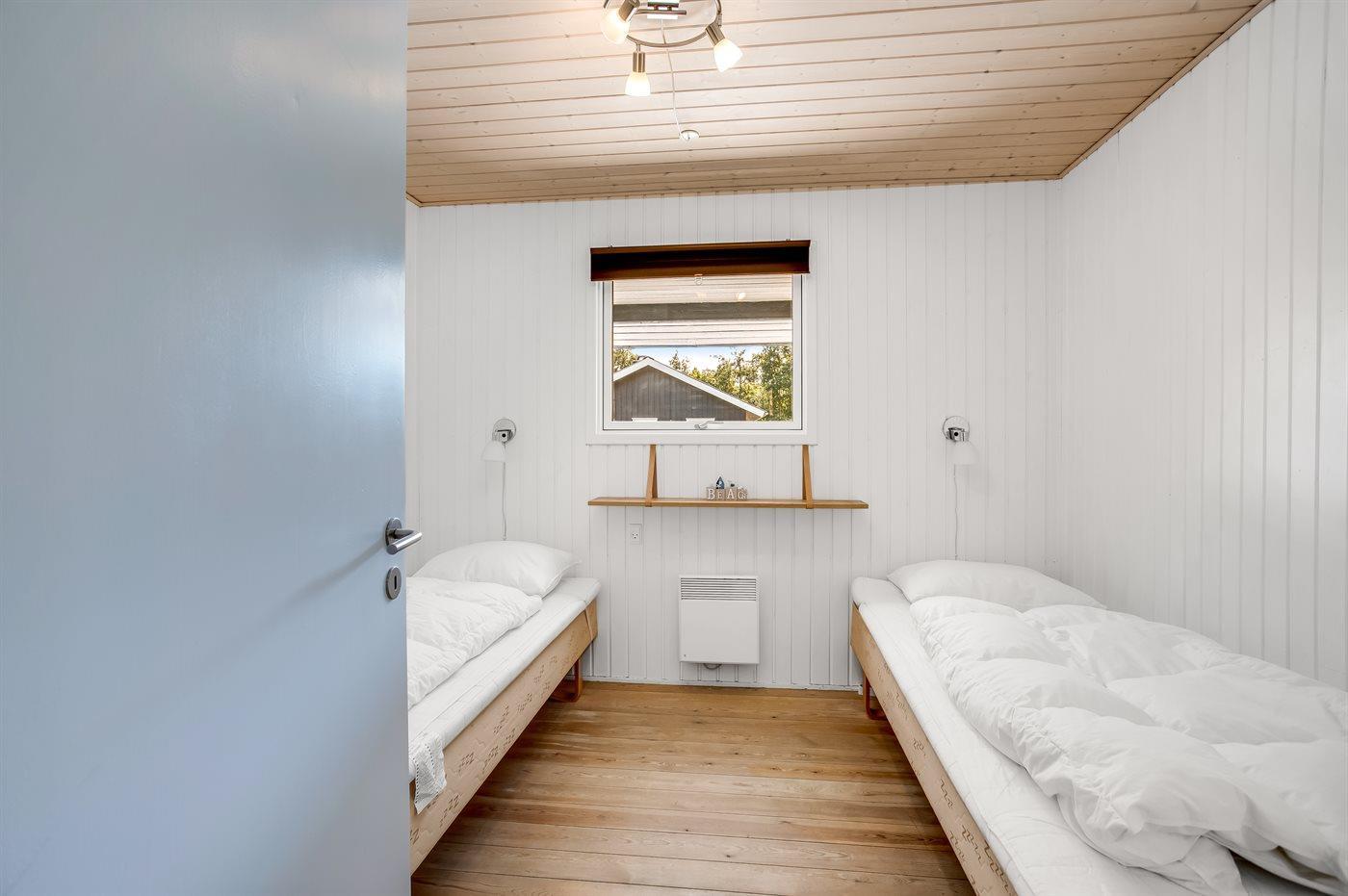 Der er i alt 3 soveværelser. Sovepladserne fordeler sig på: 4 sovepladser i dobbeltsenge. 2 sovepladser i enkeltsenge. Derudover er der 1 stk. barneseng.