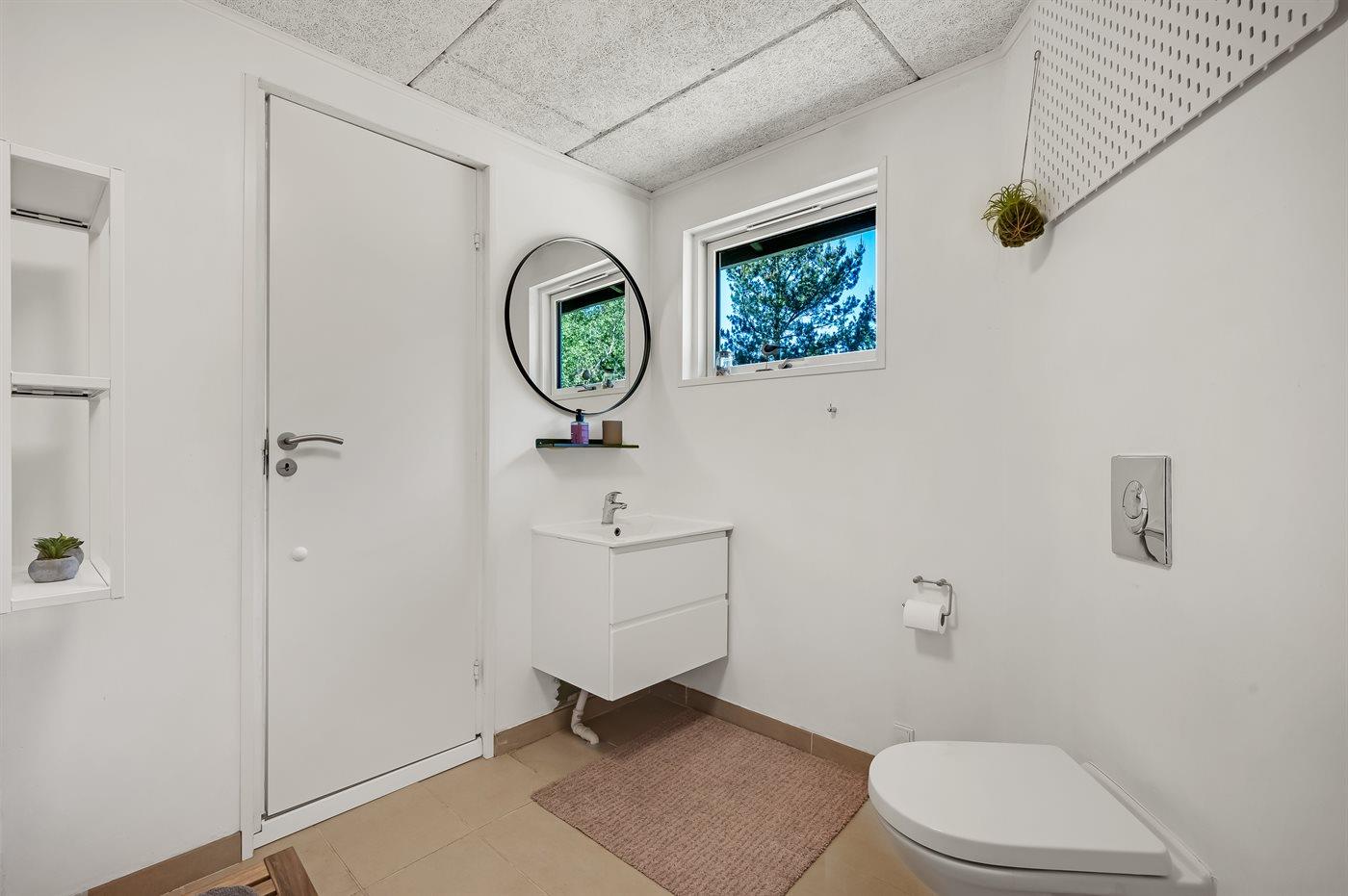 Her er der fokus på rigtig sommerhushygge med blandt andet brændeovn og opvaskemaskine samt et stort udeareal med overdækket terrasser. Huset er beliggende på en stor grund for enden af en lukket vej og omgivet af fyrretræer - her har I jeres egen udendørs luksus-hygge med både udendørs sauna og vildmarksbad. Muligheden er der for at I kan skabe jeres egen lille wellness ferie.