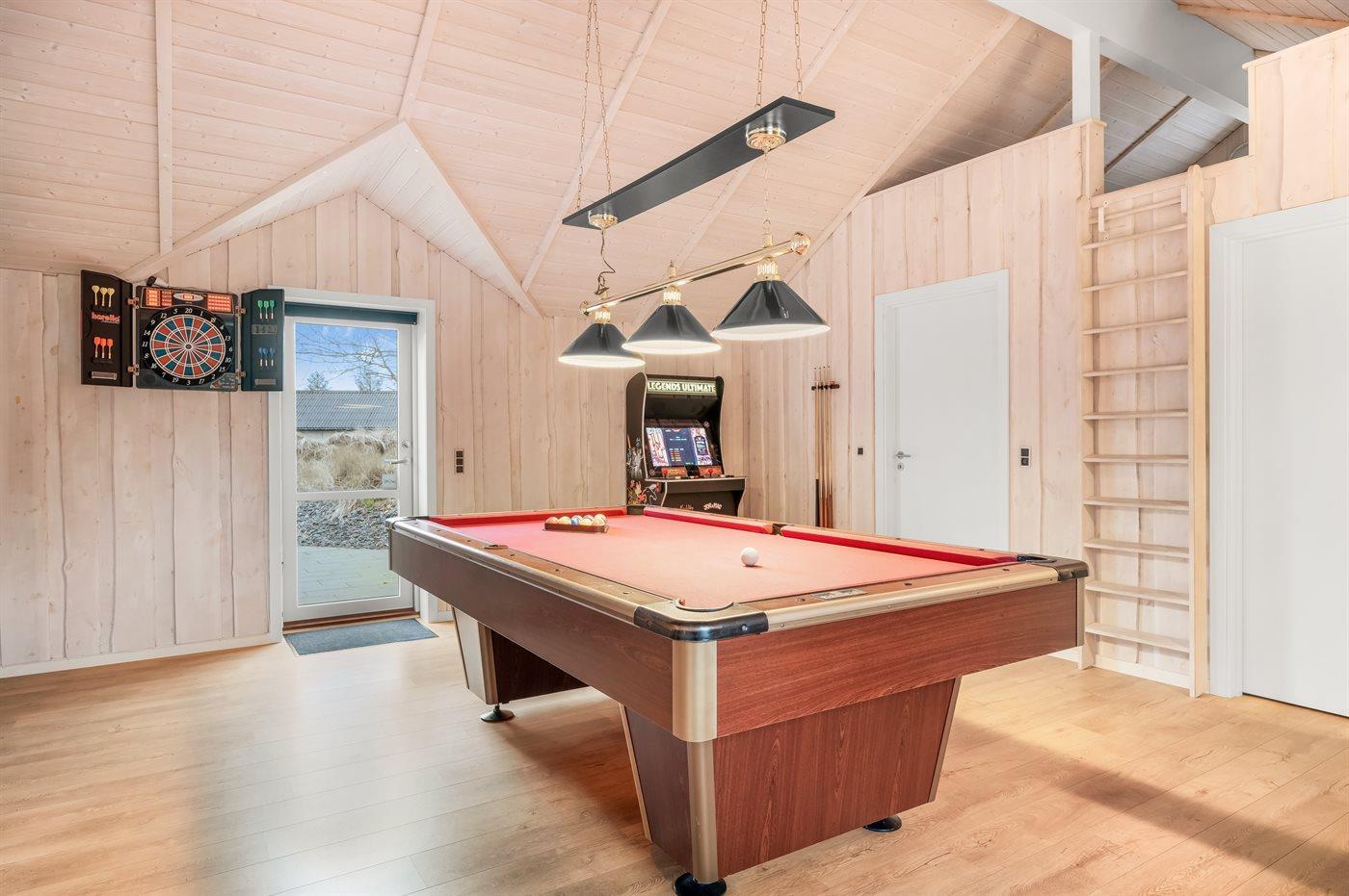 I aktivitetsrummet er der følgende udstyr: Billard-/poolbord. Dart. Arkadespillemaskine. Der er gulvvarme i aktivitetsrummet.