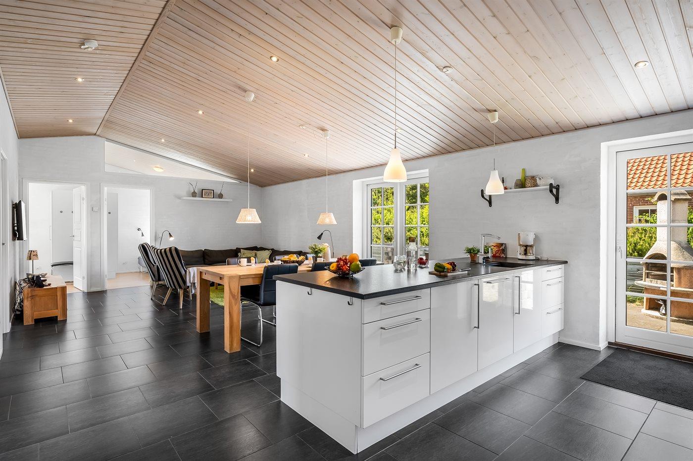 Køkkenet er udstyret med 1 køleskab. Der er 4 keramiske kogeplader, varmluftovn, mikrobølgeovn samt opvaskemaskine.
