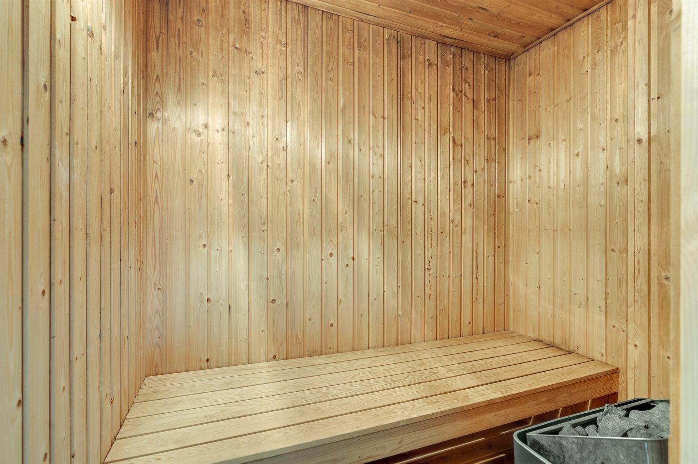 Der er 2 badeværelser med bruser og 2 toiletter. Der er gulvvarme på 1 badeværelse. I saunaen er der mulighed for afslapning.