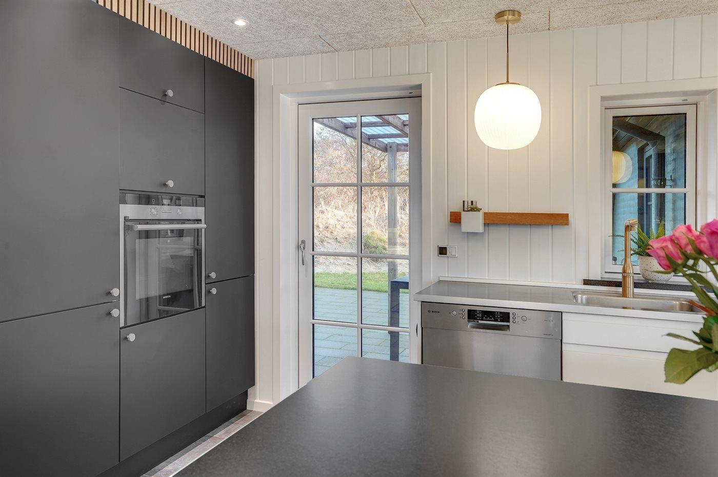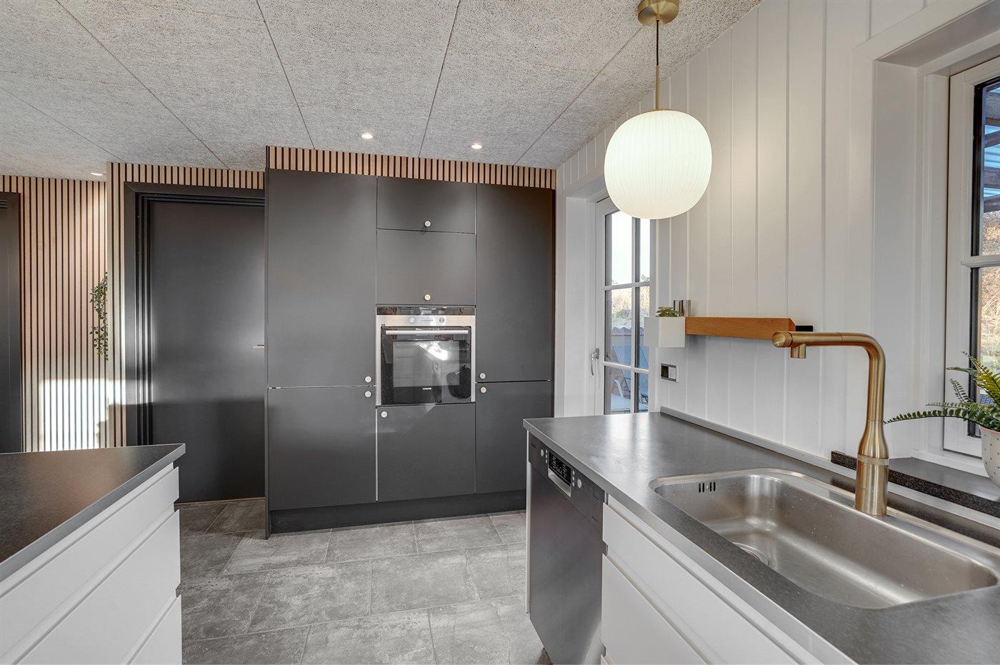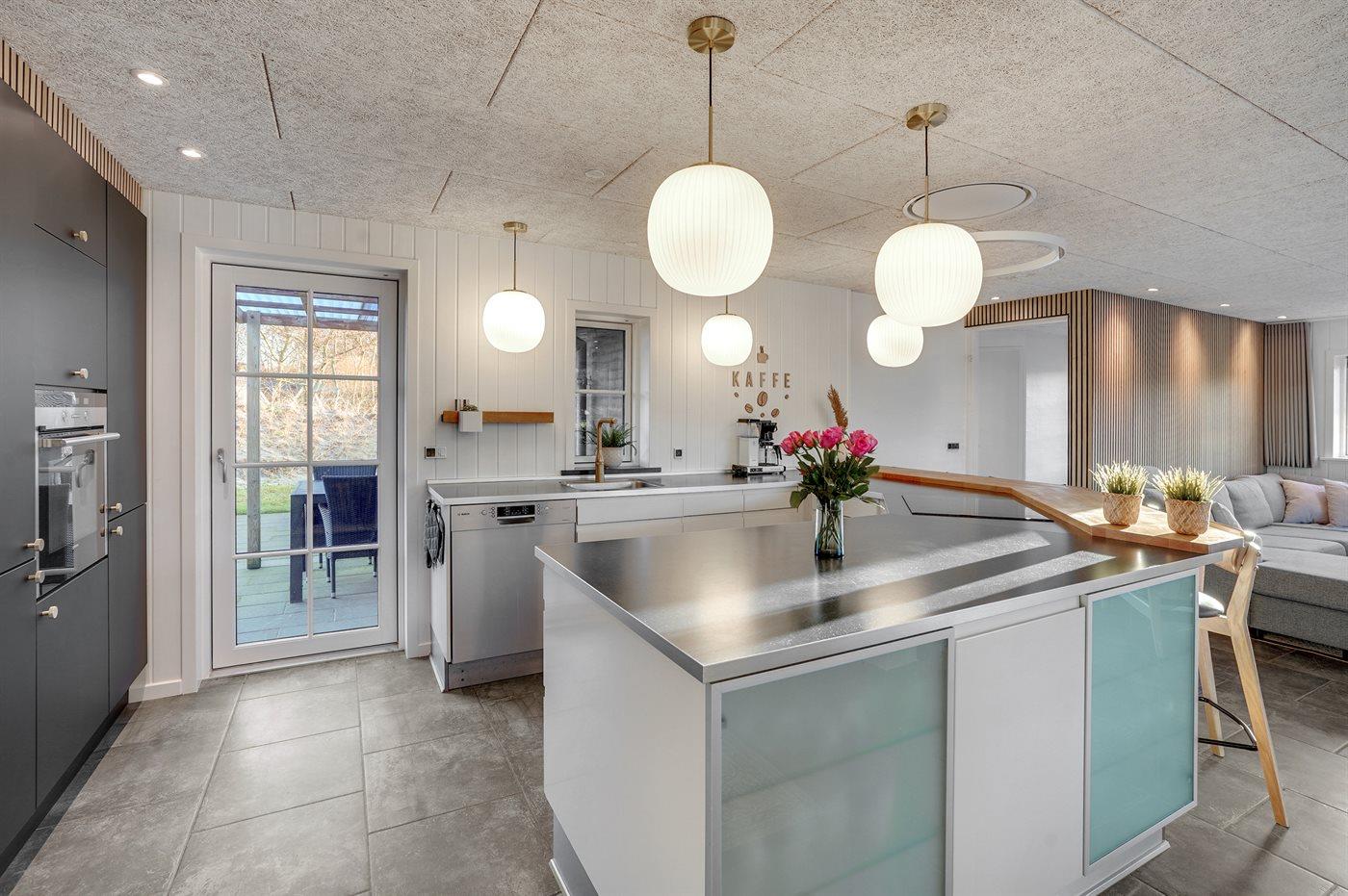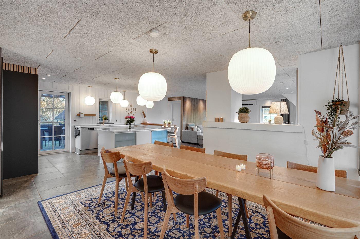 Husets midtpunkt er det åbne køkken, som ligger i forbindelse med en smuk opholdsstue, hvor der er plads til at være sammen med familie og venner.