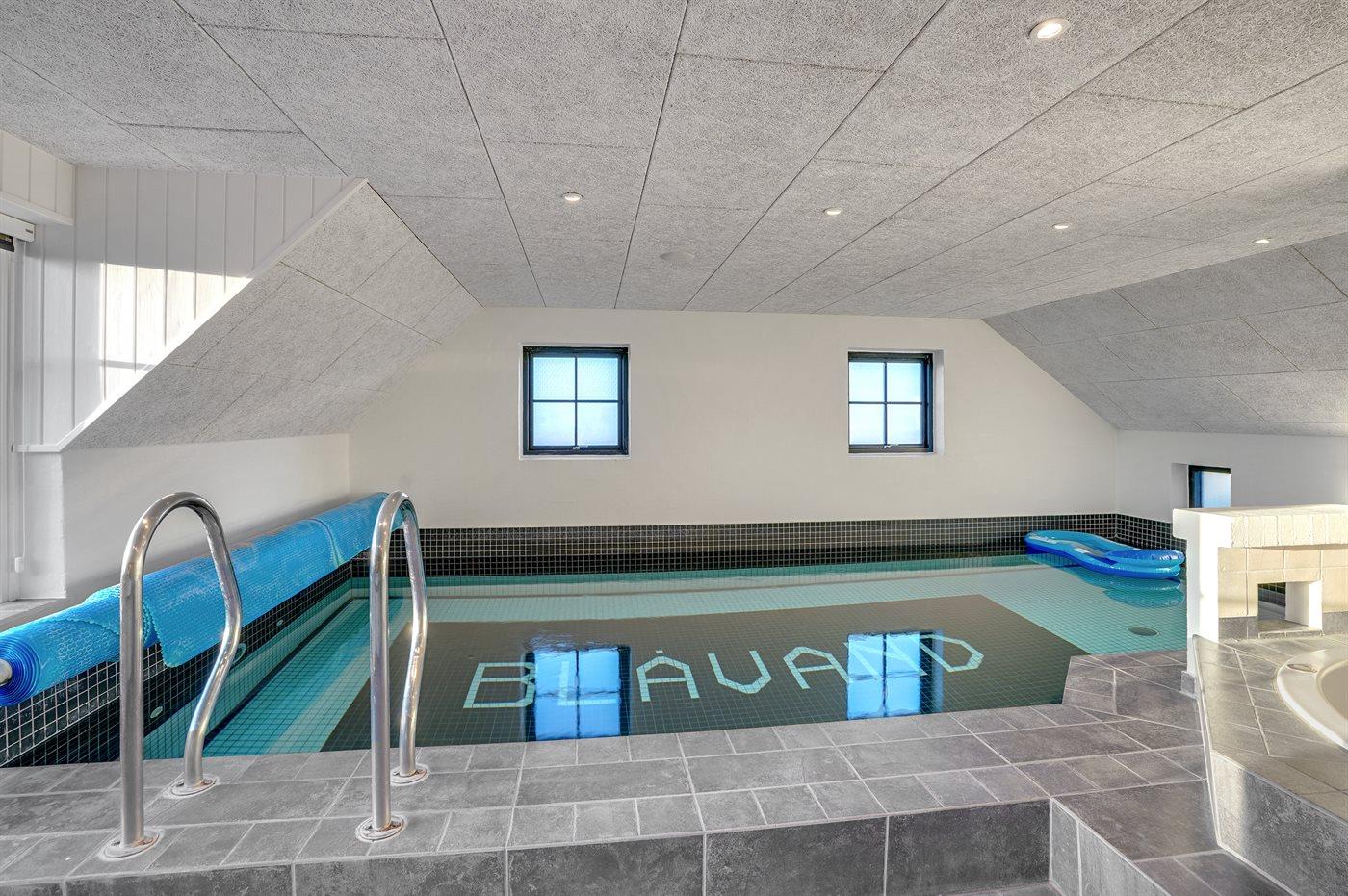 Af udstyr kan bl.a. gratis internetforbindelse nævnes. Der findes 2 skønne badeværelser, en god stor sauna, samt et pool-rum på 39 m2 med en lækker 27 m2 stor swimmingpool samt 5-pers. spa (standvand) med terapidyser. Husets sovepladser fordeler sig på 4 værelser, alle med dobbeltseng. I Alle værelserne findes der desuden TV.