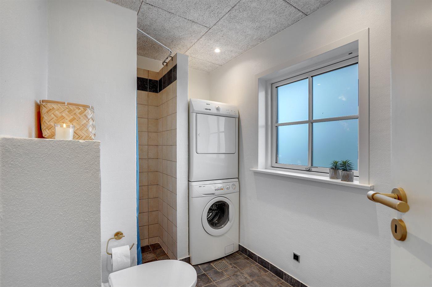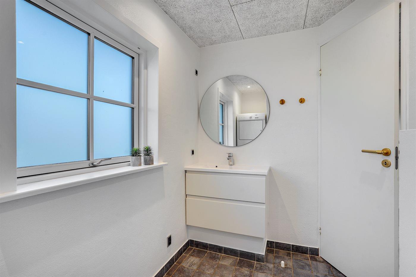 Huset er energioptimeret med gulvvarme og varmepumpe.
