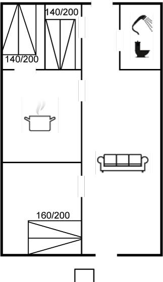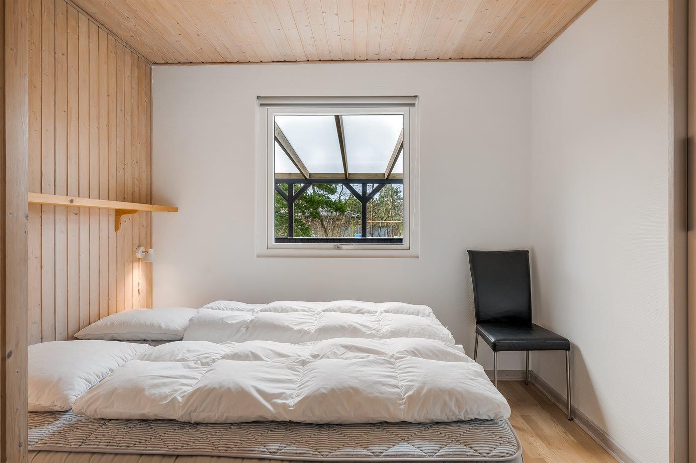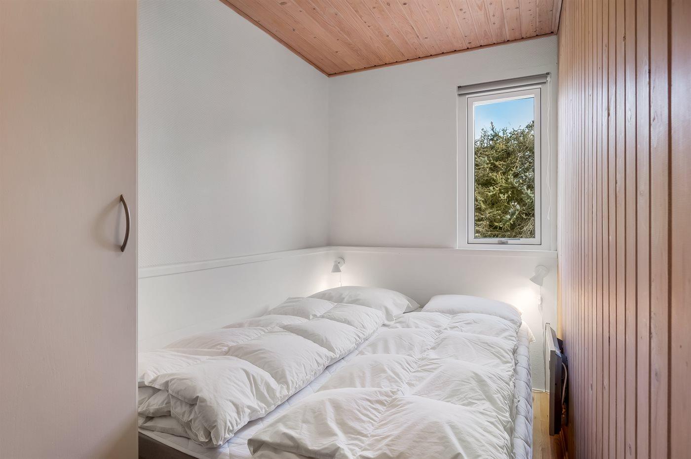 Der er i alt 3 soveværelser. Sovepladserne fordeler sig på: 4 sovepladser i dobbeltsenge. 1 soveplads i enkeltseng. Derudover er der 1 stk. barneseng.