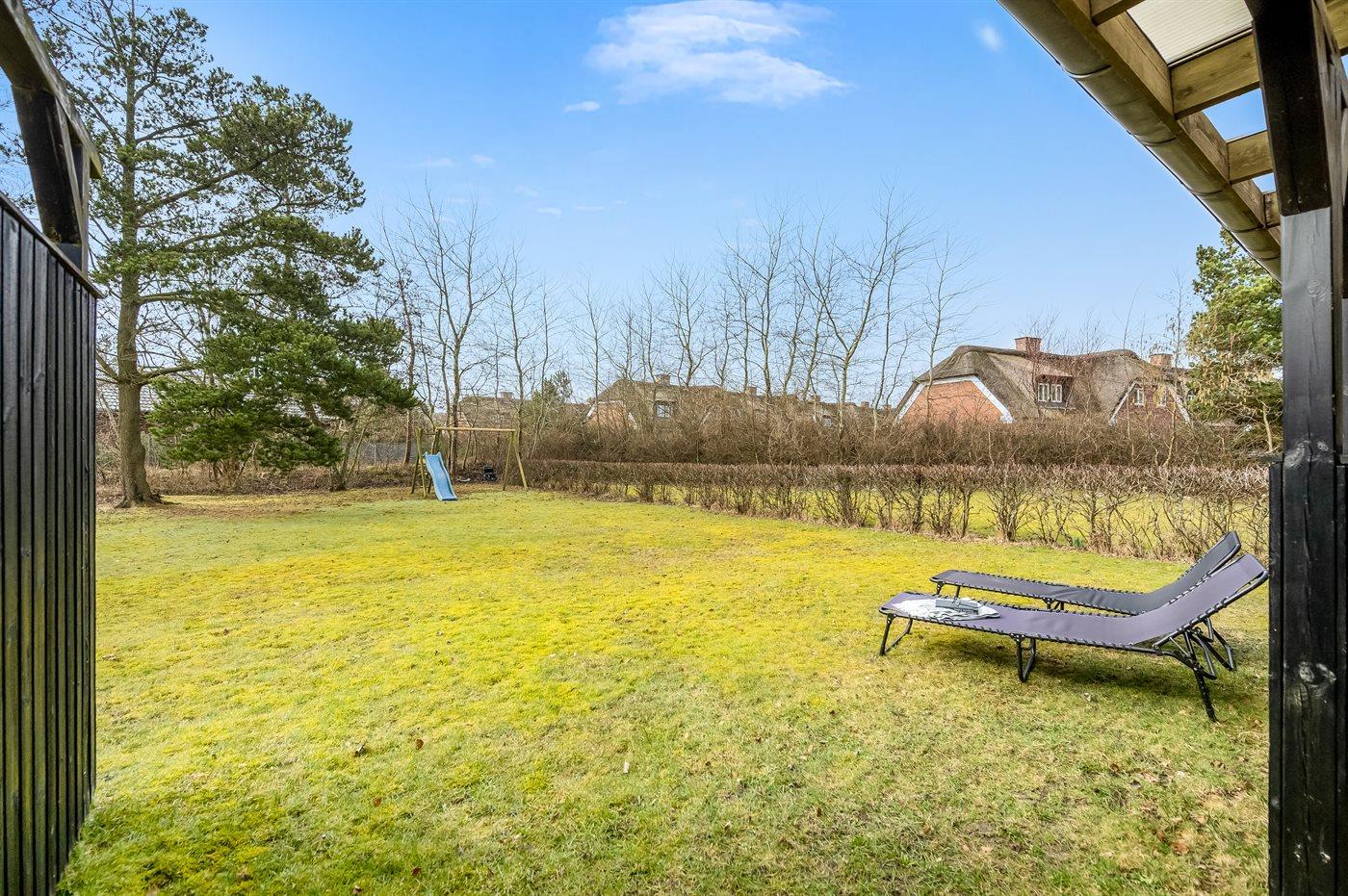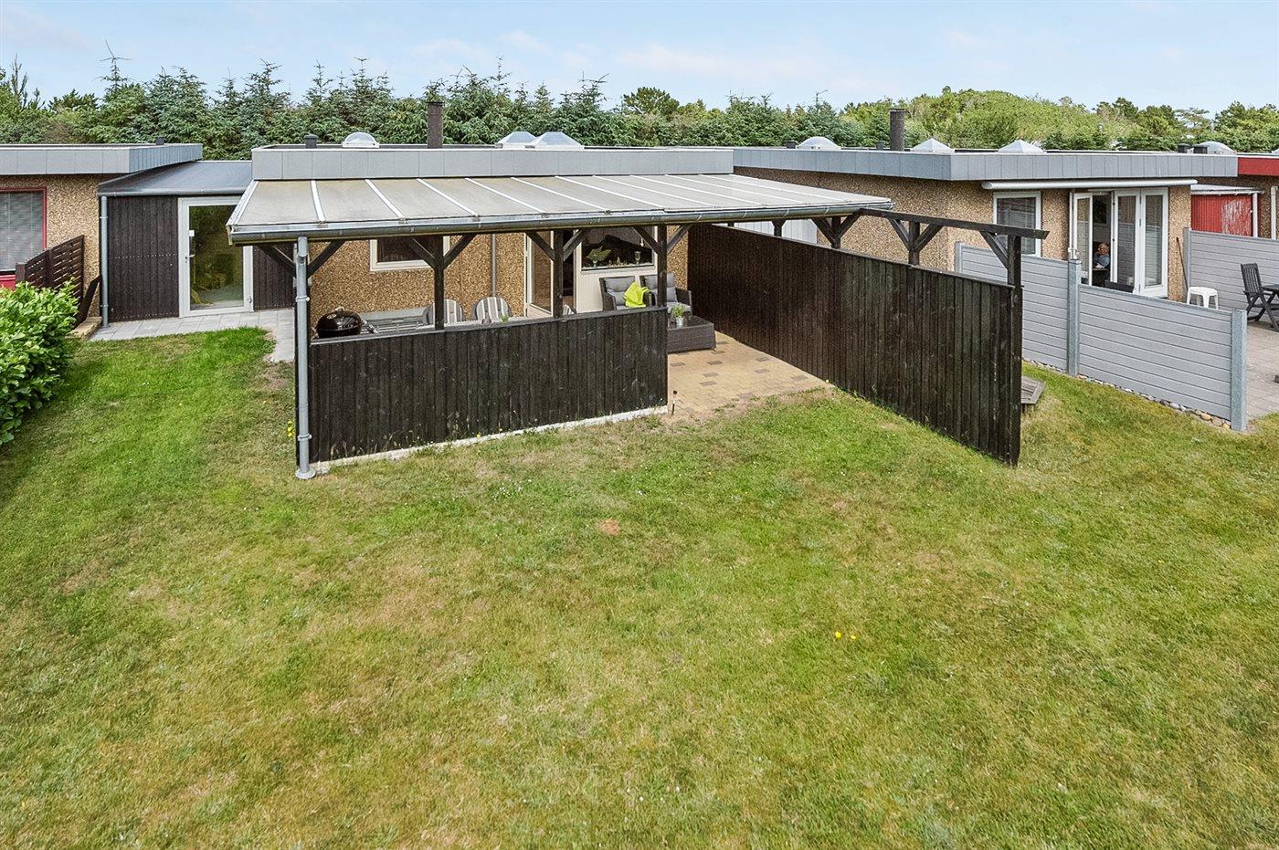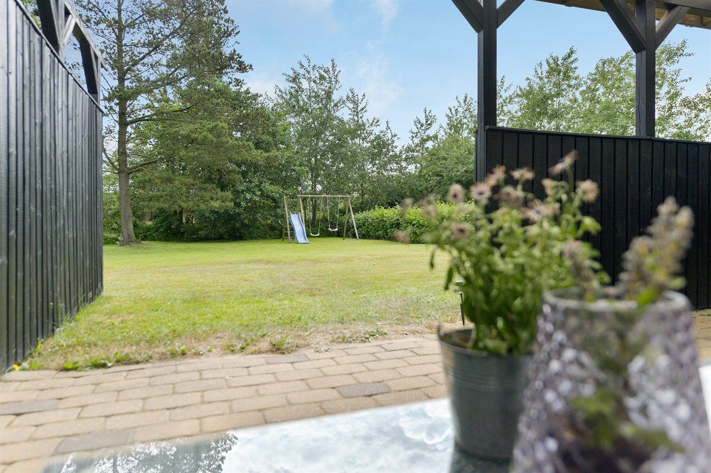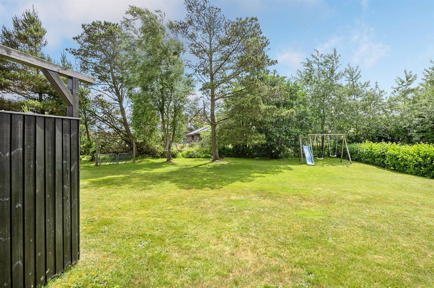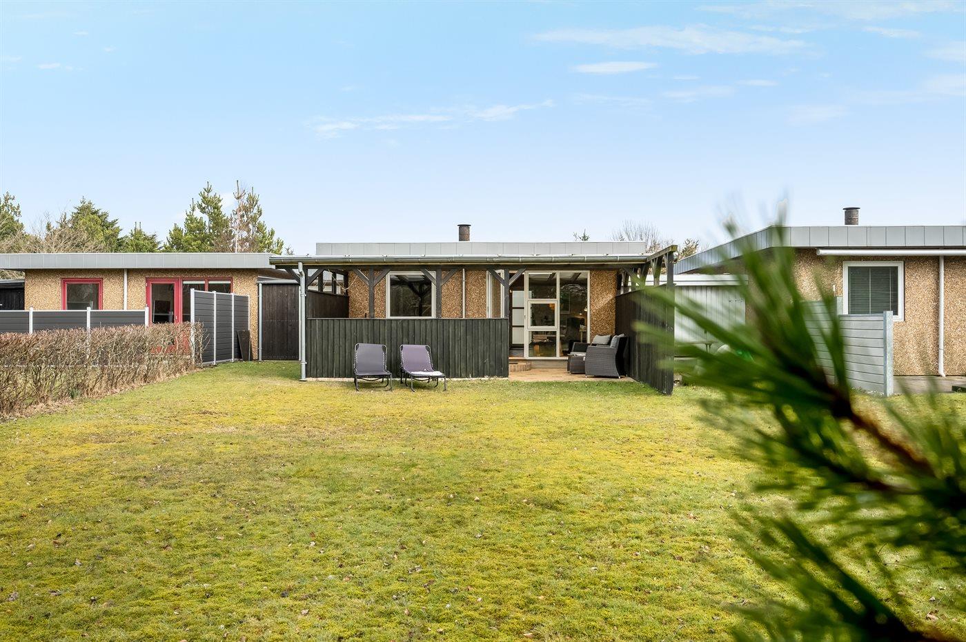 Ferieboligen er beliggende på en 400 m² stor havegrund. Der er 900 m til havet. Nærmeste forretning er beliggende i en afstand af 200 m. Desuden er der 23 m² overdækket terrasse. Gynge. Parkering ved ferieboligen.
