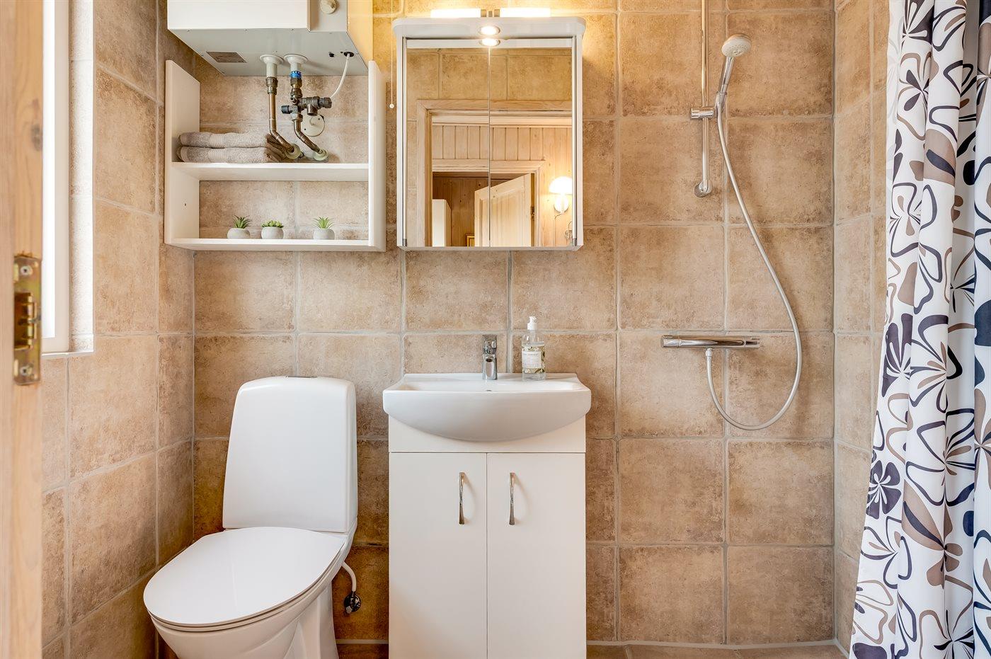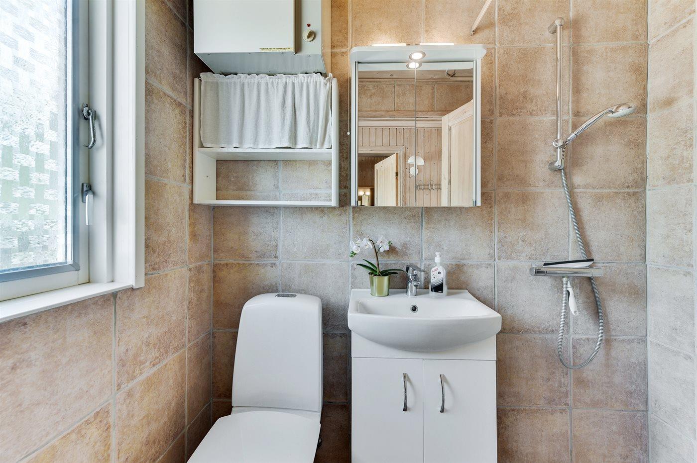 Der er 1 badeværelse med bruseniche og 1 toilet.. Der er gulvvarme på 1 badeværelse.