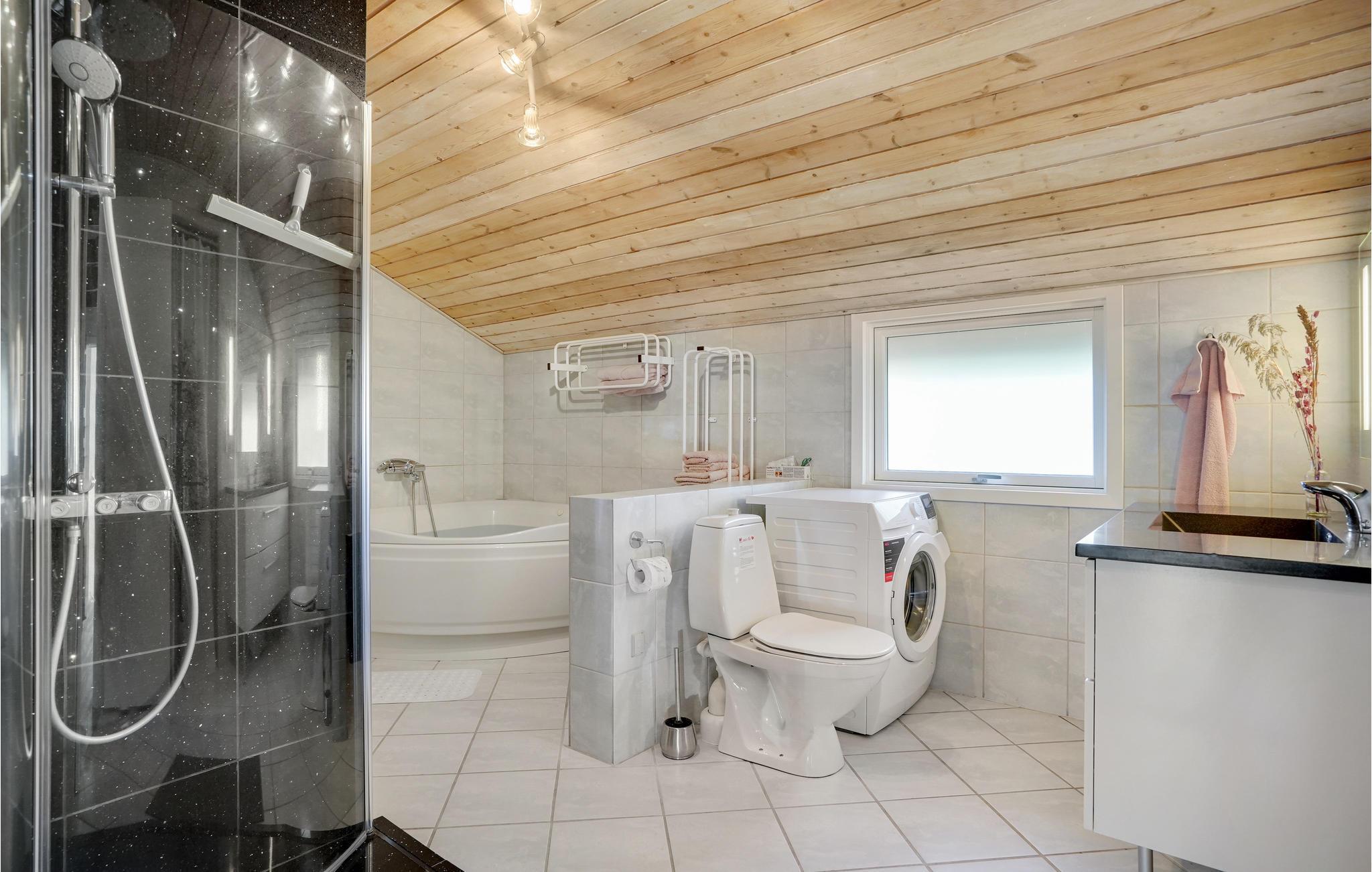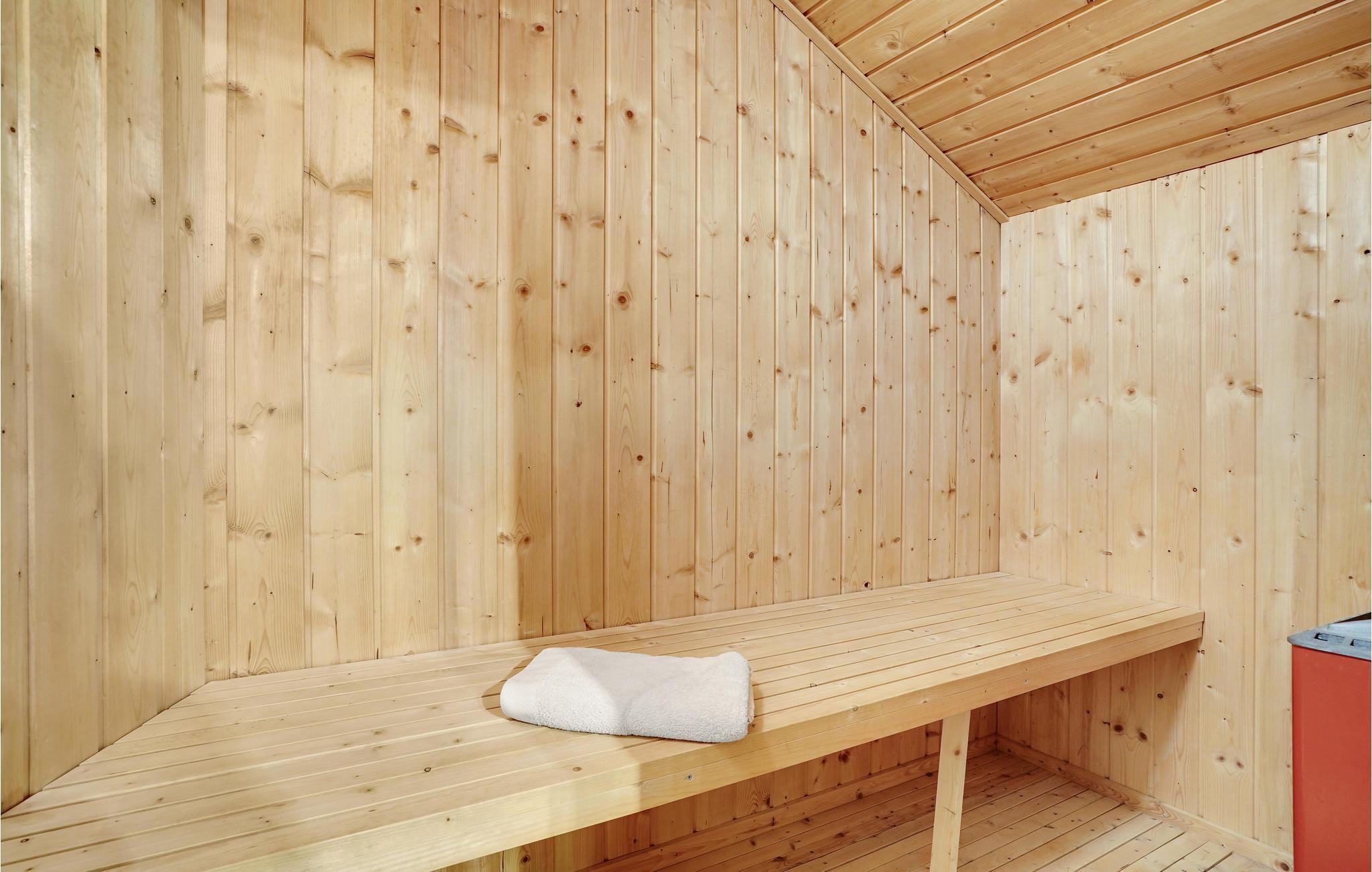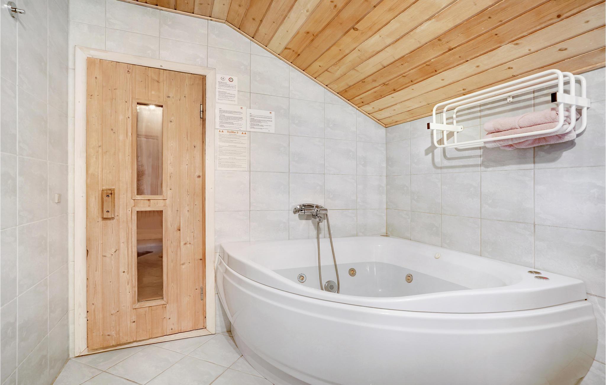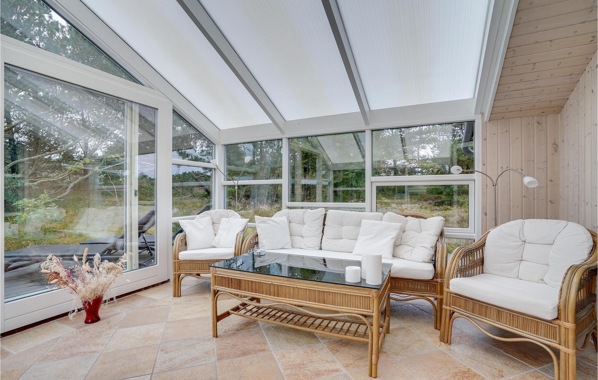 I dette dejlige, smagfuldt indrettede feriehus, som ligger på en stor naturgrund, der elegant glider ind i Blåvands store skov- og hedeområder, er rammerne skabt for en afslappet ferie. Huset, der ligger i den østlige del af Blåvand, har en stor terrasse, der indbyder til solbadning og hyggelige aftener ved grillen. Trænger I til at få musklerne løst op efter en dejlig gåtur i skoven eller langs Vesterhavet, har I muligheden i det store, dejlige badeværelse med sauna og spabad. Der er gulvvarme i både badeværelset og udestuen. Værelse 3 er indrettet, så det både kan fungere som soveværelse eller en ekstra lille stue med tv.