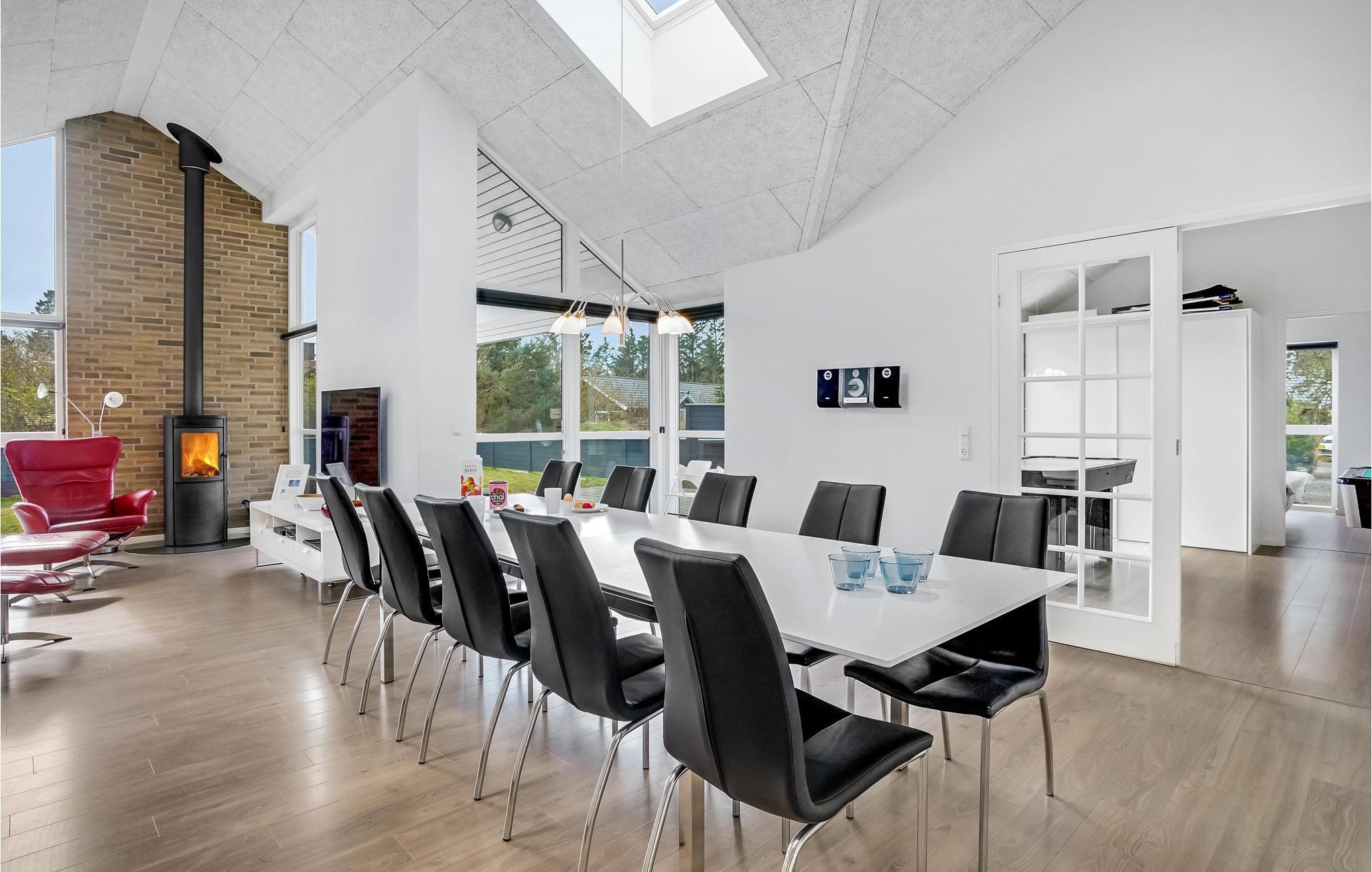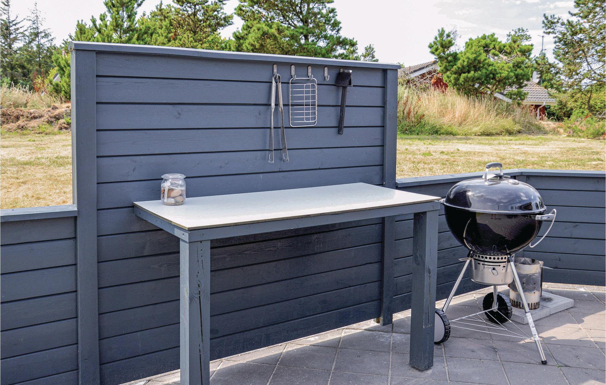 Super flot og gennemført feriehus der ligger på en lukket klitgrund, tæt ved såvel vandet som Blåvand by. Huset er praktisk opdelt med to soveværelser i hver ende af huset, og en hems som børnene vil elske. Centrum i huset er den hyggelige stue som ligger sammen med køkkenet. Derudover får såvel børn som voksne helt sikkert masser af gode timer sammen i det store aktivitetsrum. For at sikre et optimalt indeklima er huset udstyret med et genvex anlæg. Omkring huset kan solen nydes på de store terrasser, der sammen med legeområdet er helt indhegnet, så mindre børn og hunde kan gå frit rundt. Blåvand by med både restauranter, dagligvarebutikker og shoppingmuligheder ligger kun få minutters gang fra huset. Selve den dejlige Blåvand strand, der strækker sig fra fyret og til Skallingen, indbyder til lange vandreture ad de ca. 15 kilometer. Kort sagt er alt indenfor rækkevidde, så bilen kan blive stående ved huset hele ferien.