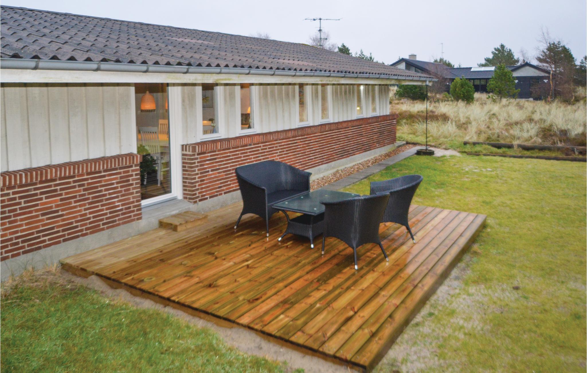 Hyggeligt feriehus i Blåvand med stor naturgrund, brændeovn og solgård, ideelt til afslapning og aktiviteter året rundt.