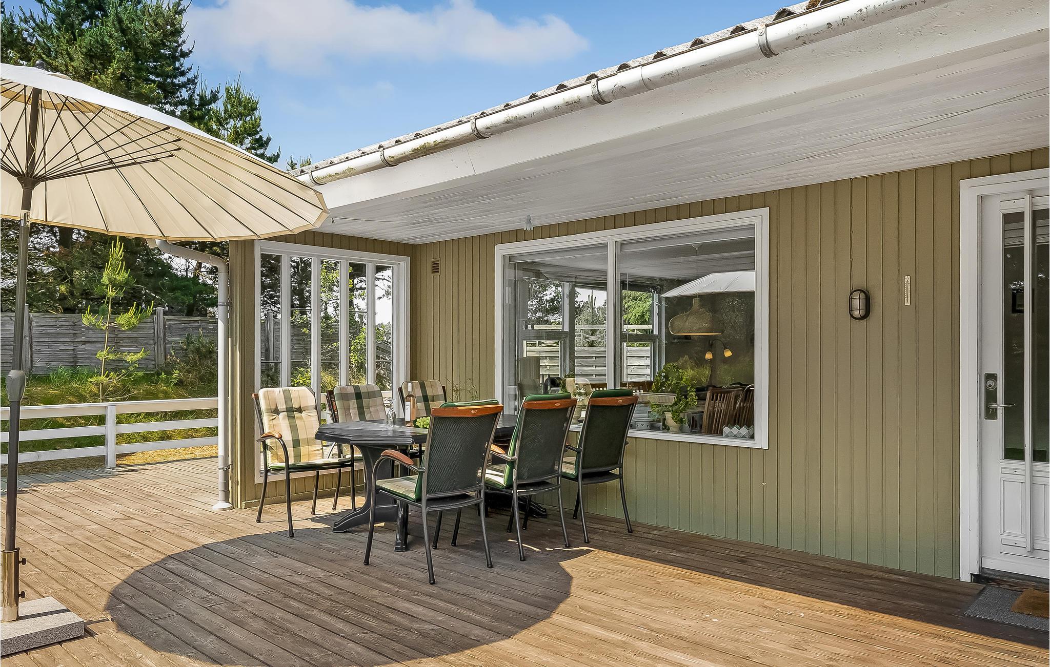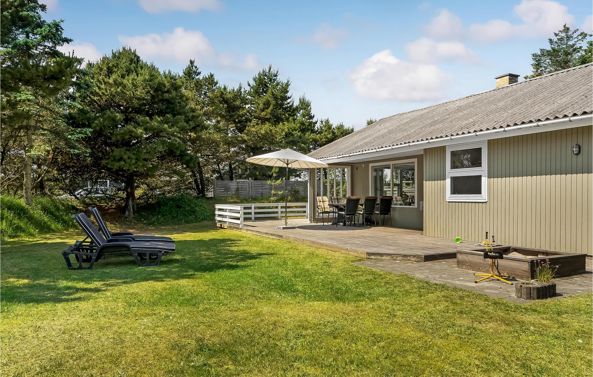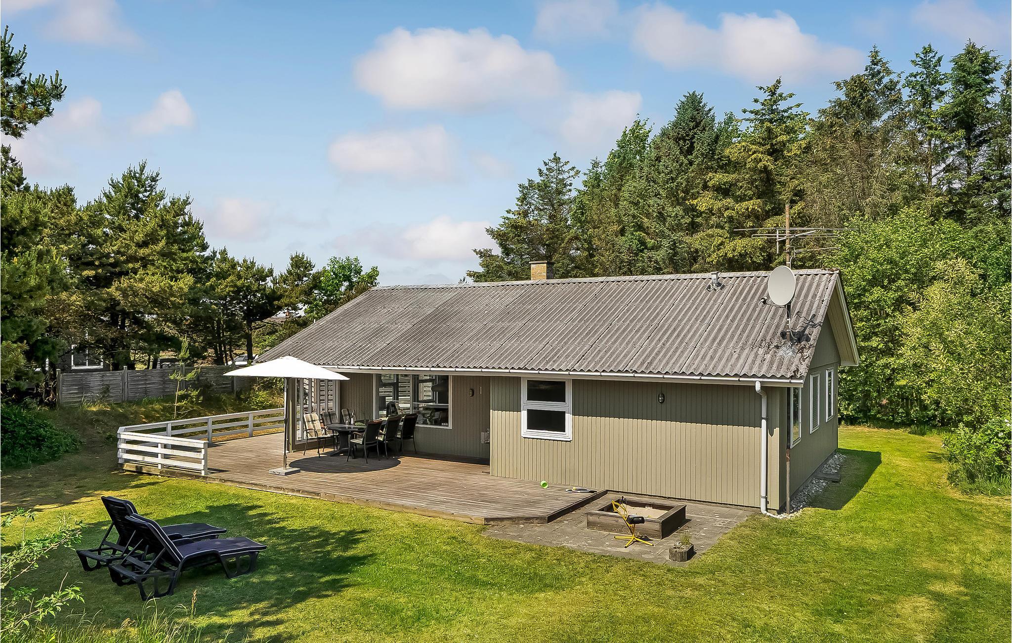 Kun få minutters gang fra Blåvand centrum ligger dette hyggelige sandfarvede træhus på en stor delvist lukket naturgrund. Her er alt, hvad I behøver til en ubekymret ferie med kvalitetstid og uforglemmelige timer i det fri. I stuen er der flere store vinduespartier, som lader dagslyset strømme ind. Bag en kage sammen med børnene i det turkise køkken, som I kan nyde til aften- eller eftermiddagskaffen ved spisebordet eller i sofakrogen, mens I spiller familiens favoritbrætspil eller quizzer. Udenfor er der en stor dejlig træterrasse, som indbyder til skønne grillaftener og hyggestunder i løbet af dagen. En del af terrassen er overdækket, så her vil I altid kunne finde læ. Har I brug for lidt skygge på den åbne terrasse, kan I blot rulle markisen ud. Haven er et sandt legeparadis for alle barnlige sjæle og bliver uden tvivl et hit! Området er perfekt til lange gå- og cykelture i den smukke natur.