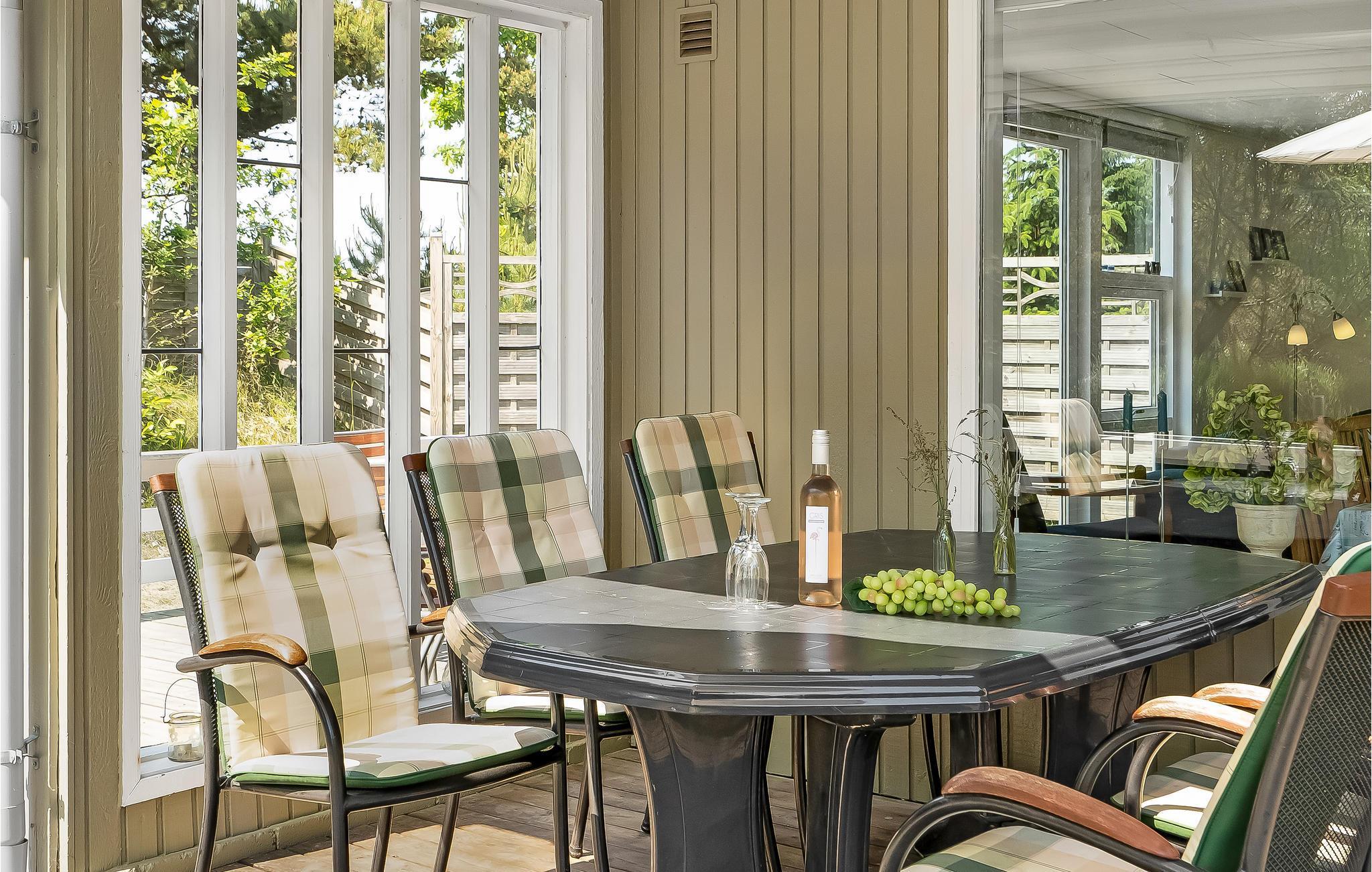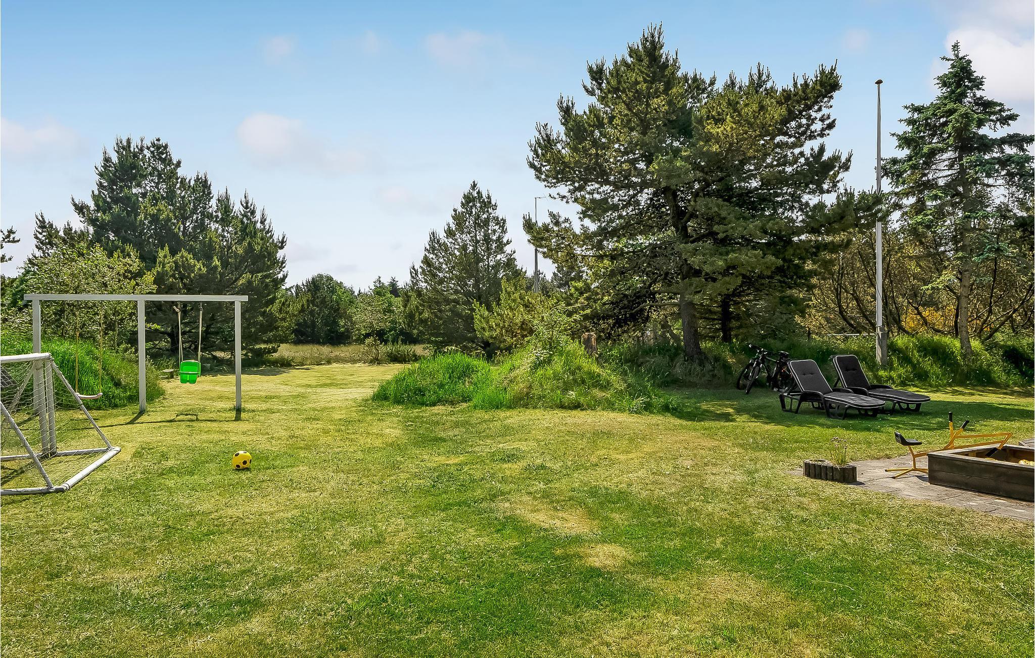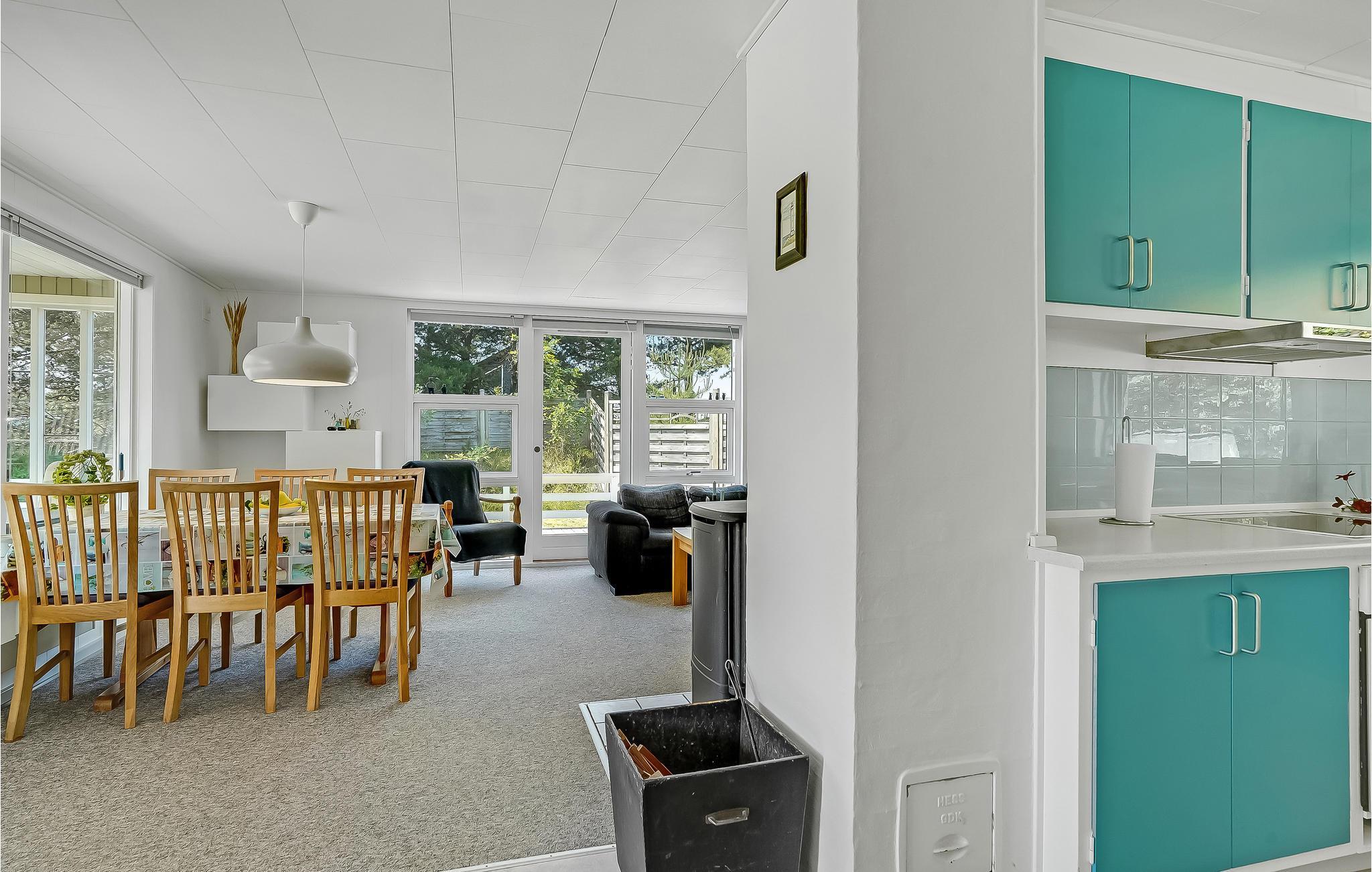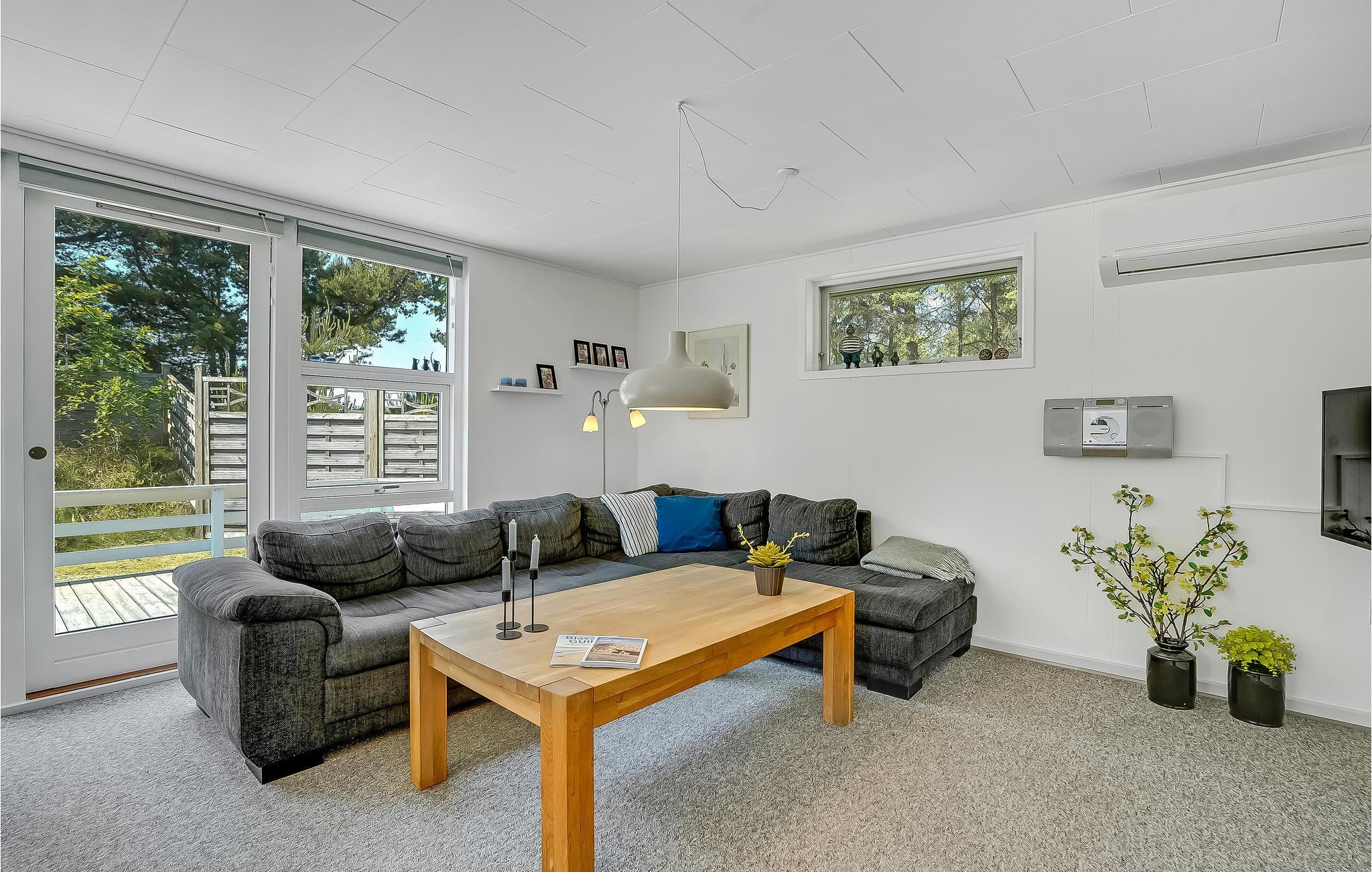 Kun få minutters gang fra Blåvand centrum ligger dette hyggelige sandfarvede træhus på en stor delvist lukket naturgrund. Her er alt, hvad I behøver til en ubekymret ferie med kvalitetstid og uforglemmelige timer i det fri. I stuen er der flere store vinduespartier, som lader dagslyset strømme ind. Bag en kage sammen med børnene i det turkise køkken, som I kan nyde til aften- eller eftermiddagskaffen ved spisebordet eller i sofakrogen, mens I spiller familiens favoritbrætspil eller quizzer. Udenfor er der en stor dejlig træterrasse, som indbyder til skønne grillaftener og hyggestunder i løbet af dagen. En del af terrassen er overdækket, så her vil I altid kunne finde læ. Har I brug for lidt skygge på den åbne terrasse, kan I blot rulle markisen ud. Haven er et sandt legeparadis for alle barnlige sjæle og bliver uden tvivl et hit! Området er perfekt til lange gå- og cykelture i den smukke natur.