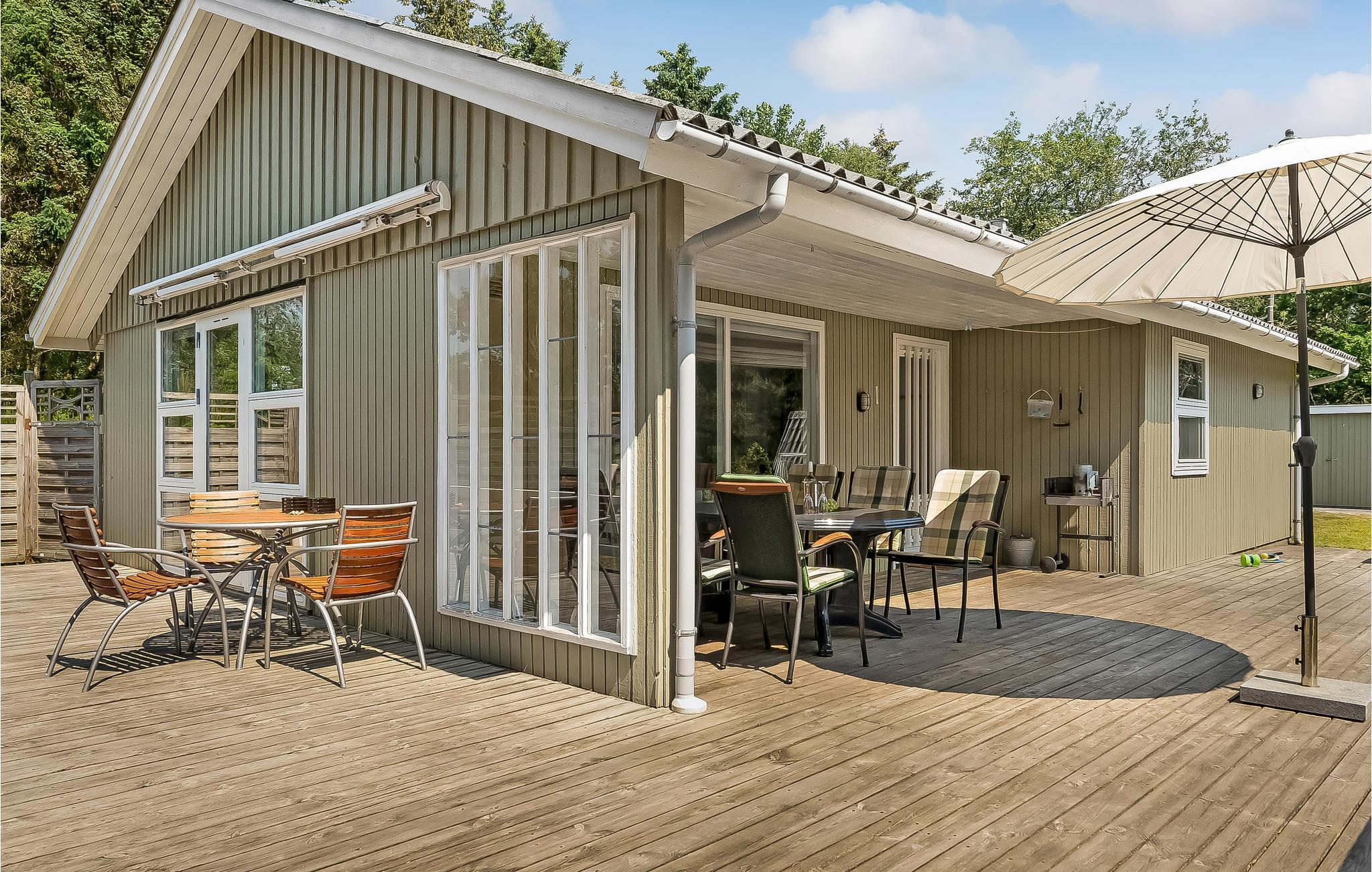 Kom ned i gear i dette indbydende feriehus i grønne omgivelser.