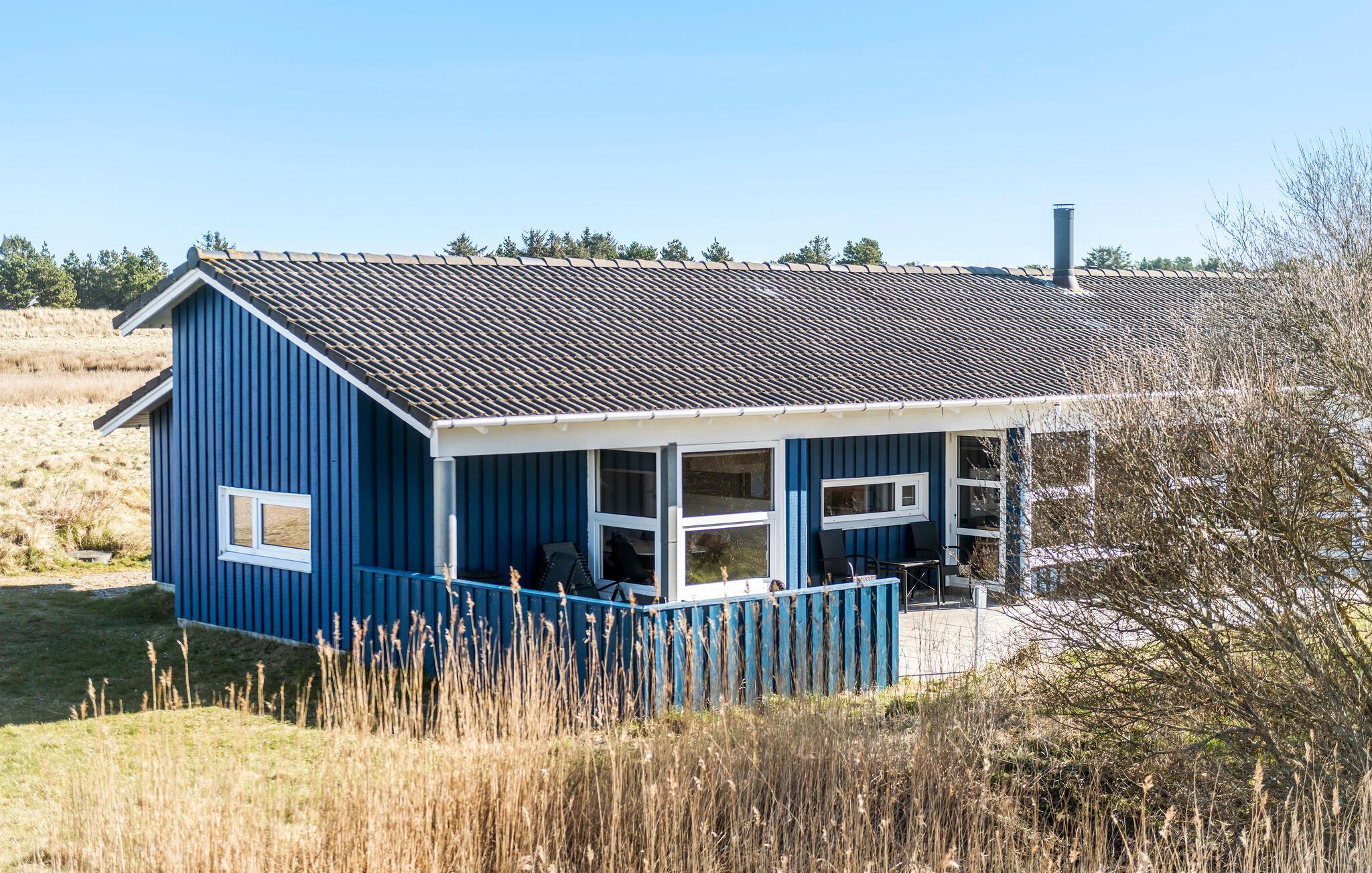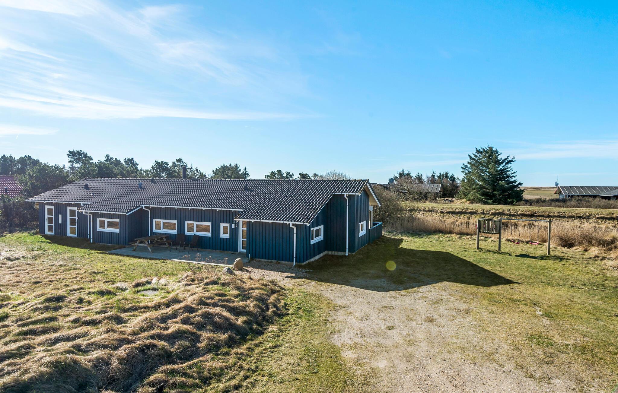 Feriehus med plads til flere familier - perfekt til børnefamilier, med de mange muligheder for at dyrke indendørs aktiviteter med dejlige svømmeture i den store svimmingpool med rutsjebane, leg i børnepoolen og afslapningsstunder i det store spabad. Med køkkenet i midten af huset og henholdsvis stue og spisestue på hver side, giver det også god funktionalitet, når I er mange sammen. Alle soveværelser er indrettede med gode senge med boxmadrasser. Ved huset er der en helt lukket terrasse, hvilket er velegnet hvis I har mindre børn eller en hund med. Huset ligger i et naturskønt område, og fra diget foran huset er en skøn udsigt over naturen ned mod Vesterhavet. Det store fredede område mellem Blåvand og Ho ligger også tæt på huset.