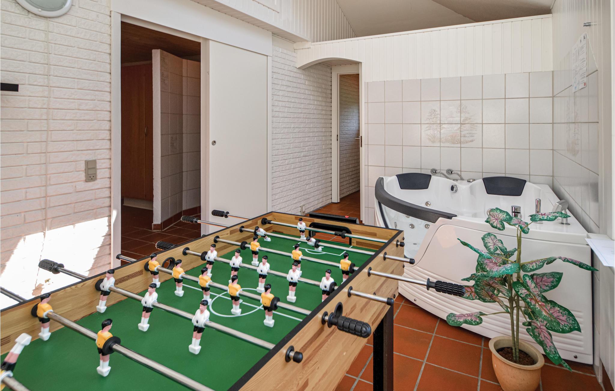 Fra dette feriehus af sten, der ligger centralt i Blåvand er der hverken langt til byen eller den attraktive hvide sandstrand ud til det salte Vesterhav. I huset behøver I ikke kede jer, der her er både poolbord og bordfodbold. Nyd det udendørs ferieliv på husets delvist lukkede terrasse, mens børnene leger og spiller bold på grunden. Blåvand er kendt for en bred vifte af sommerunderholdning, mange cafeer og restauranter og mulighed for at gøre et godt køb, i en af de mange butikker. Ved Blåvandshuk kan I nyde synet af nogle af de smukkeste solnedgange i hele Danmark, når det er fuldmåne, kan I opleve at månen skinner stærkere her i Jyllands vestligste hjørne.