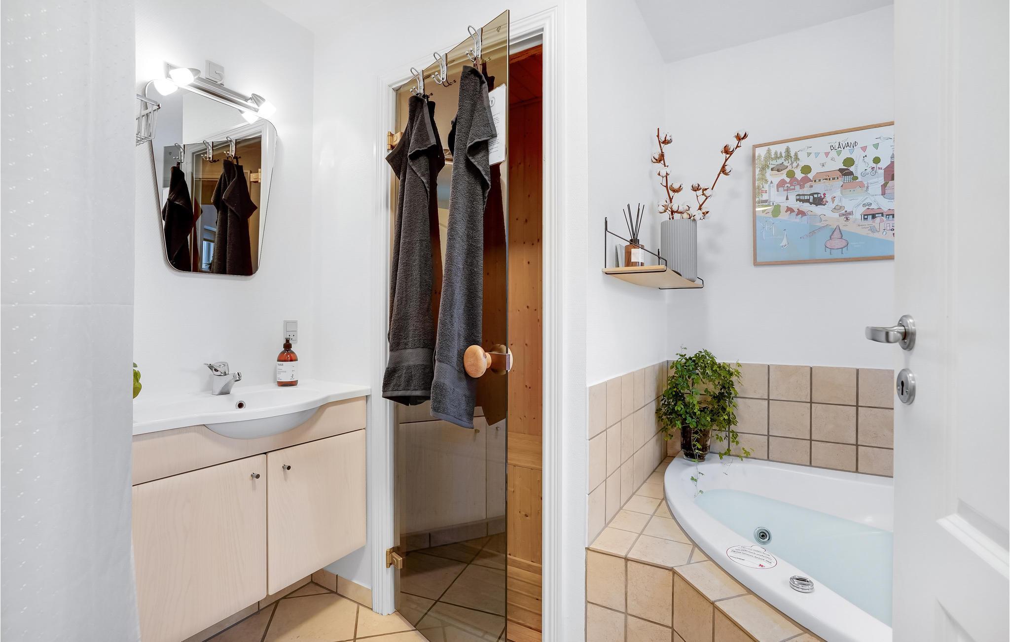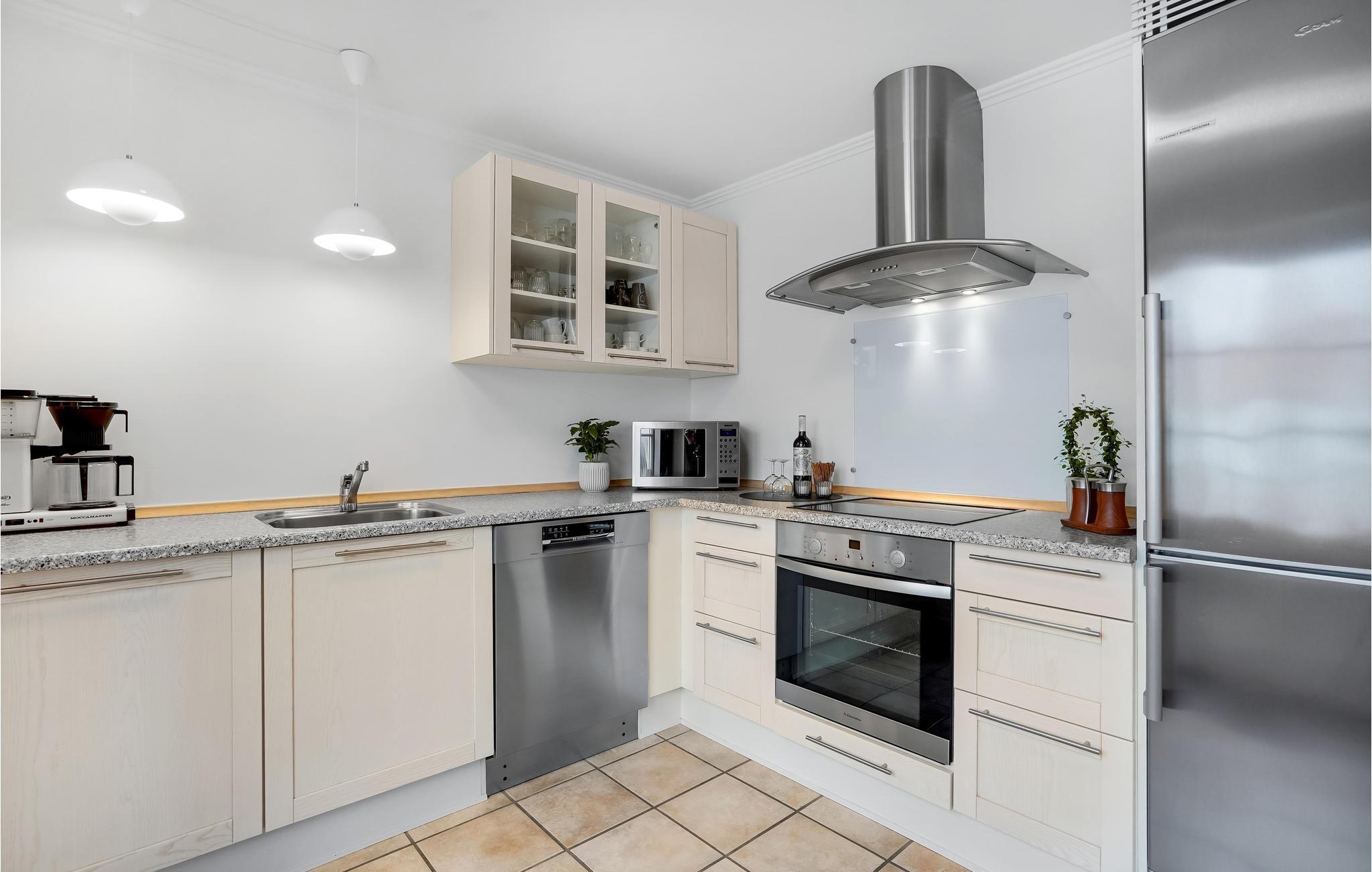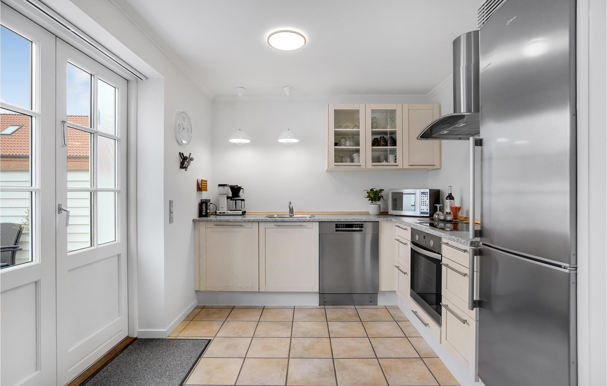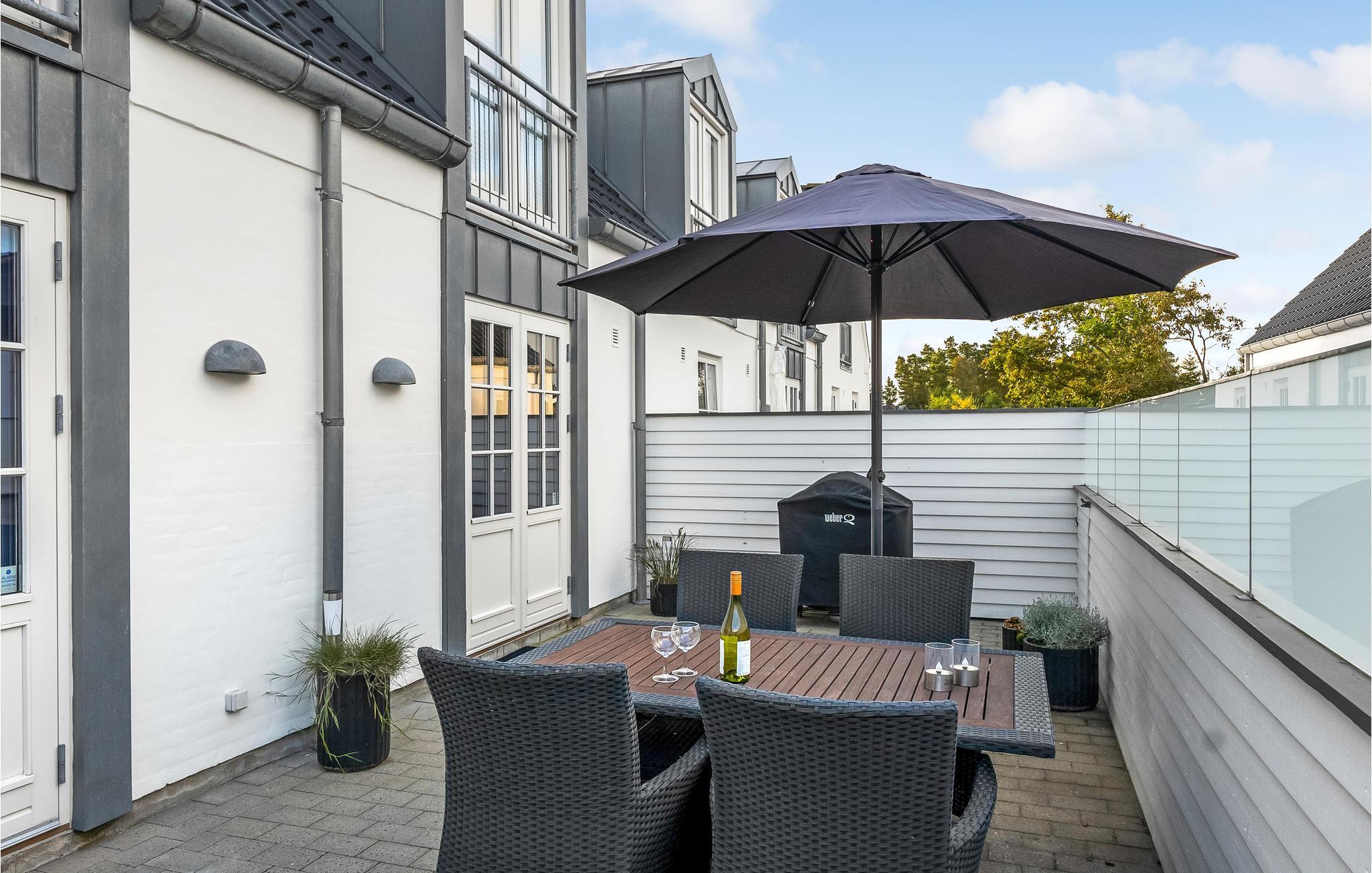 Centralt beliggende ferielejlighed, hvor I har optimale muligheder for at benytte jer af byens hyggelige butiks- og cafémiljø. De 85 m² fordeler sig på to plan. Der er gulvvarme i hele stueplan, hvor det sociale liv foregår i køkken/alrummet. Her er der et praktisk hjørnekøkken, hvor husets kok både kan passe madlavningen og deltage i samtalen ved spisebordet. Fra alrummet er der adgang til et soveværelse. Derudover rummer stueplan en entré samt et lækkert badeværelse med spabad og sauna. På første sal er der loft til kip og fritlagte hanebånd, som skaber en luftig og charmerende atmosfære. Etagen rummer en stue med lyse gulve samt to franske altaner. Derudover er der et soveværelse, hvor hele den ene væg består af et stort klædeskab med skydedøre. Fra køkken/alrummet er der udgang til en lækker stor, lukket og vestvendt terrasse, der er det ideelle sted at nyde sommerfrokoster og hyggelige grillaftener i solens varme skær. Foran huset er der parkeringsplads samt en lille terrasse med morgensol.