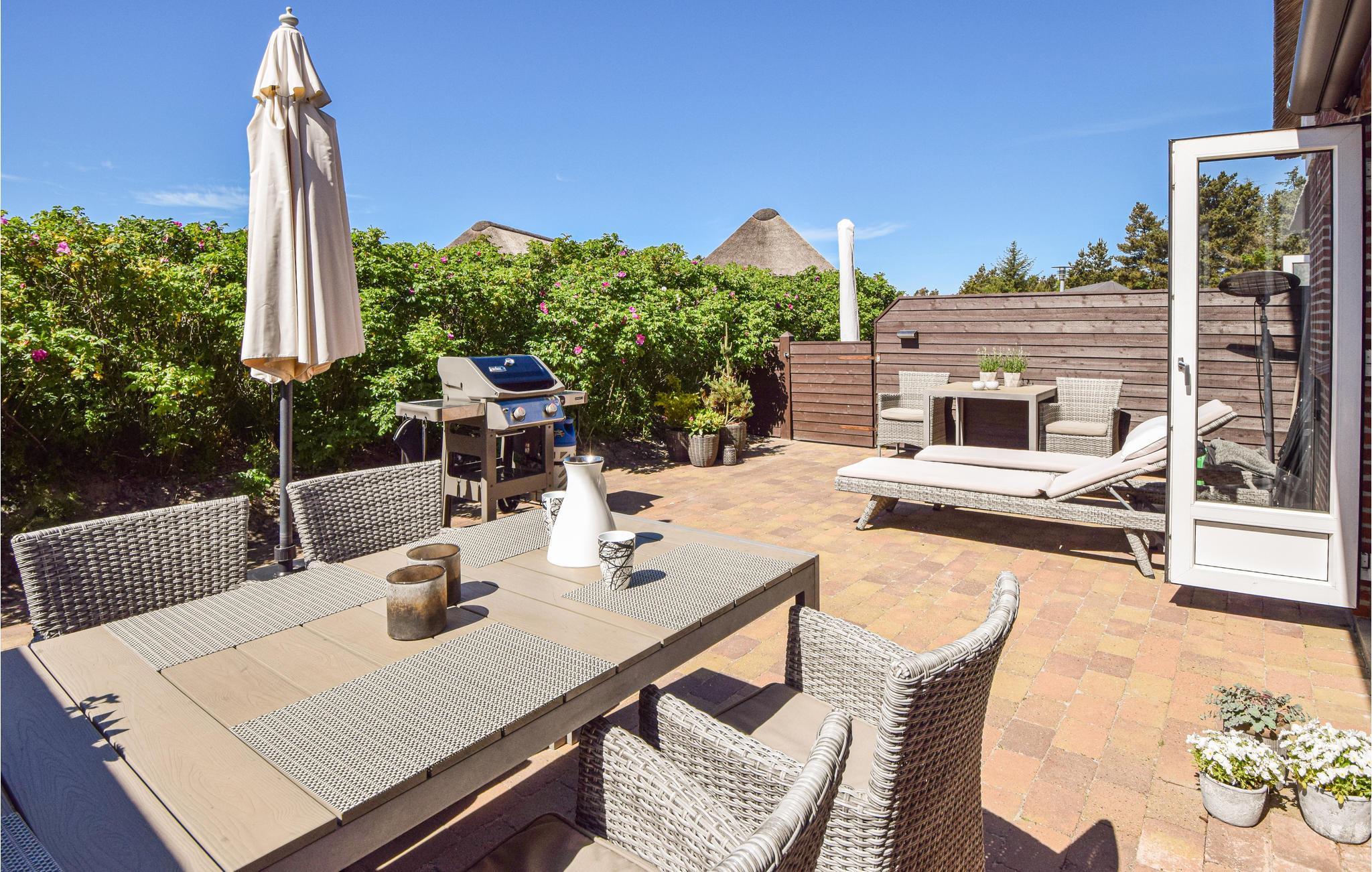 Dejlig feriehus (rækkehus) beliggende tæt på Blåvand by og den fantastiske badestrand. Huset er særdeles velholdt og stort set al indvendig inventar er udskiftet. Al service er af høj standard, og huset emmer i det hele taget af kvalitet. På den hyggelige terrasse med flotte havemøbler og dejlige solsenge er der sol fra tidlig formiddag til solnedgang. Der forefindes endvidere en stor Weber grill samt parasol. Skulle vejret drille en enkelt dag, er der gratis wifi samt mulighed for at se tv med mange kanaler enten i stuen eller i soveværelset.