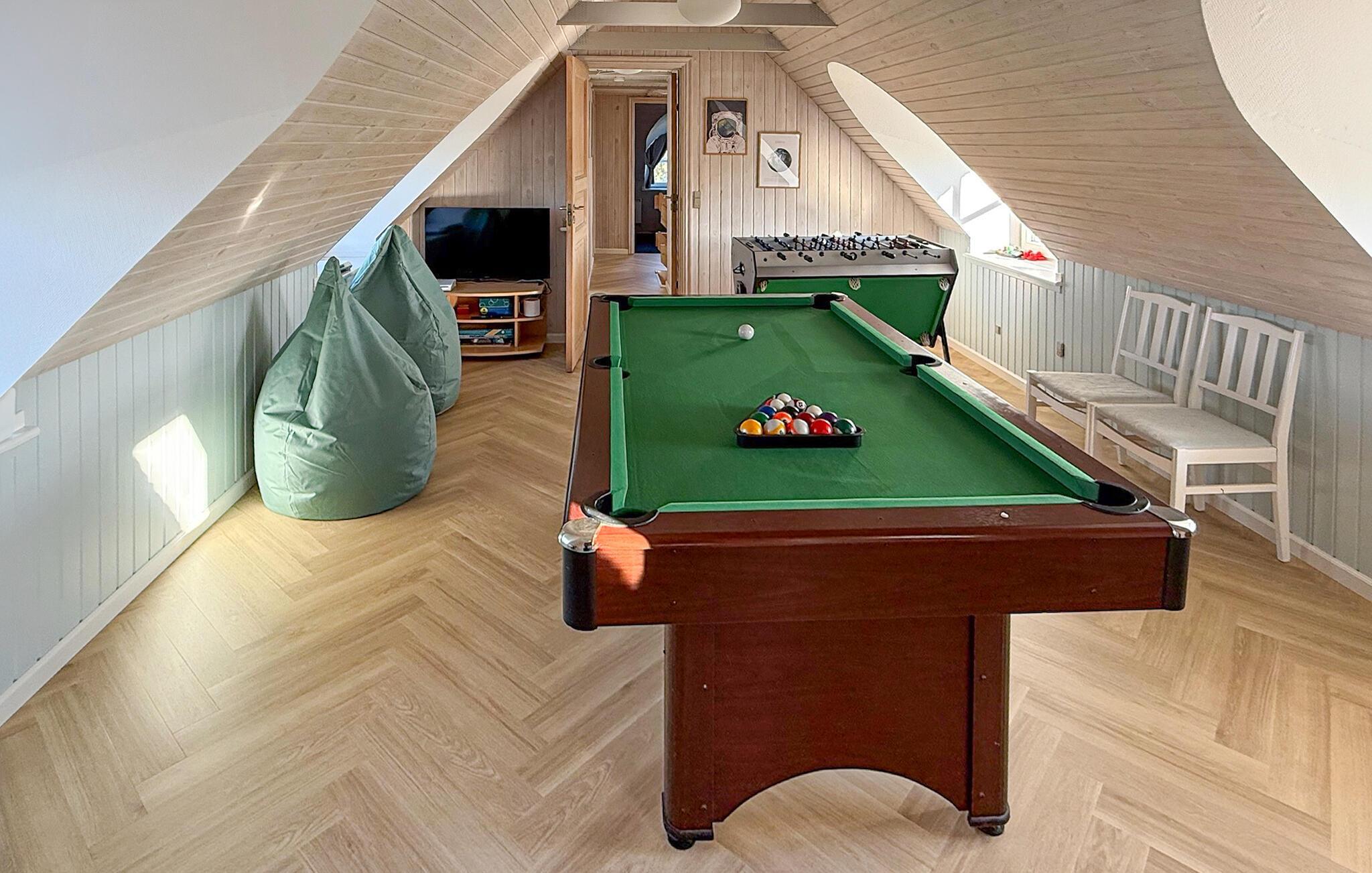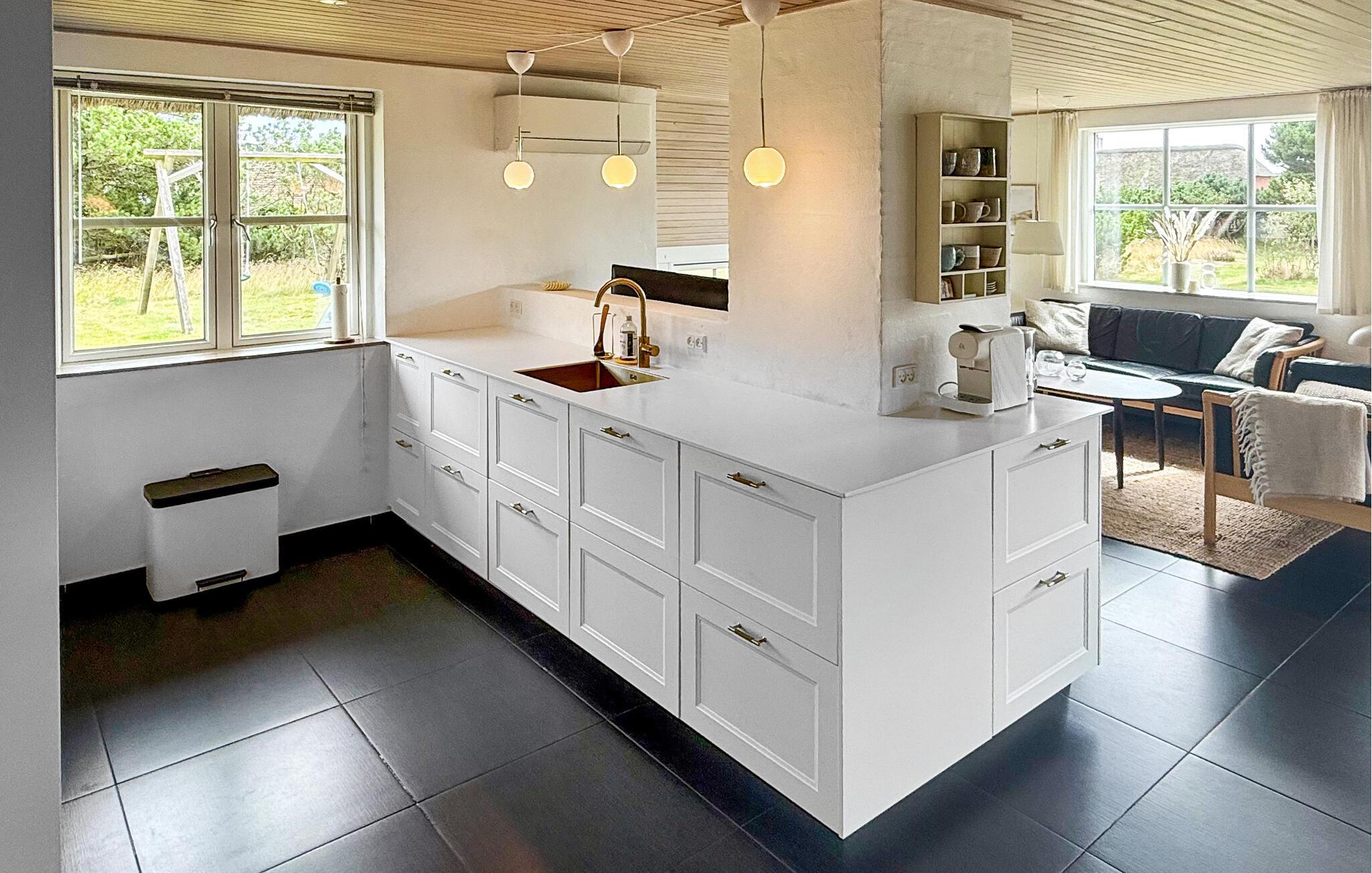 Dette godt placerede og skønne, stråtækte feriehus ligger så I kan se det brusende Vesterhav, især fra 1. salen er der en skøn udsigt. Huset indeholder alt hvad der er med til at gøre ferien både afslappende og hyggelig; en dejlig swimmingpool, en stor 6 personers spa, hvor I kan få musklerne masseret samt en infrarød sauna og på 1. sal er der indrettet et aktivitetsrum, så her kan I også bruge masser af tid. Skal I på gåtur i området, er det værd at besøge Blåvand Fyrtårn og nyde udsigten over landskabet og havet helt ud til Horns Revs vindmøllepark eller evt. gå en tur ind til Blåvand by. Her er der utallige specialforretninger, flere supermarkeder, restauranter og cafeer, samt forskellige former for underholdning i sommerhalvåret.