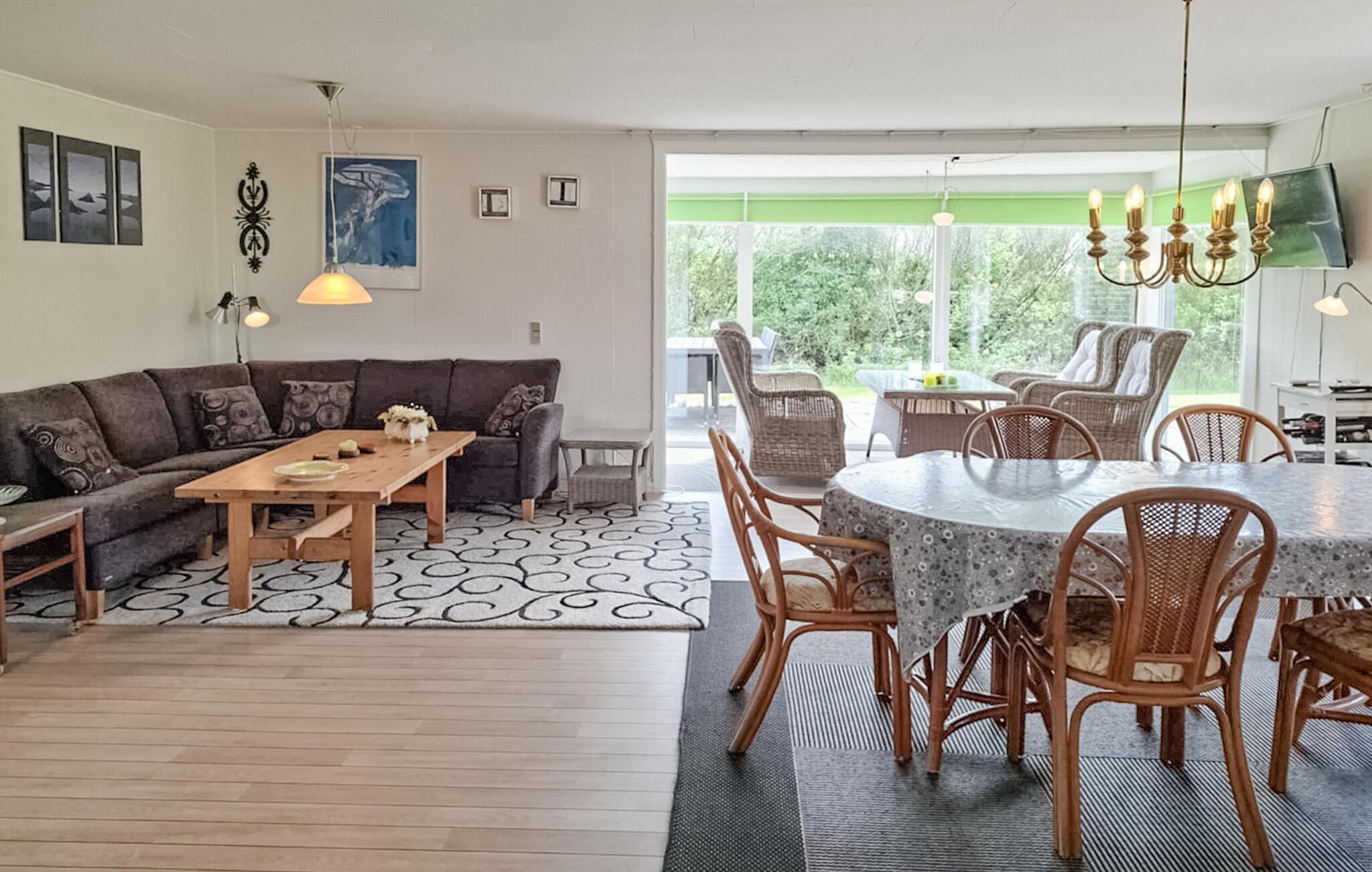 Huset er lyst, rummeligt og nydeligt indrettet. I kan se særligt frem til den store have med gynger samt terrassen, hvor I kan sole jer, nyde feriens måltider og grille. Om aftenen kan I flade ud foran fladskærms-TV'et i stuen.