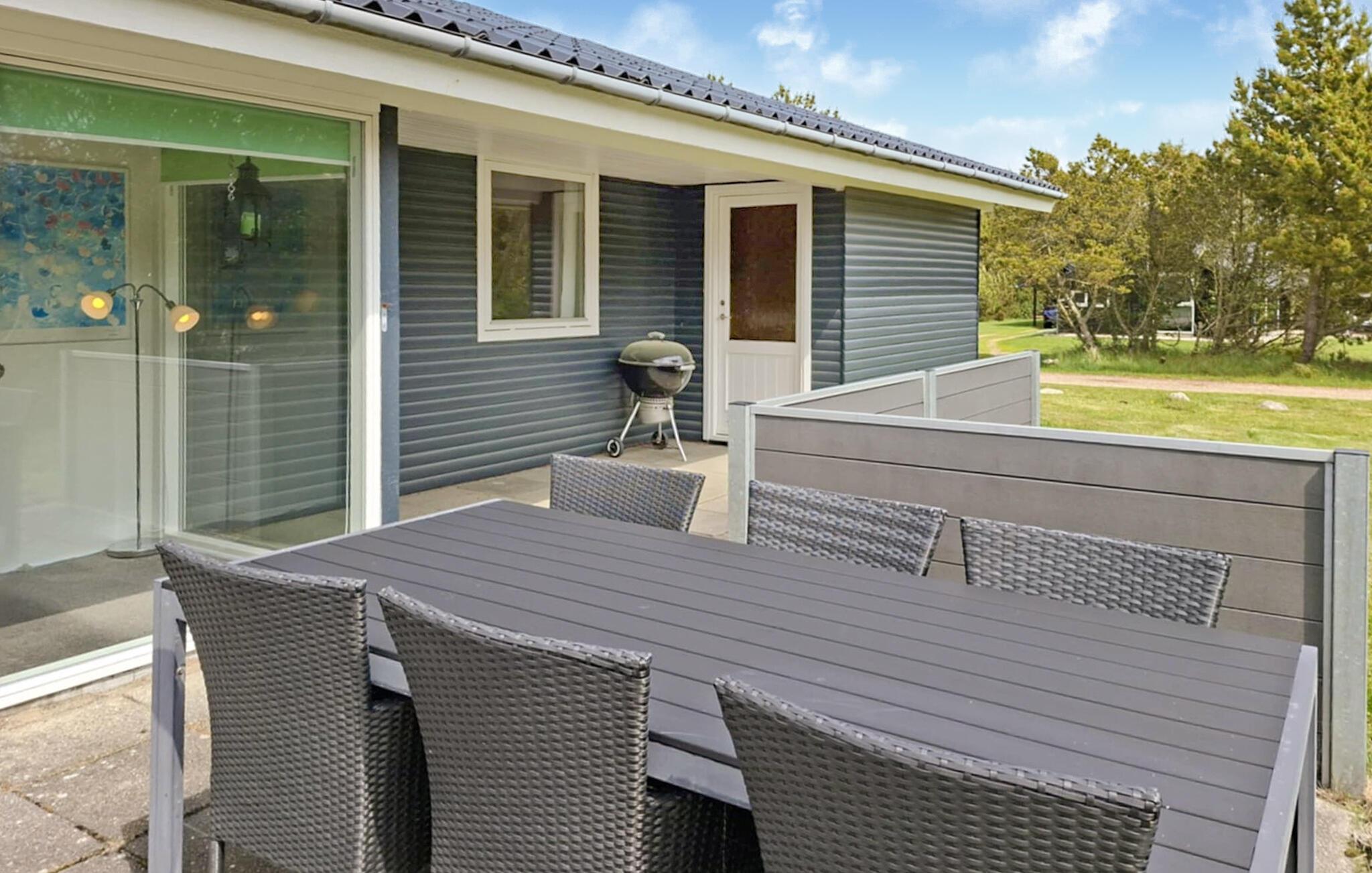 Hyggeligt sommerhus i Blåvand med stor have, terrasse og nærhed til Vesterhavets børnevenlige strand.