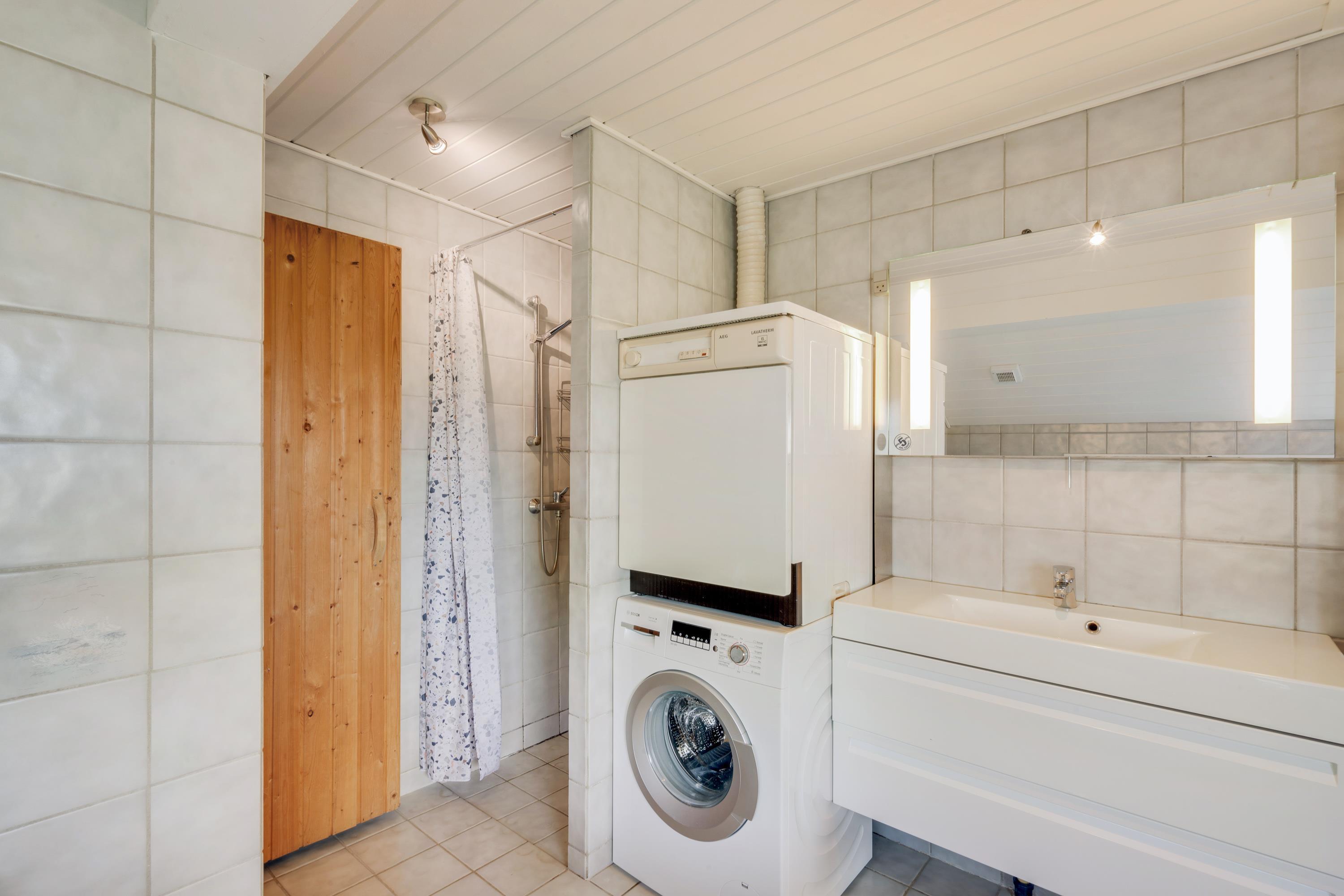 De helt store højdepunkter i sommerhuset på Sydslugen 28 er uden tvivl at finde på badeværelset. Her er spabadet og saunaen klar til at forkæle jer med masser af afslapning, så I kan komme helt ned i gear langt væk fra hverdagens stress og jag.