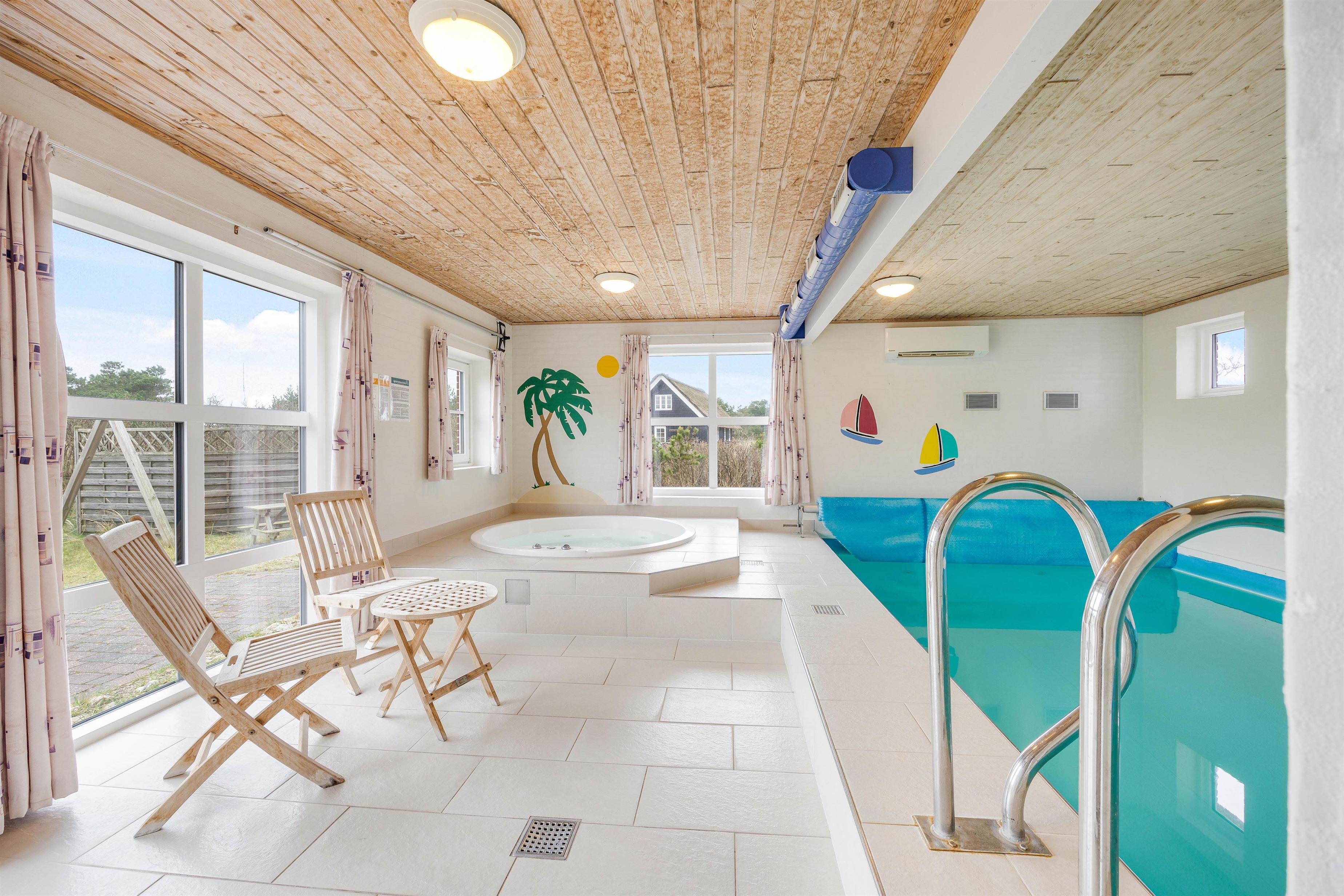 For de vand glade byder pool rummet på en dejlig pool, hvor familiens vandhunde kan boltre sig i timevis. Er man mere til afslapning, kan en tur i spabadet klart anbefales. Sæt jer til rette i det varme vand og mærk hverdagens stress og jag blive skyllet bort.