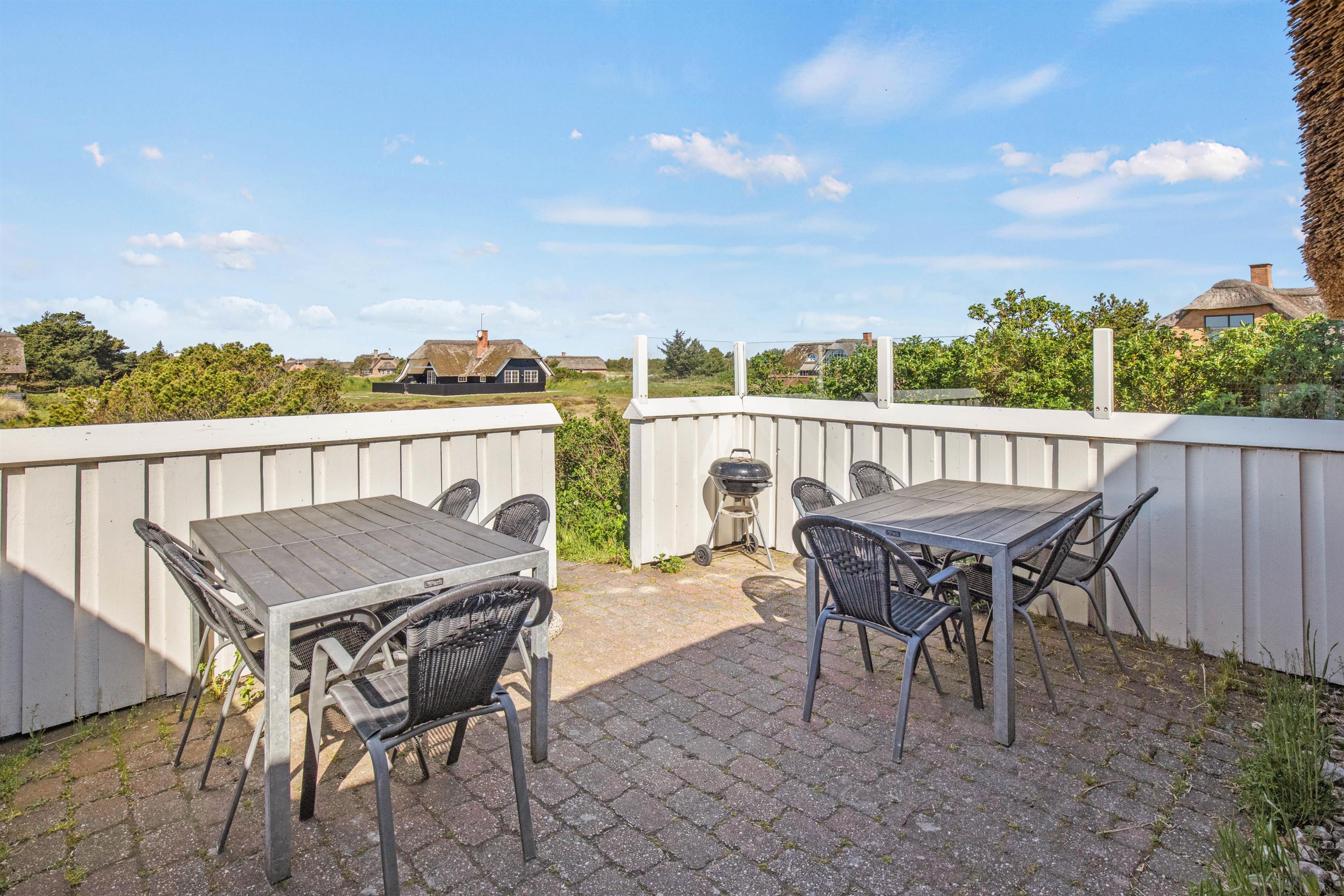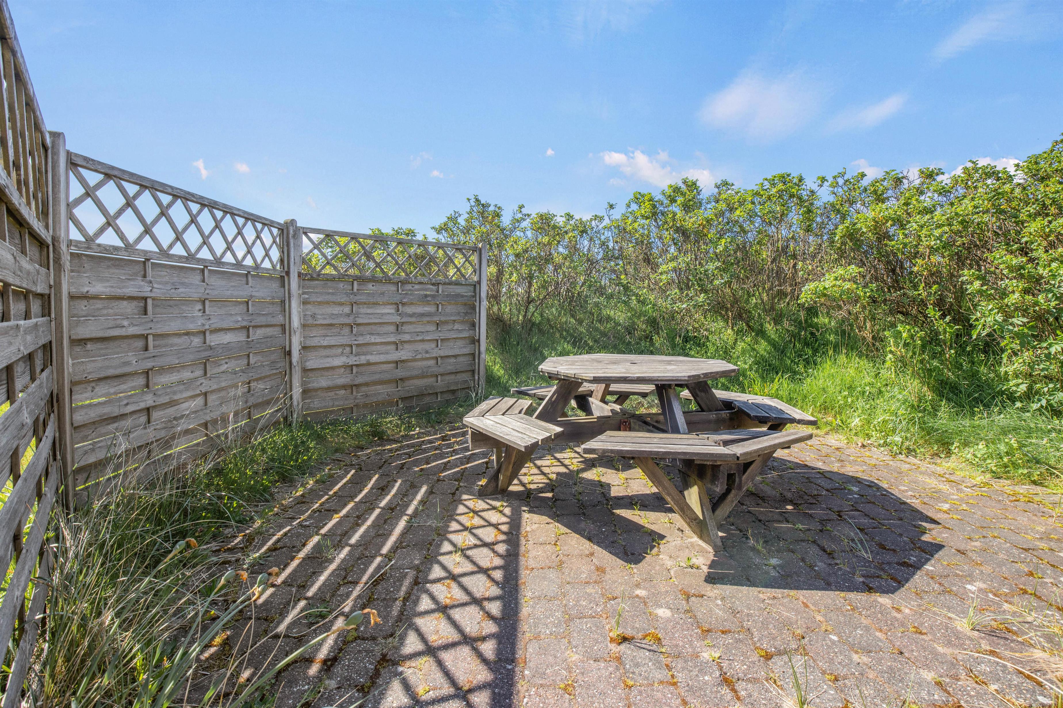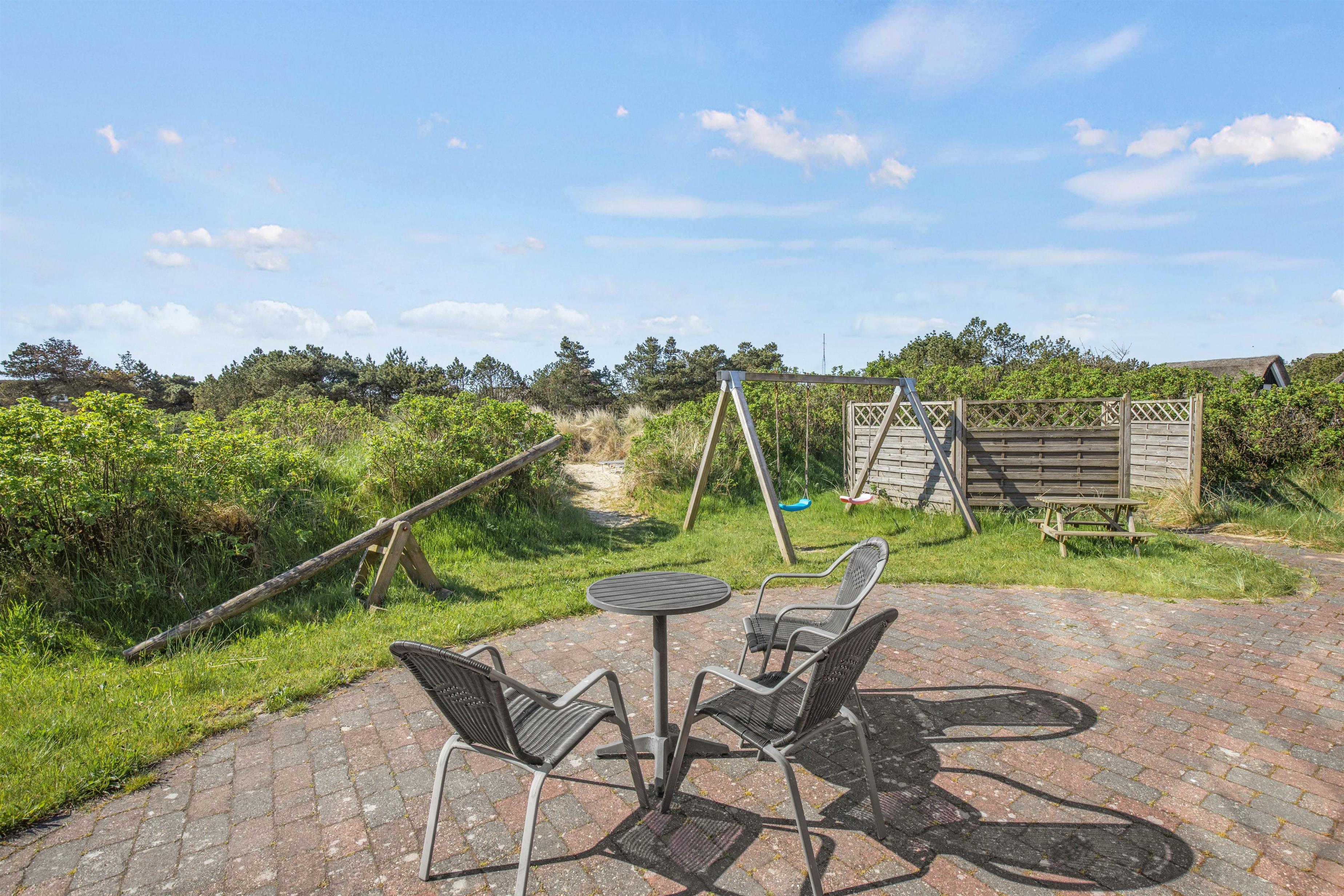 Omkring feriehuset på Ingridsvej 11, er der flere gode steder hvorfra I kan nyde sommersolen i komfortable havemøbler eller solvogne, hvor I kan læne jer tilbage og tage sol eller læse en god bog. Når dagen går på hæld, kan I tænde op i grillen og nyde aftensmaden i det fri.