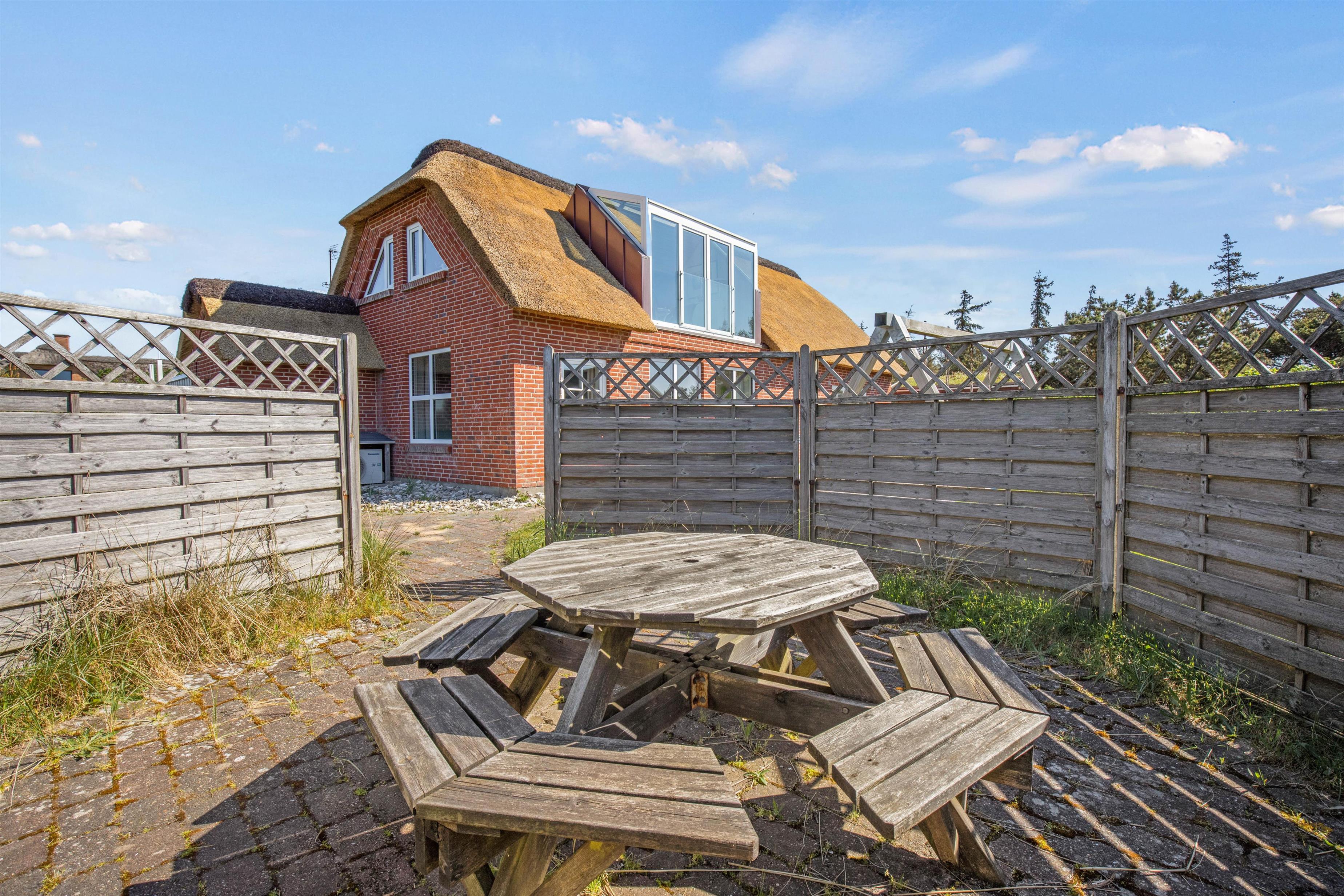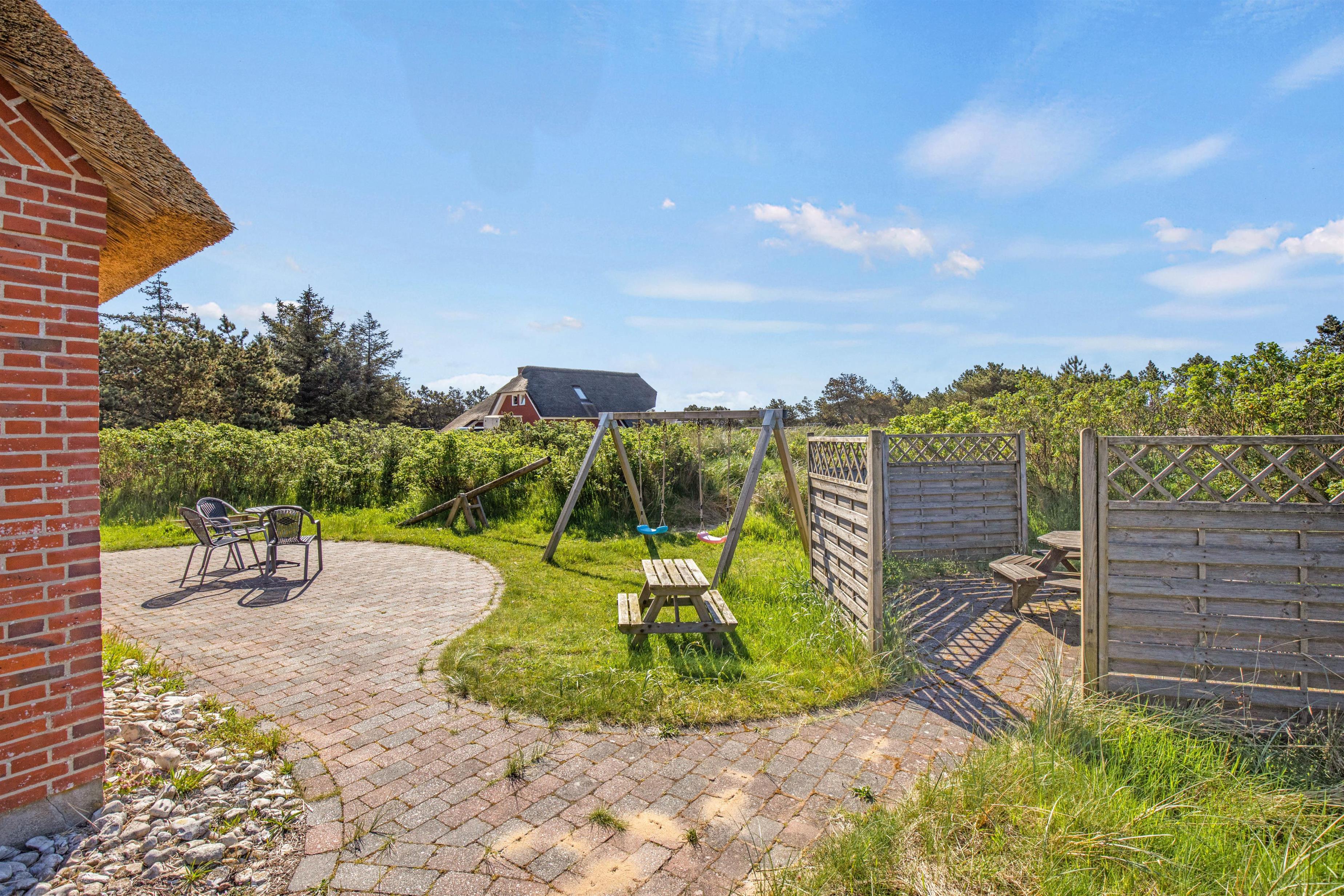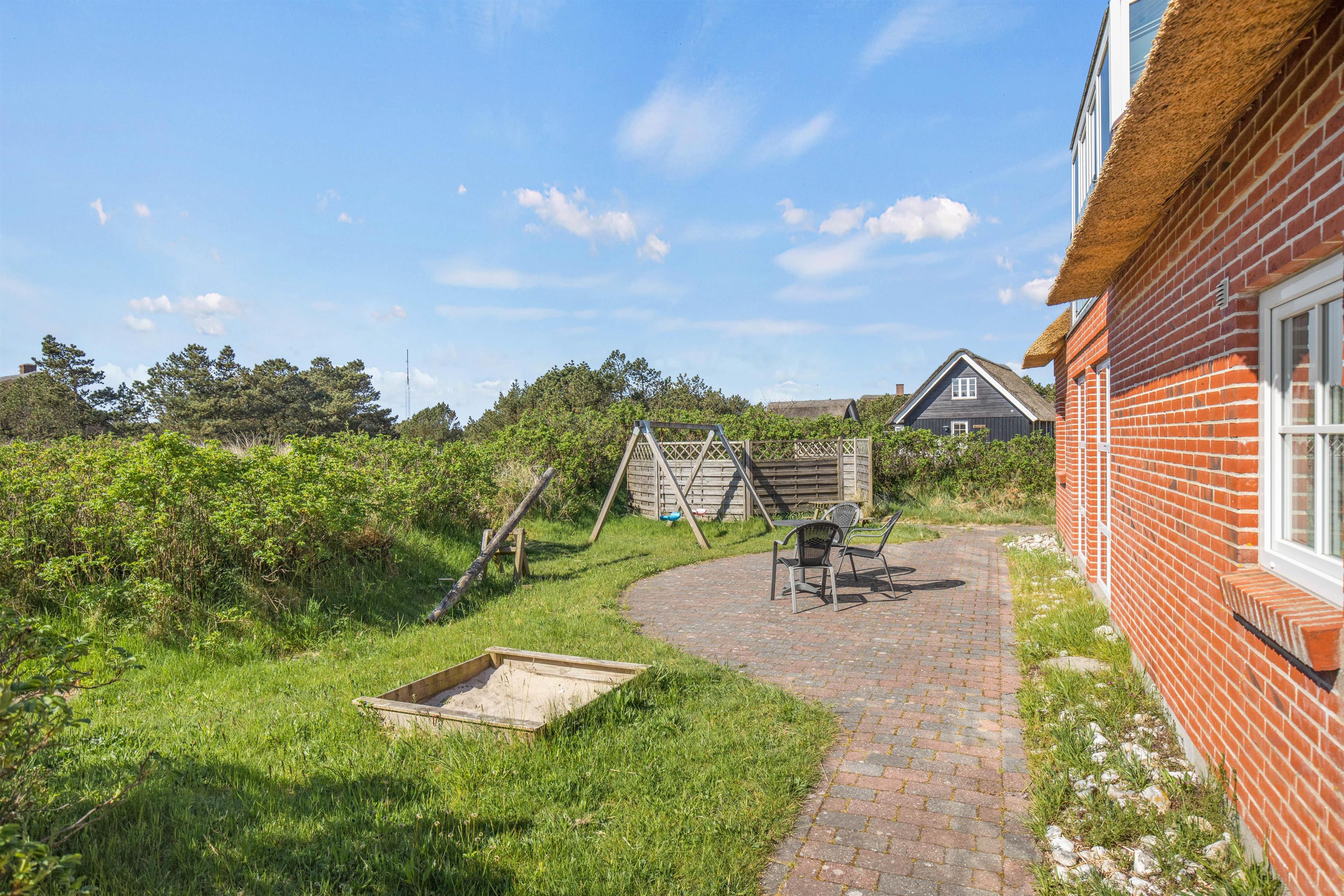 Omkring feriehuset på Ingridsvej 11, er der flere gode steder hvorfra I kan nyde sommersolen i komfortable havemøbler eller solvogne, hvor I kan læne jer tilbage og tage sol eller læse en god bog. Når dagen går på hæld, kan I tænde op i grillen og nyde aftensmaden i det fri.