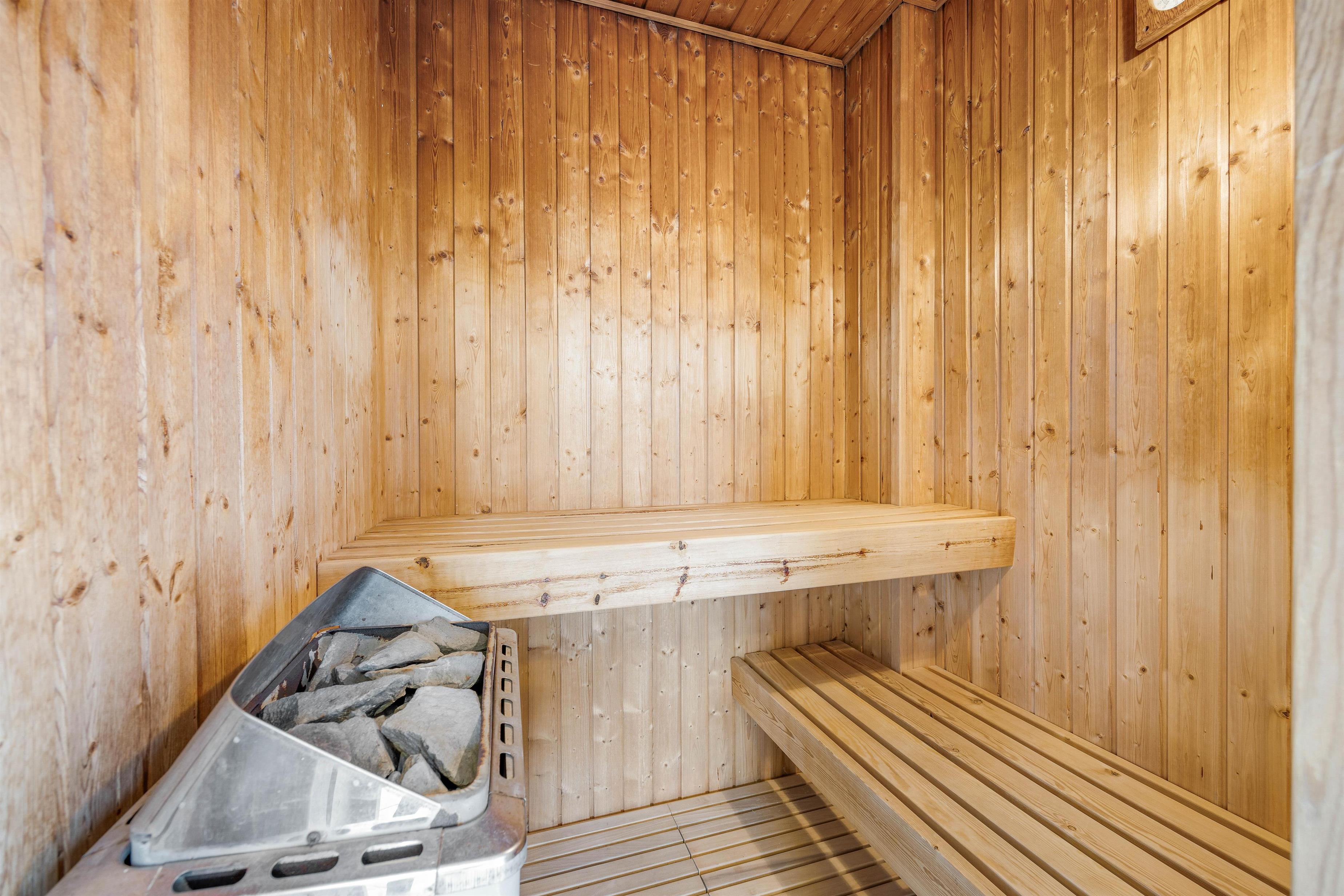 Efter en dag med mange aktiviteter i de fri, kan I sætte jer til rette i saunaen, og få varmet musklerne godt igennem. Det er ren velvære for krop og sjæl.