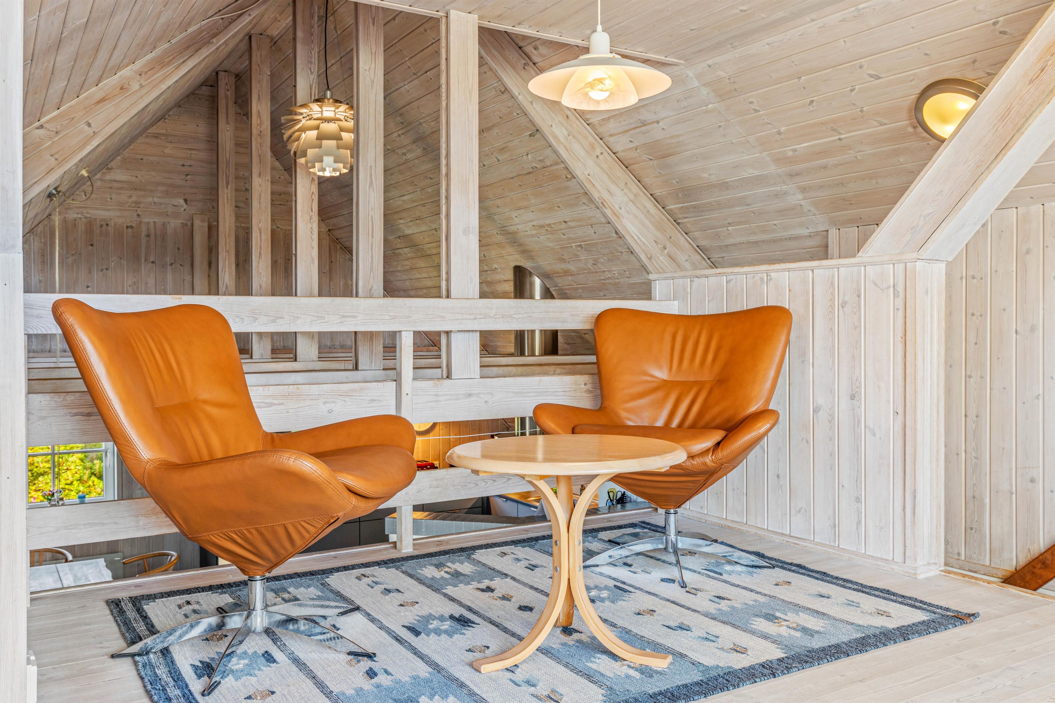 Opholdsstuen befinder sig på første sal, med åbent kig ned til alrummet. Her har I et storslået lysindfald fra det store vinduesparti, og de mange siddepladser giver jer mulighed for at samles her til hyggeligt samvær.
