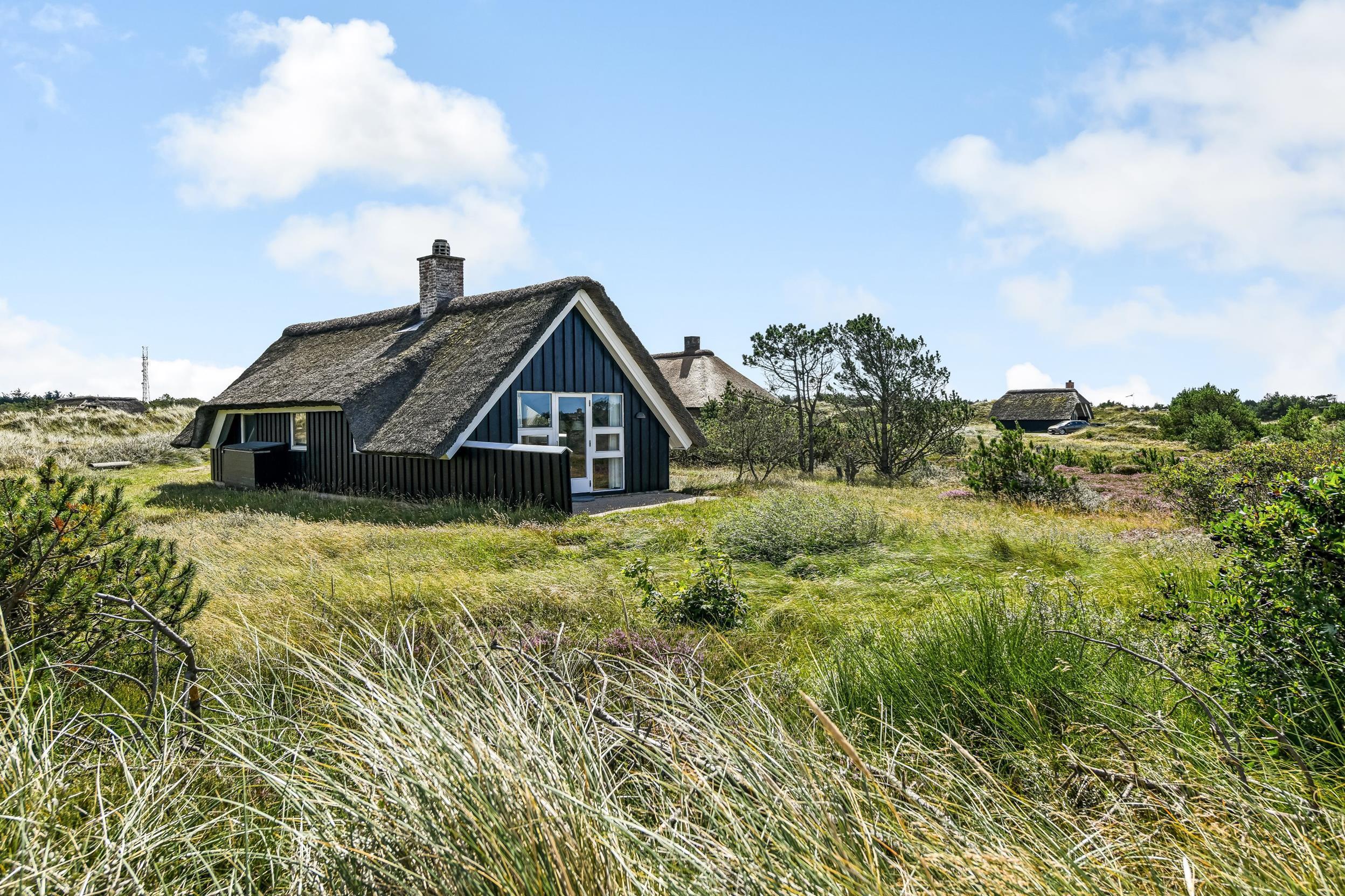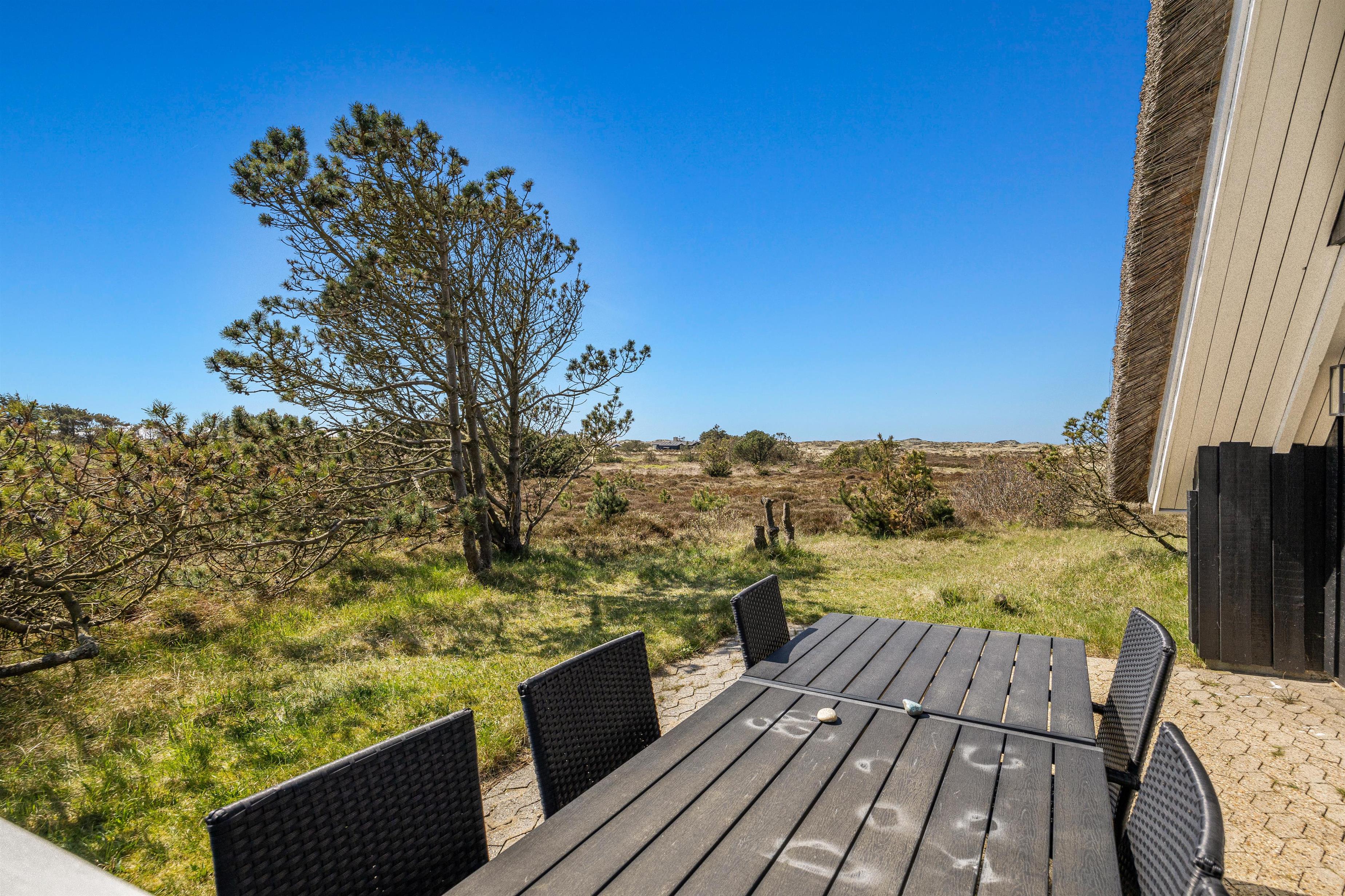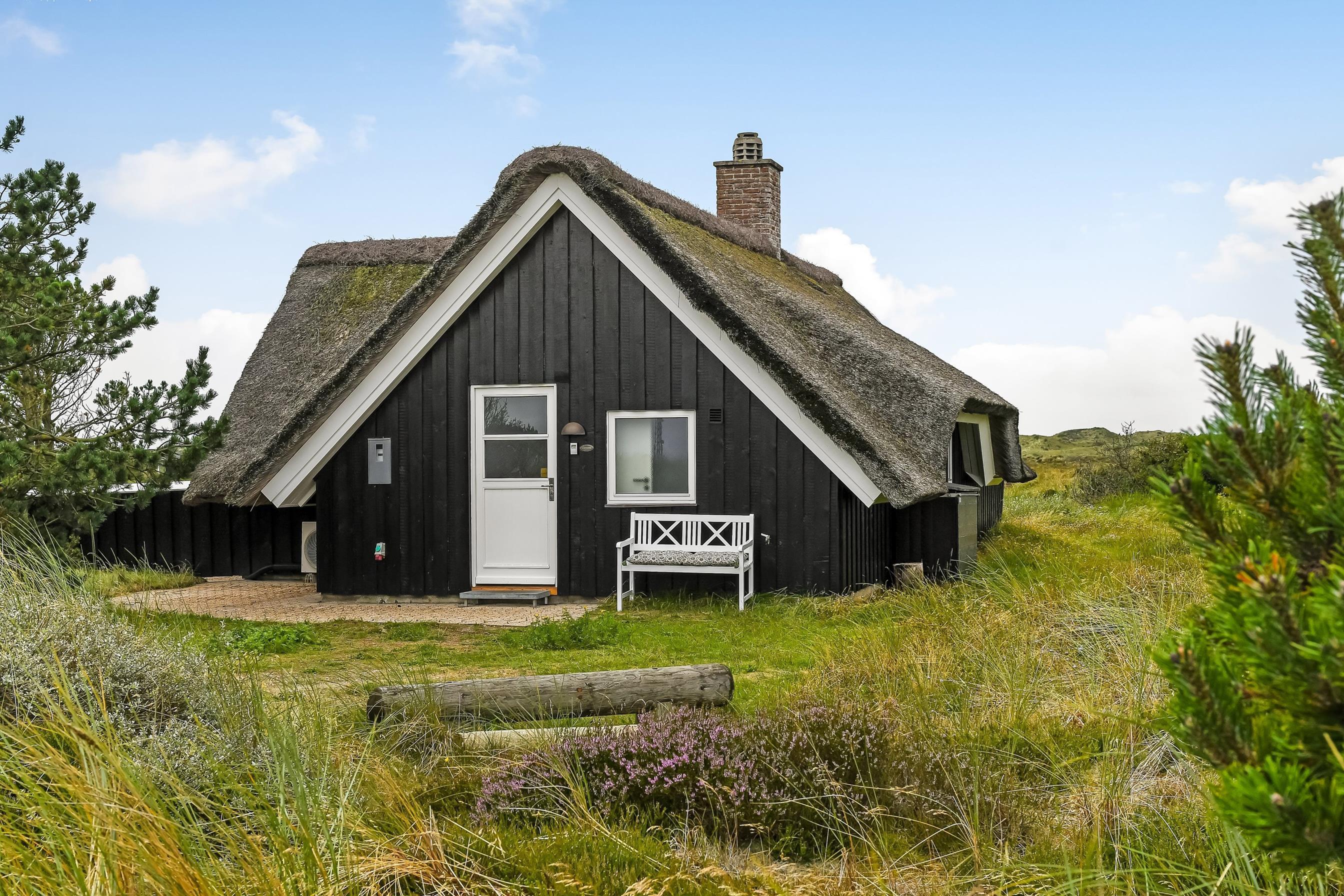 Kan du fornemme duften af blomstrende lyng, blåbærbuske, fyrretræer og frisk havluft? Det er netop denne duft, der møder jer ved sommerhuset her i Blåvand. Sommerhuset ligger lige op ad naturområdet Kallesmærsk Hede og nær klitlandskabet, der strækker sig helt ud til det brusende Vesterhav. Til stranden er der 1,6 kilometer, som til fods ad de små stier giver en god gåtur i det naturskønne område. Jeres hunde vil helt sikkert elske at komme med på turen.