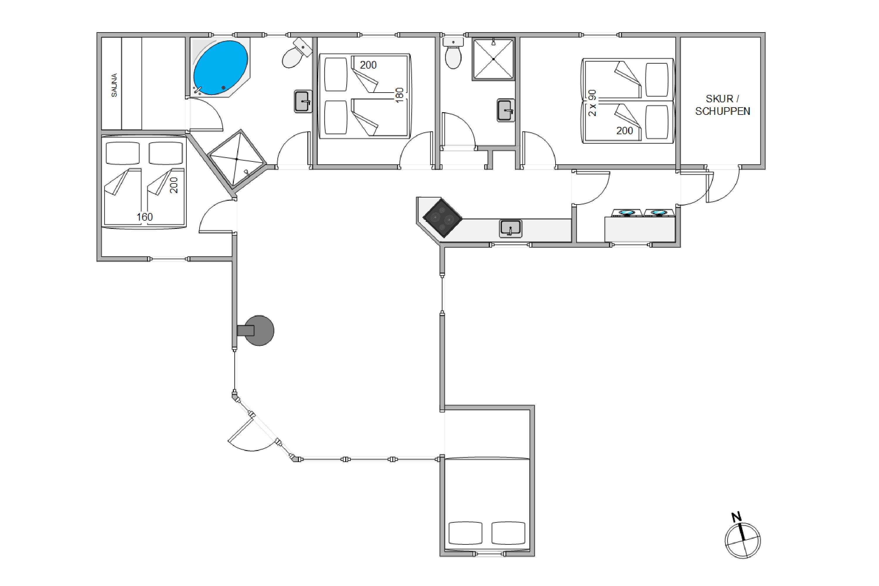 Dette feriehus er indrettet med 3 gode soveværelser, hvor I kan få jeres skønhedssøvn i løbet af ferien. Alle 3 soveværelser er indrettet med en dobbeltseng hver. Med hele 2 badeværelser i feriehuset slipper I desuden for kø fra morgenstunden.