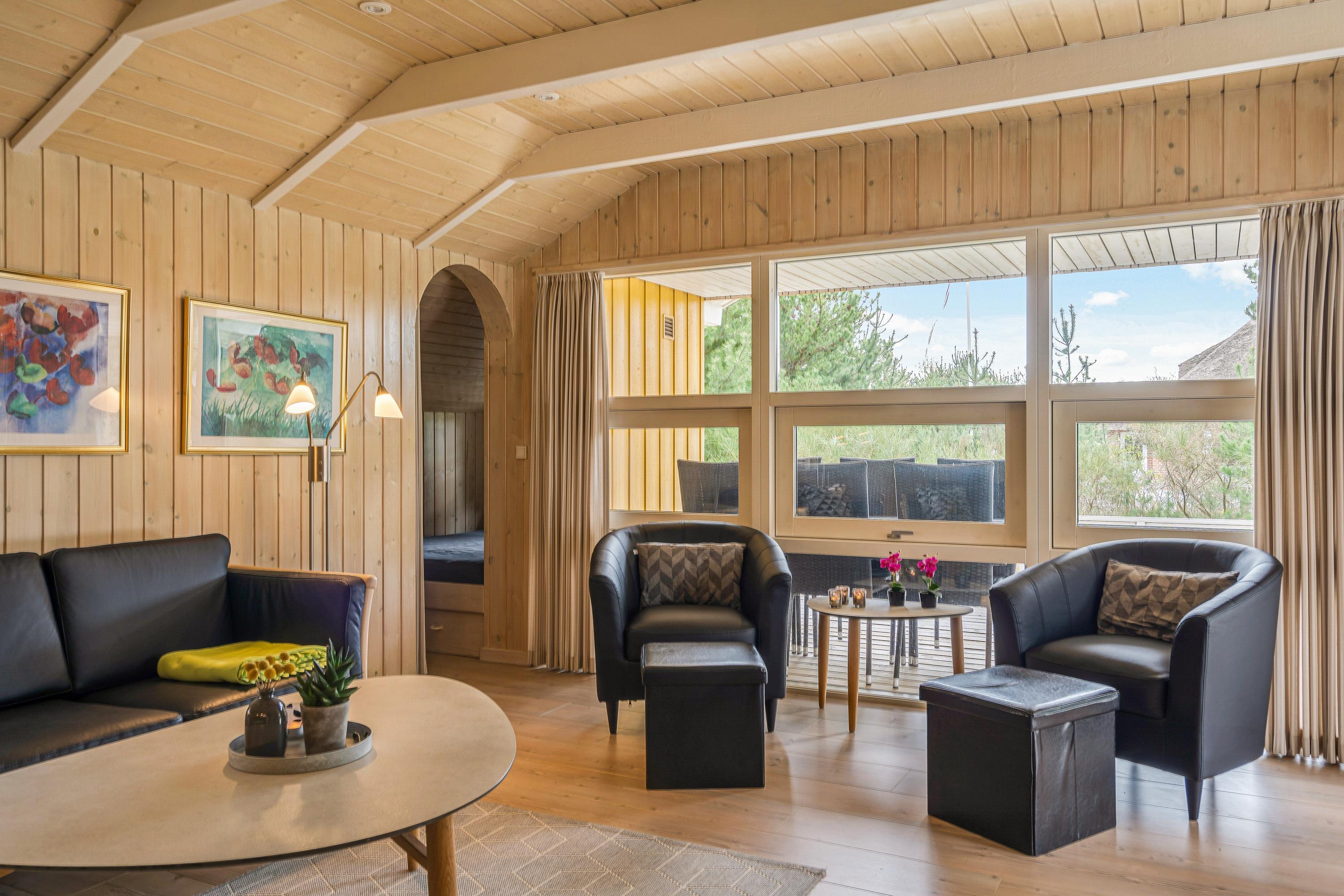 I kan også samles til hyggelige og afslappende stunder med hele familien i sommerhusets alrum. Alrummet forener køkken, stue og spiseplads, så her vil I kunne nyde hinandens selskab, selvom nogle står i køkkenet, og andre slapper af i stuen. Her sørger brændeovnen med sine knitrende flammer for, at feriestemningen er i top.