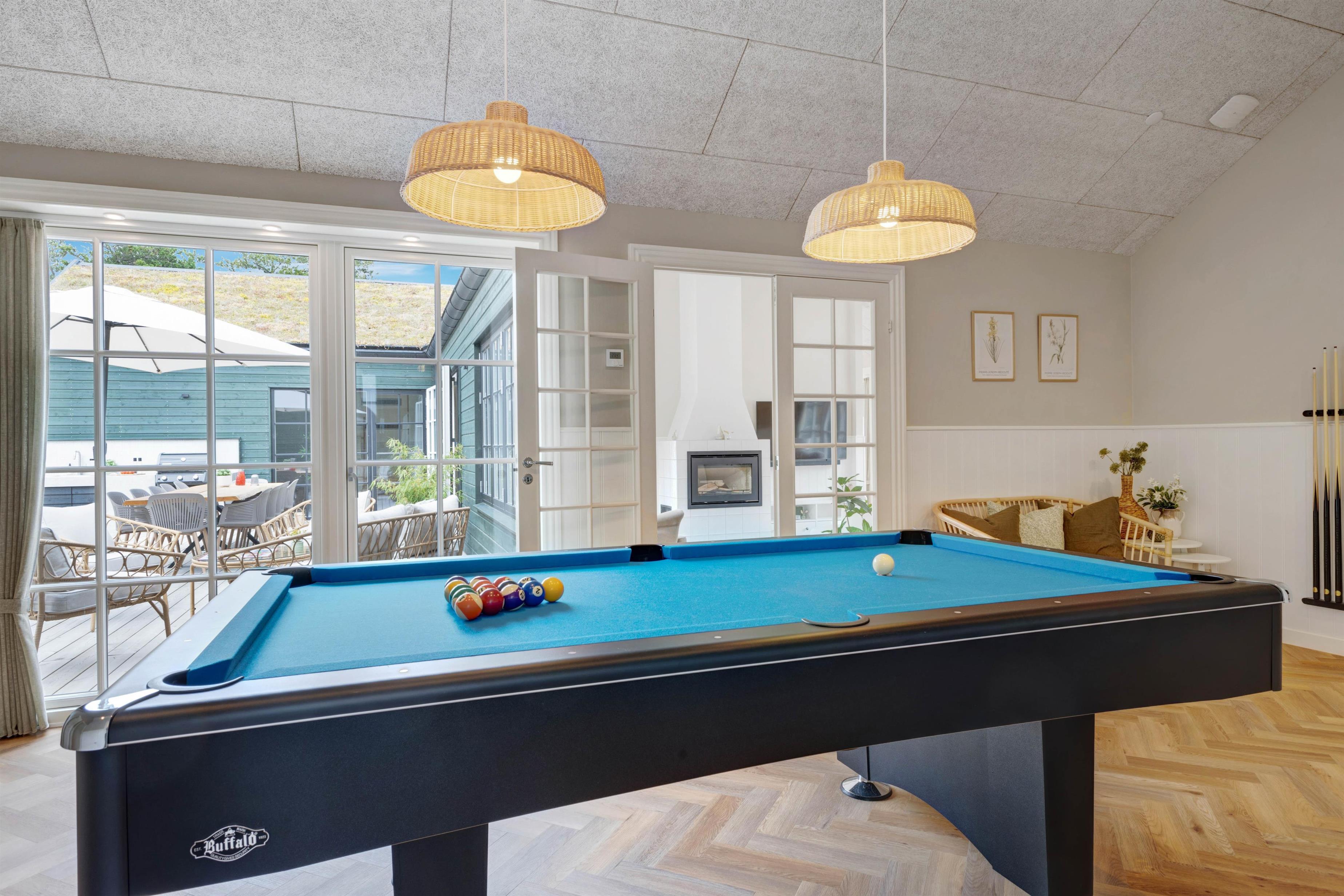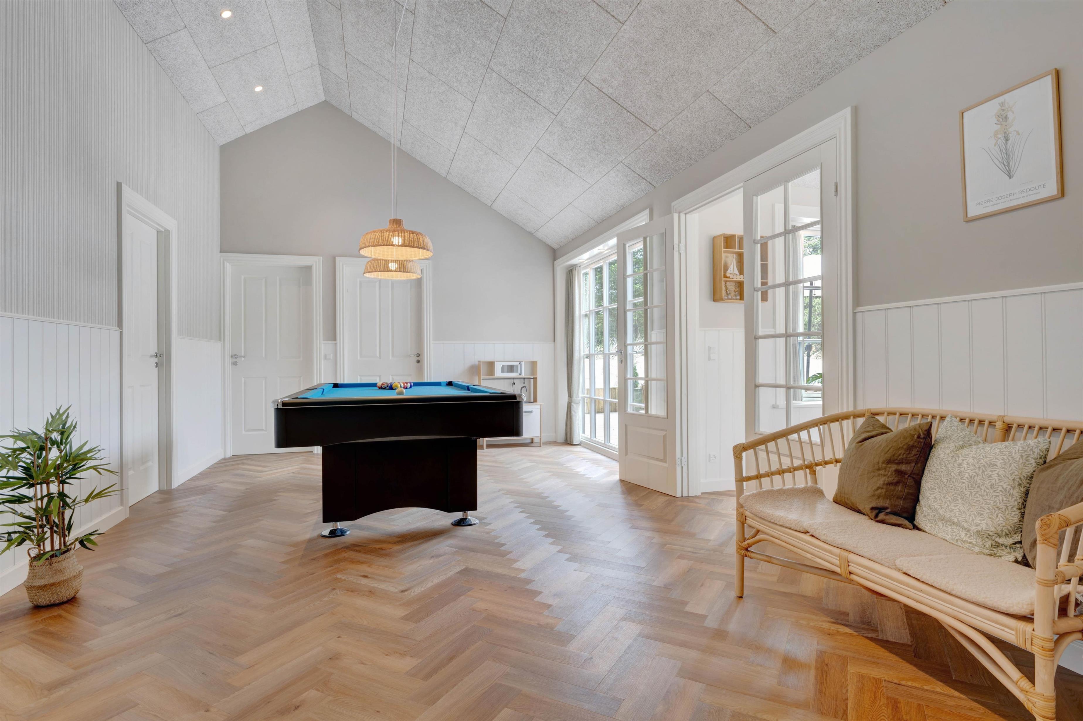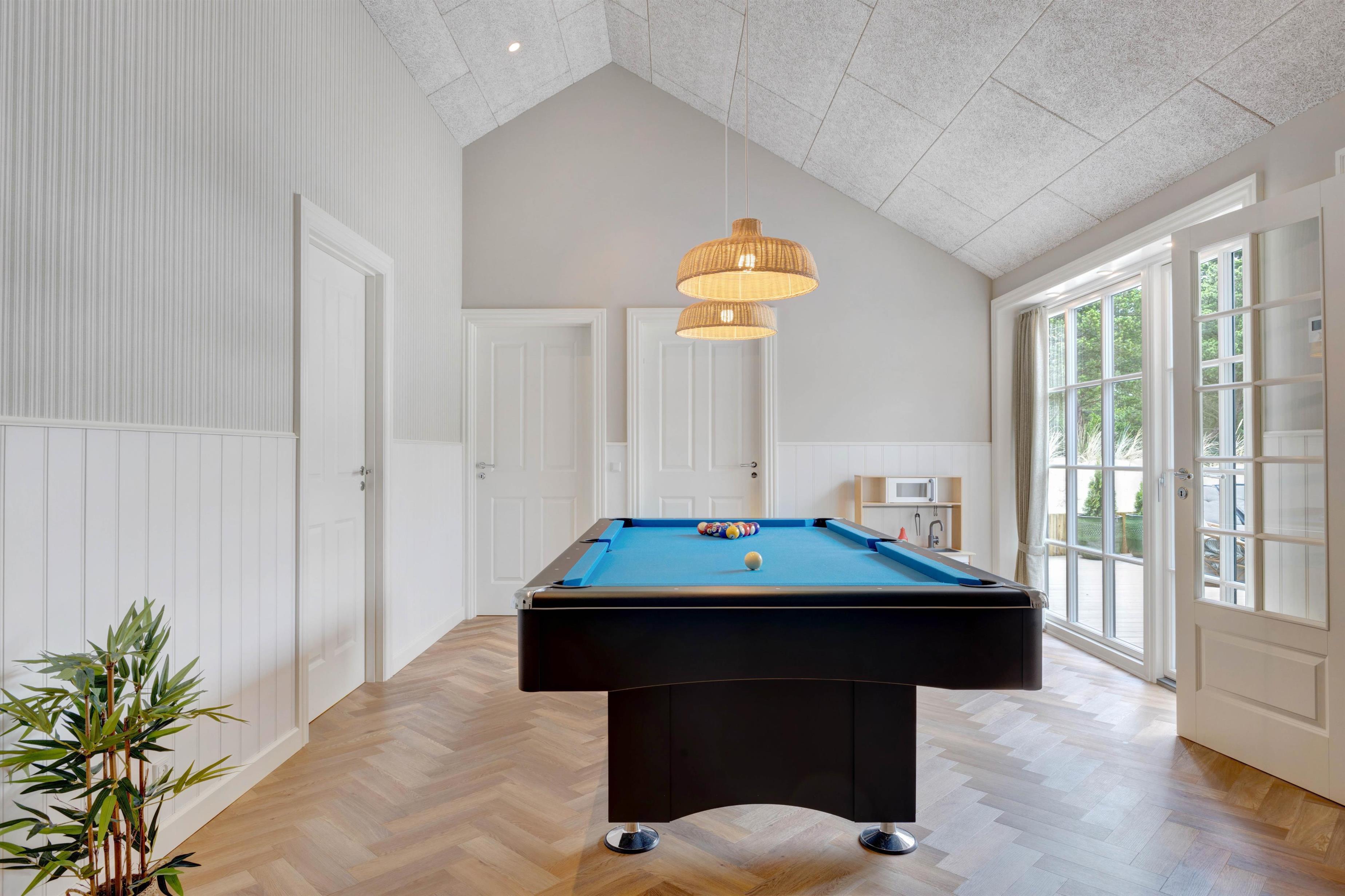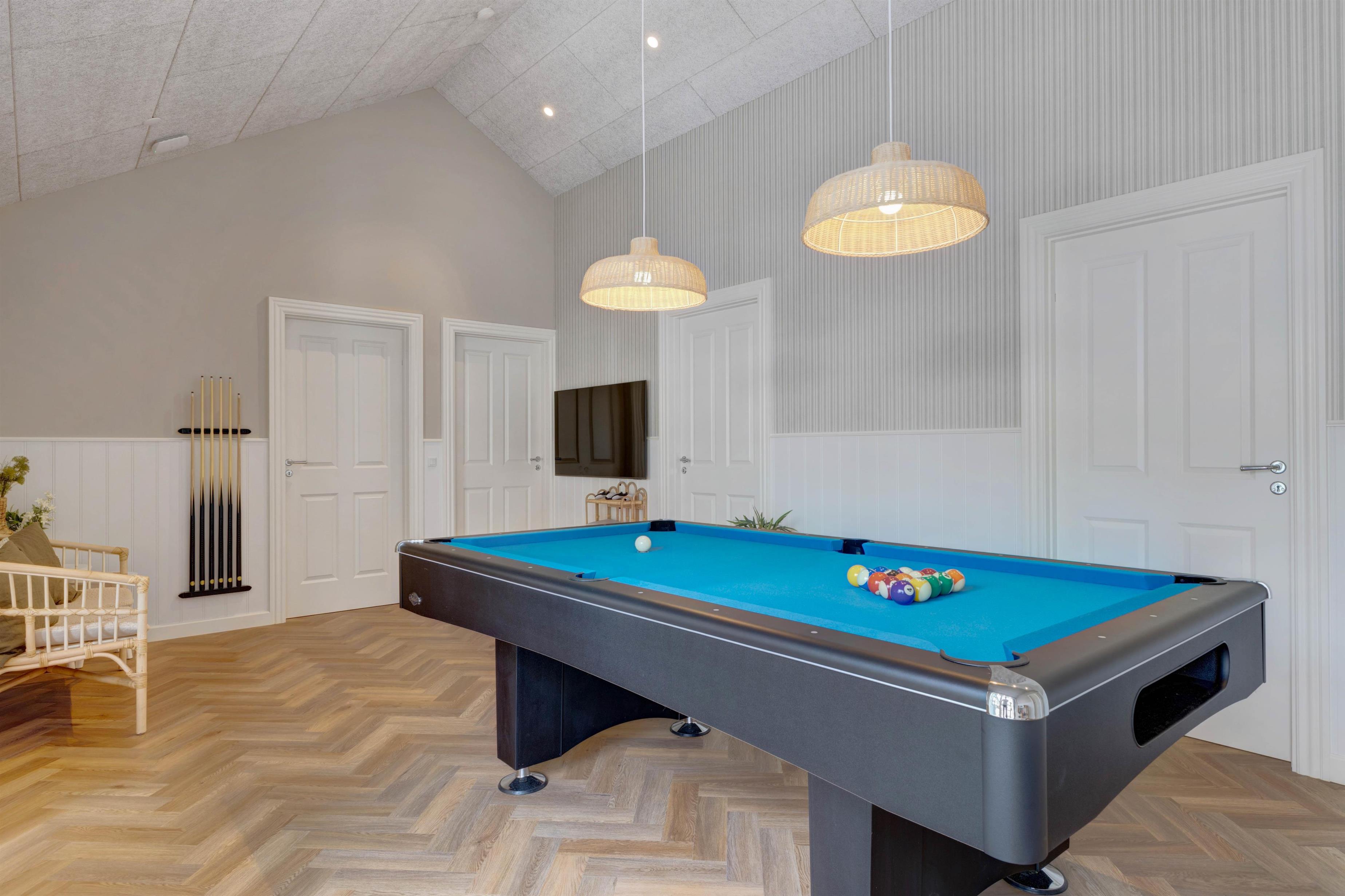 Søren Gades Mark 16A rummer 3 dejlige badeværelser, alle med gulvvarme, så I kan holde fødderne lune også på kolde dage, mens I nyder, at velværefølelsen breder sig i kroppen, og får I lyst til lidt feriekonkurrencer og fysisk aktivitet, står både bordtennisbord og billardbord klar til en lille dyst, eller I kan hoppe i poolen til optimal wellnessfølelse.